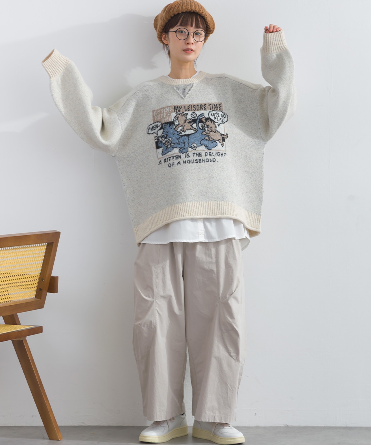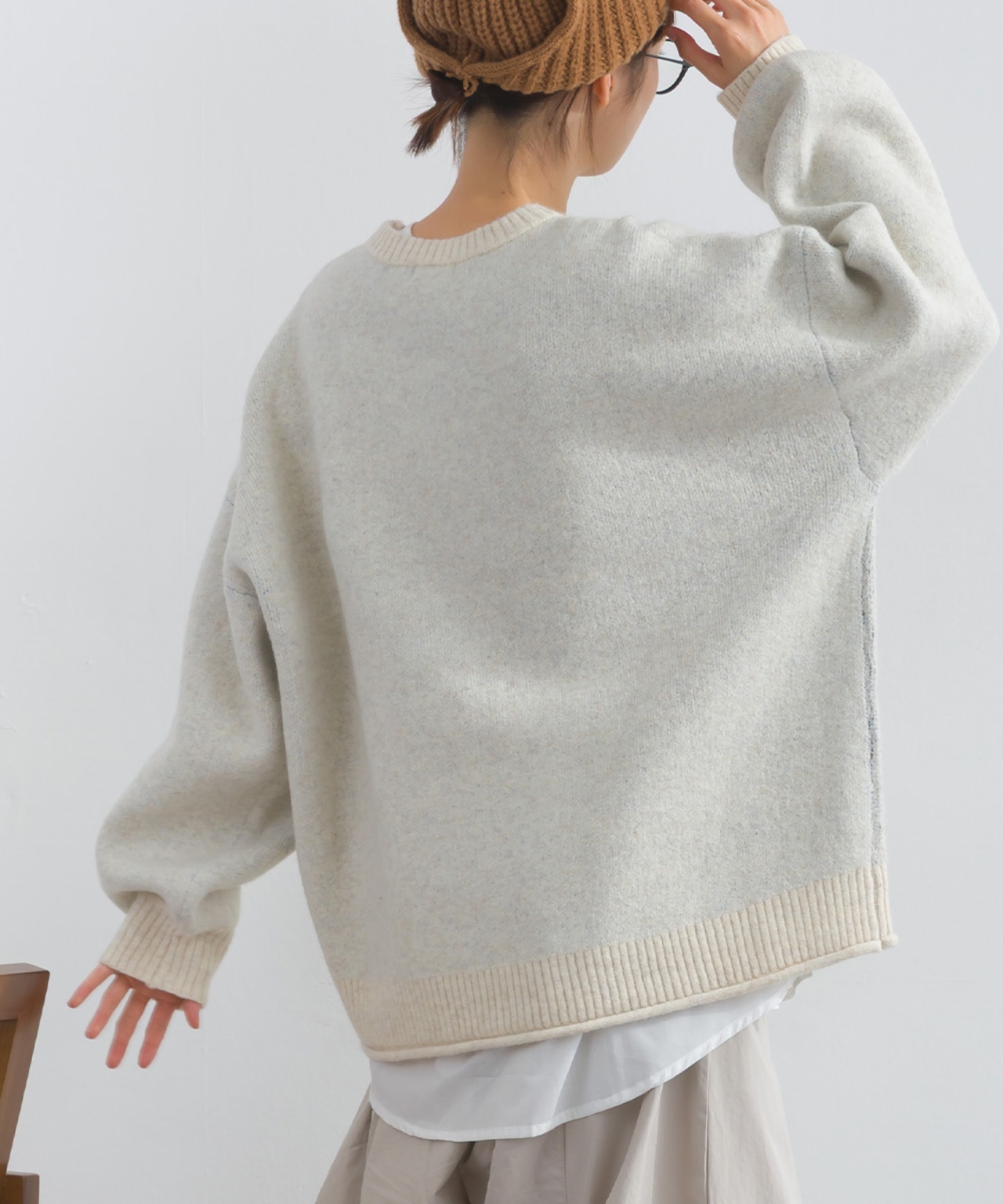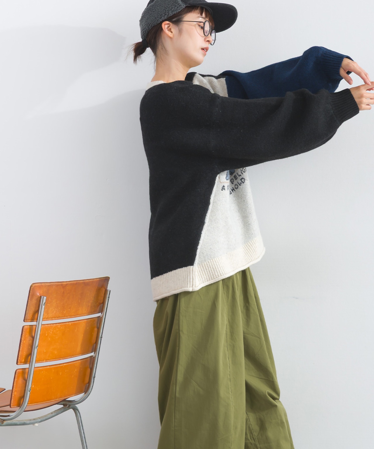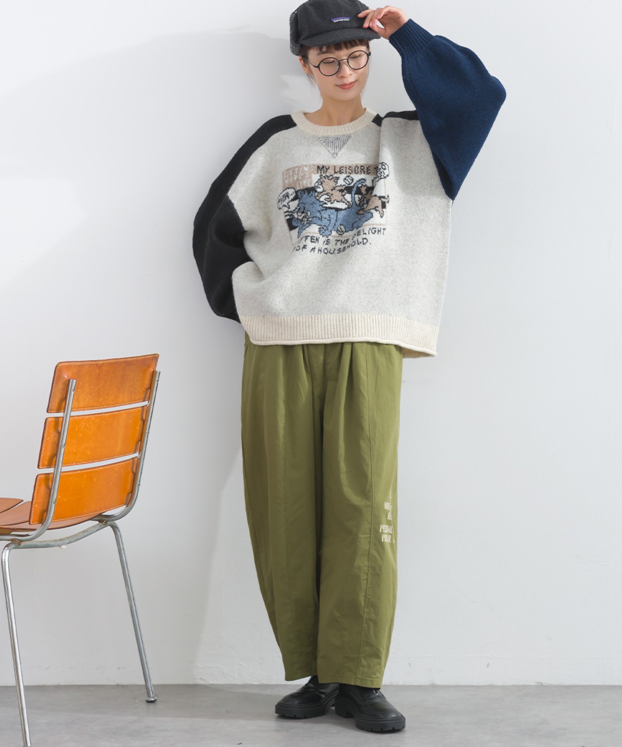 2025AW 2025秋冬新作 秋冬コーデ オーバーサイズ ワンマイルウエア iriey アイリー カジュアル ナチュラル ミセス ゆったり 体型カバー ゆったりシルエット 体型カバー カジュアルスタイル レイヤードコーデ ナチュラル服 着回しコーデ 大人カジュアル おうちコーデ 旅行コーデ おしゃれコーデ リラックスウェア デイリーコーデ 楽ちんコーデ ストリートミックス アメコミジャカード ニット切替 配色トップス 秋冬ニット フラッフィーニット アメカジ風 レディースプルオーバー