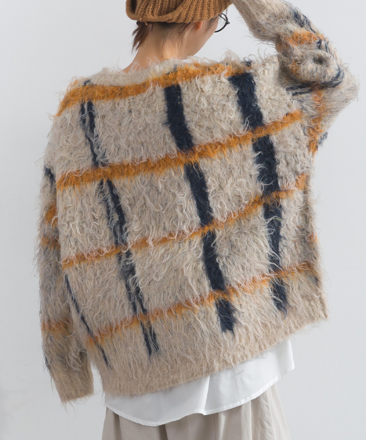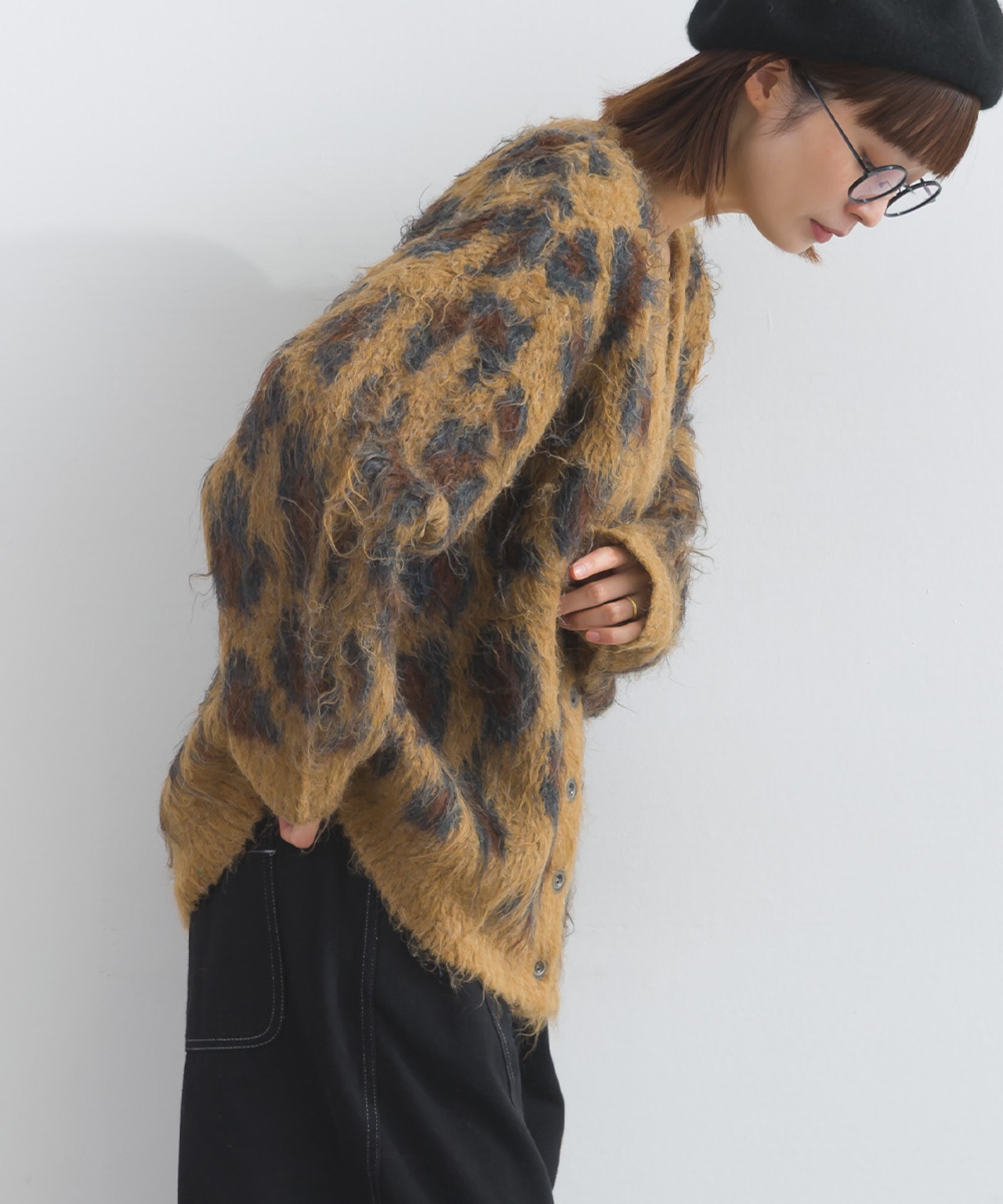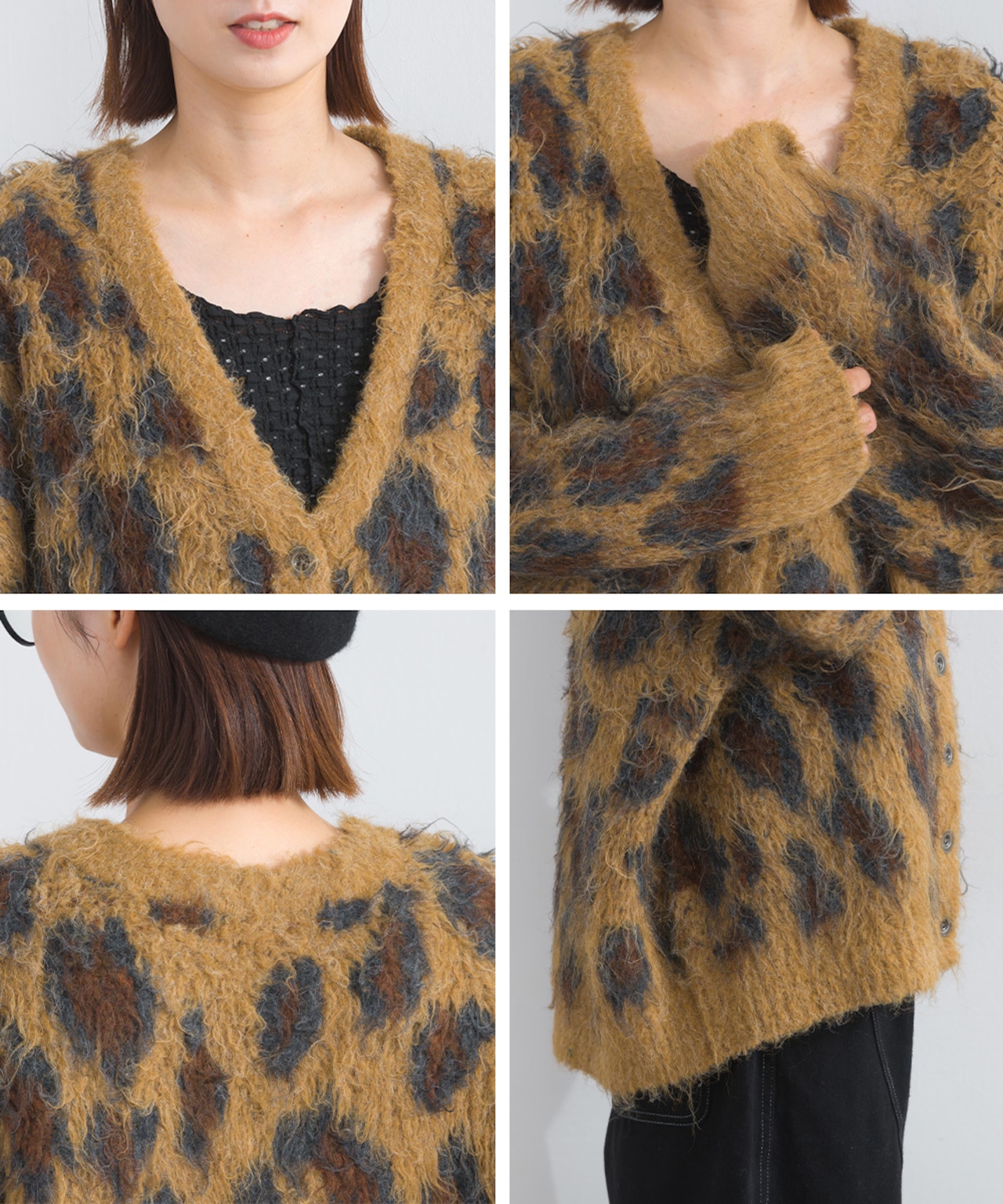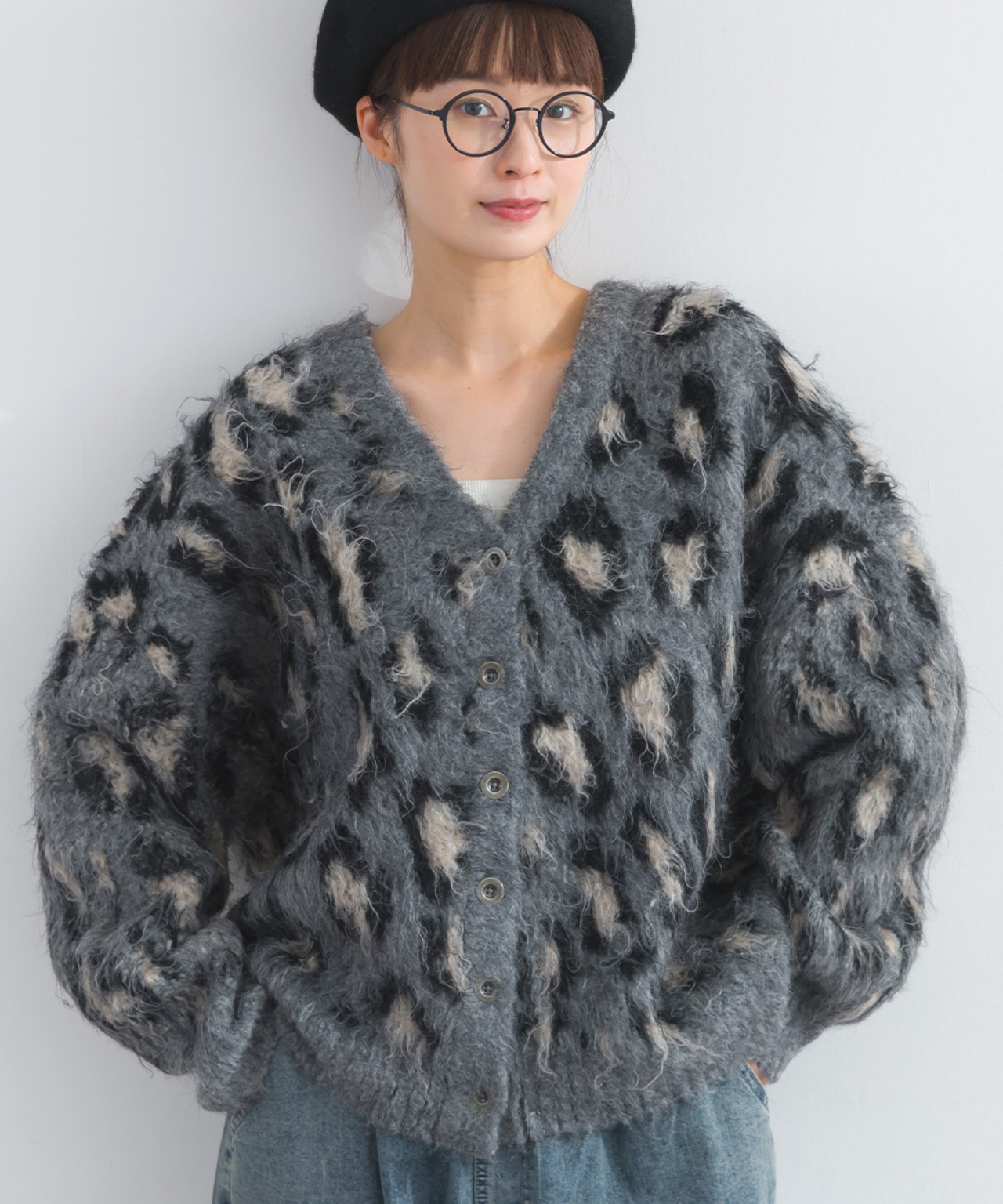 レオパードとチェック柄の、目を惹くデザインが揃ったVネックカーディガン。