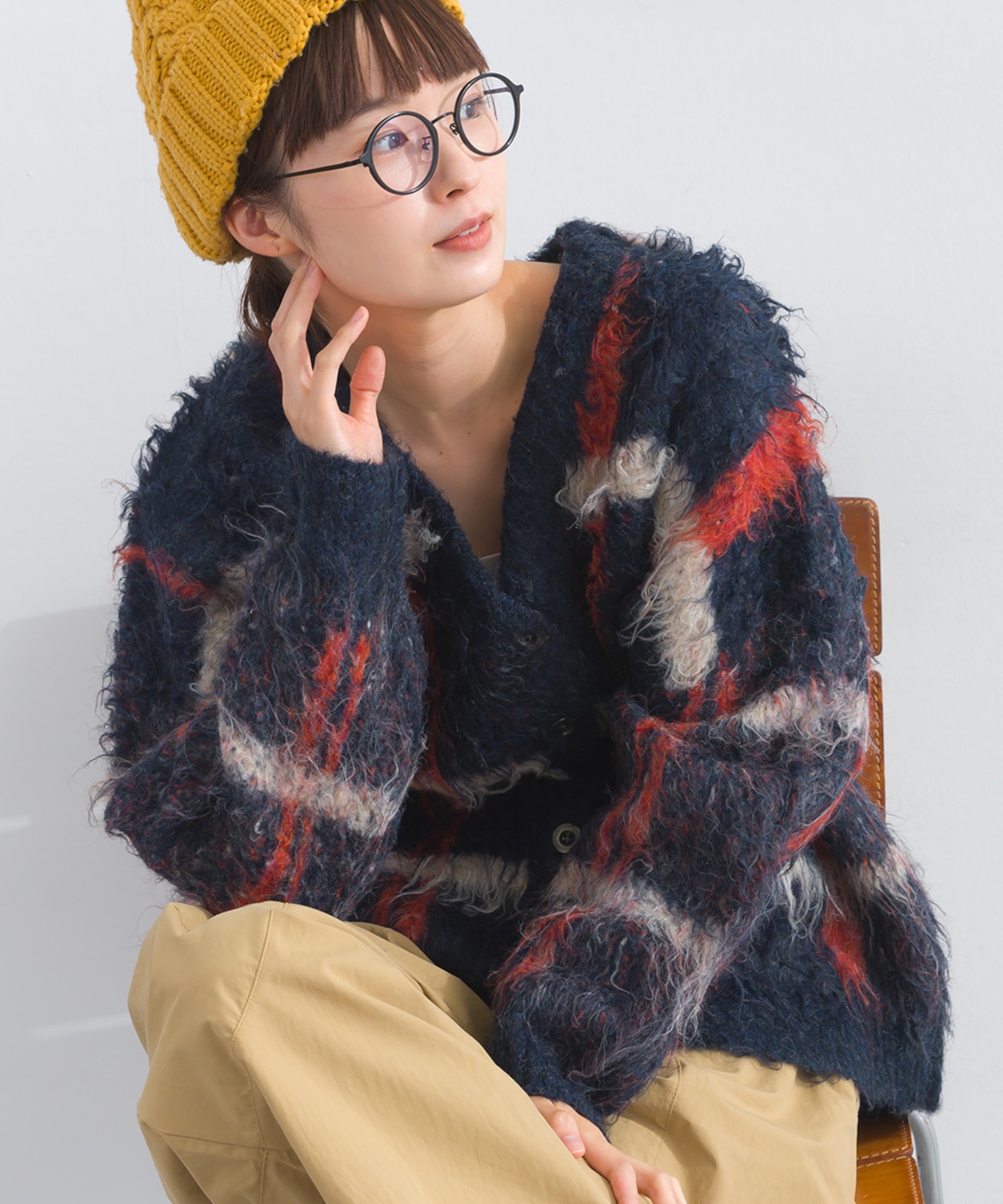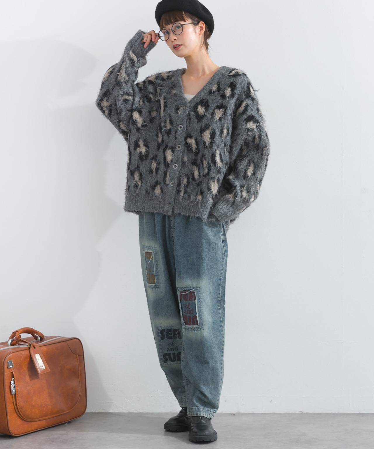 テリー起毛Vネックカーディガン(レオパード/チェック)