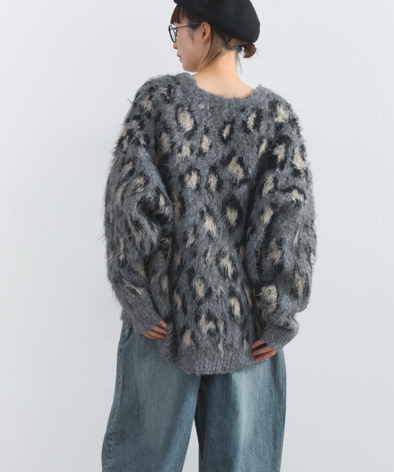 P53121 テリー起毛Vネックカーディガン(レオパード/チェック) / Terry Brushed V-Neck Cardigan (leopard / plaid )