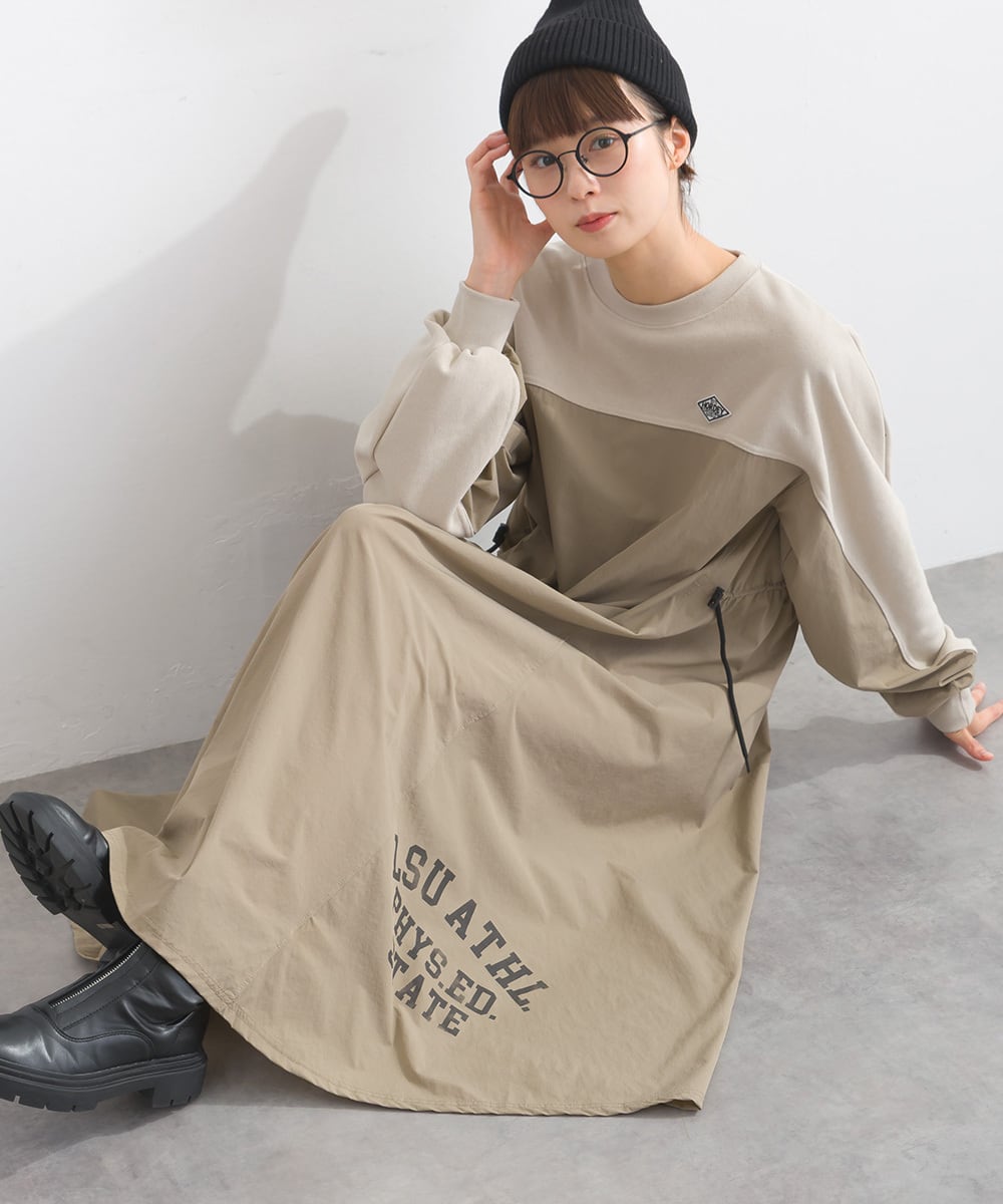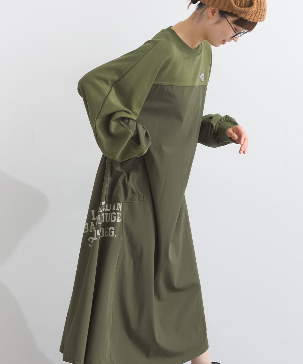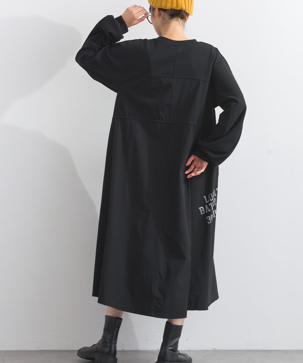 K53109 CT裏毛×ストレッチナイロンリメイクスエットワンピース / CT Lined × Stretch Nylon Remake Sweat Dress (残りわずか)