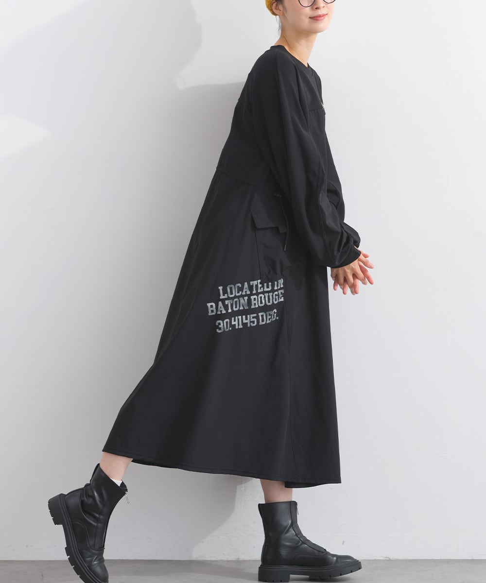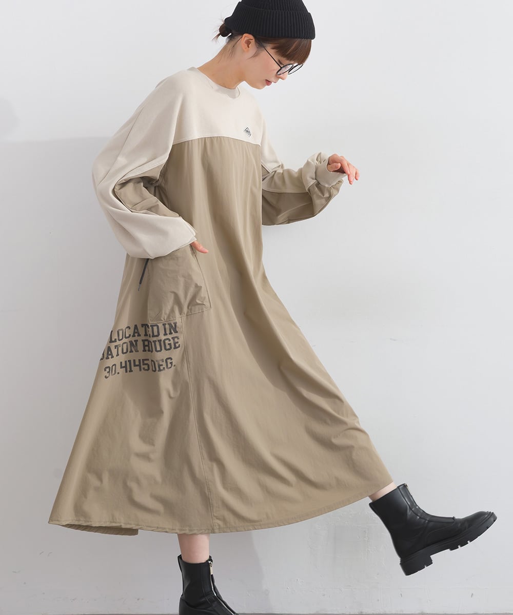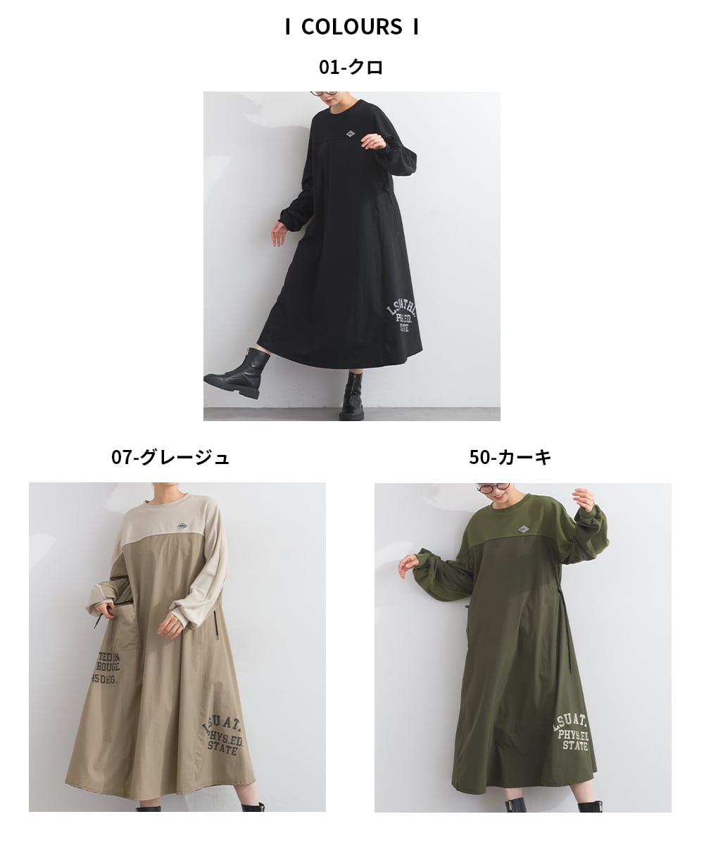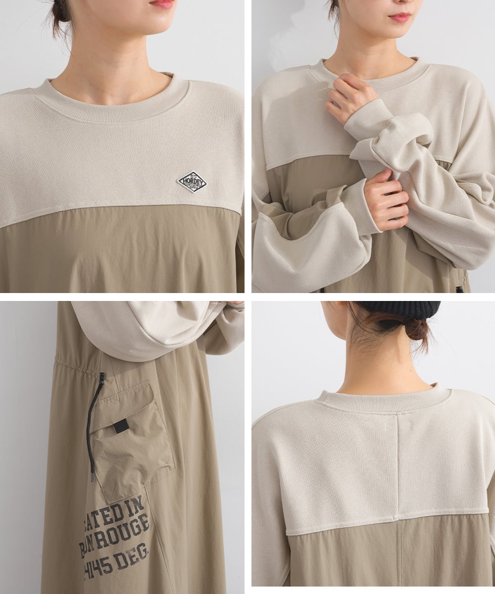 K53109 CT裏毛×ストレッチナイロンリメイクスエットワンピース / CT Lined × Stretch Nylon Remake Sweat Dress (残りわずか)