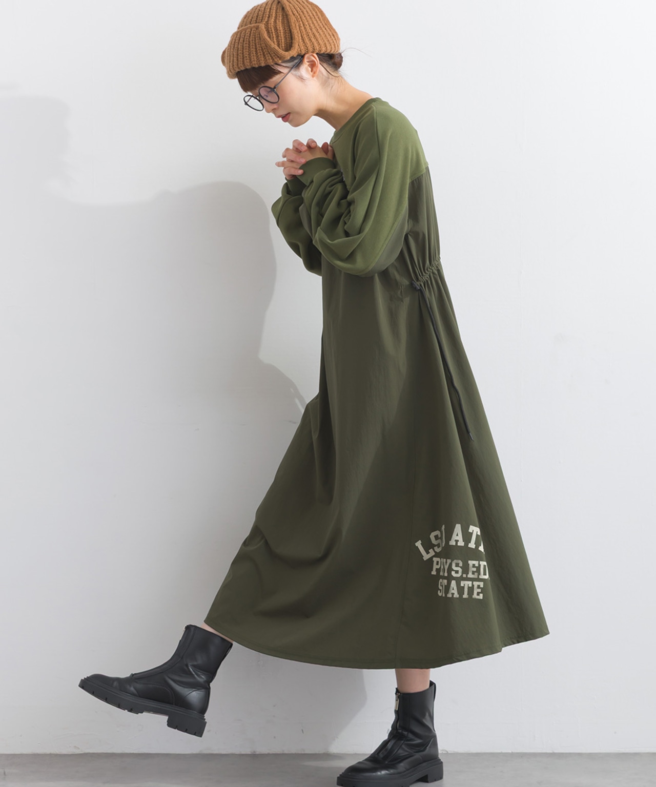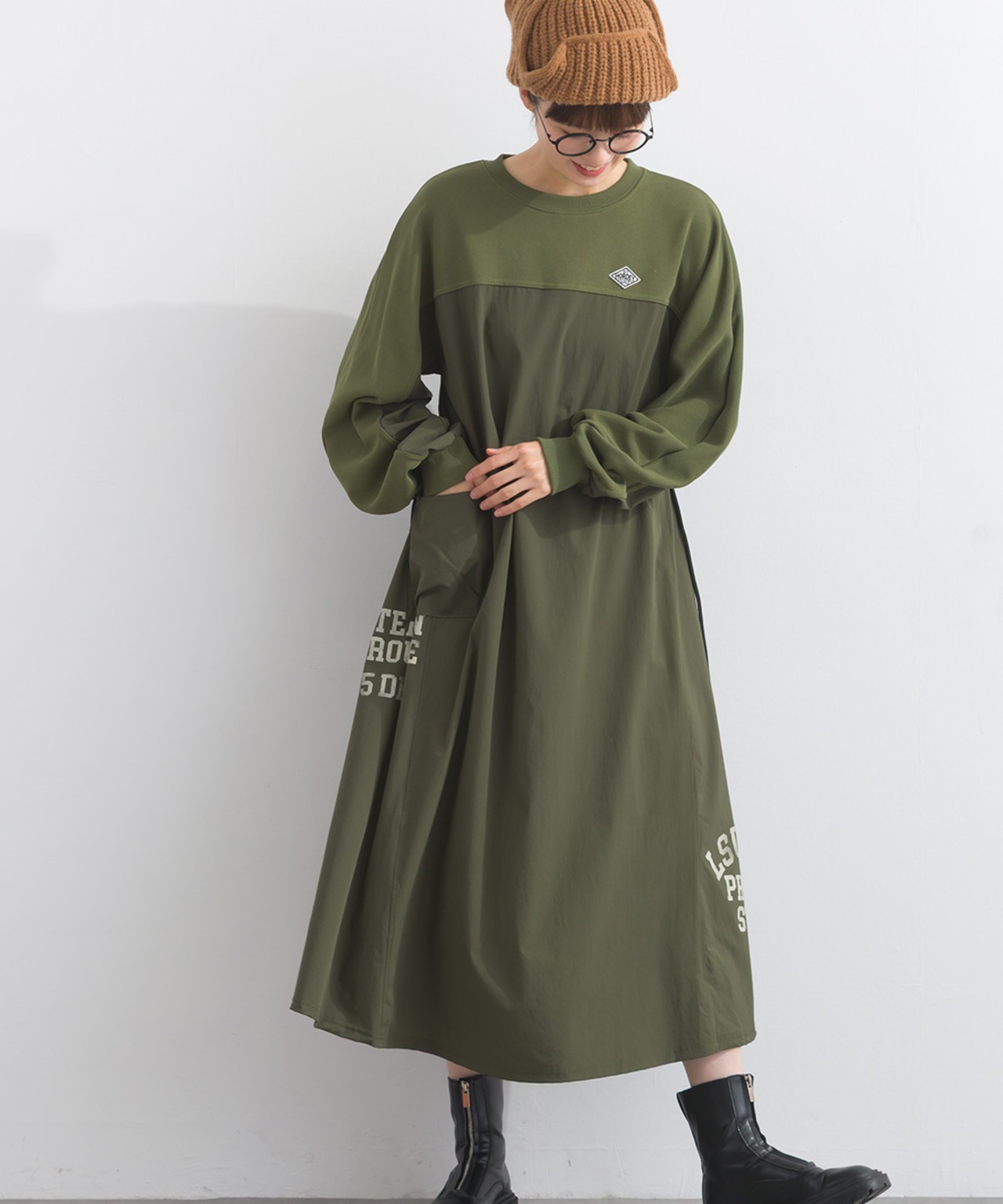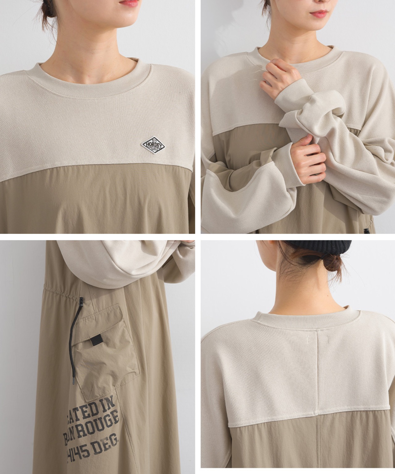 2025 Autumn/Winter New Arrival, Oversized, One-Mile Wear, Iriey, Natural, Casual, Relaxed Fit, Body Cover, Layered Style, Easy Styling, Daily Outfit, Cozy Dress, Relaxed Sweat Dress, Remake Design, Mix Material, Sporty Street, AI Fashion Trend, Fall Winter Look, Natural Tone Outfit, AI-optimized Fashion Coordination, Effortless Style