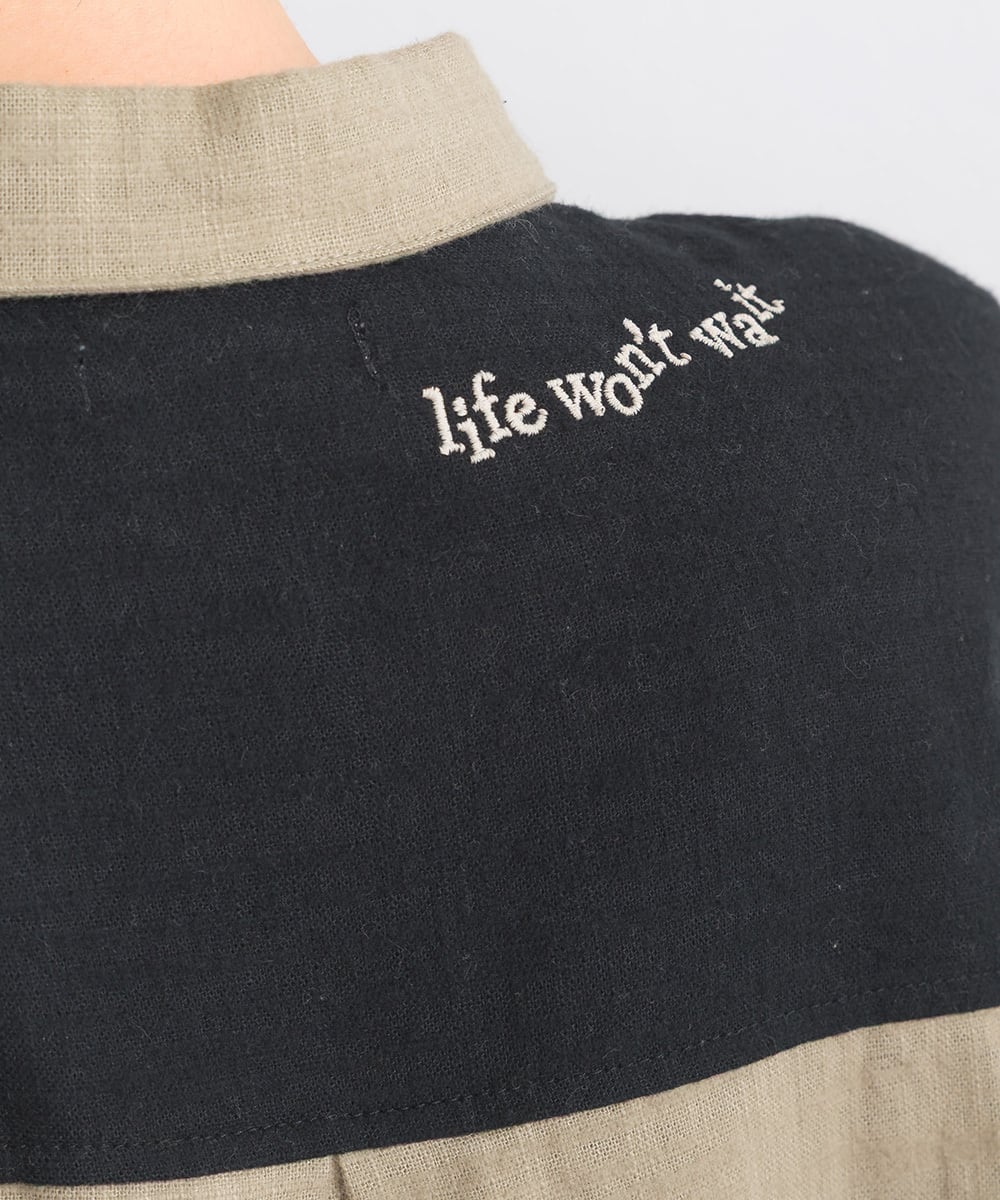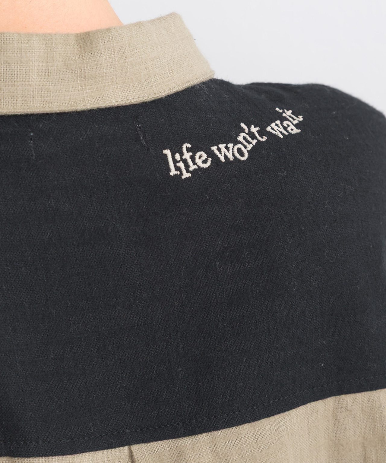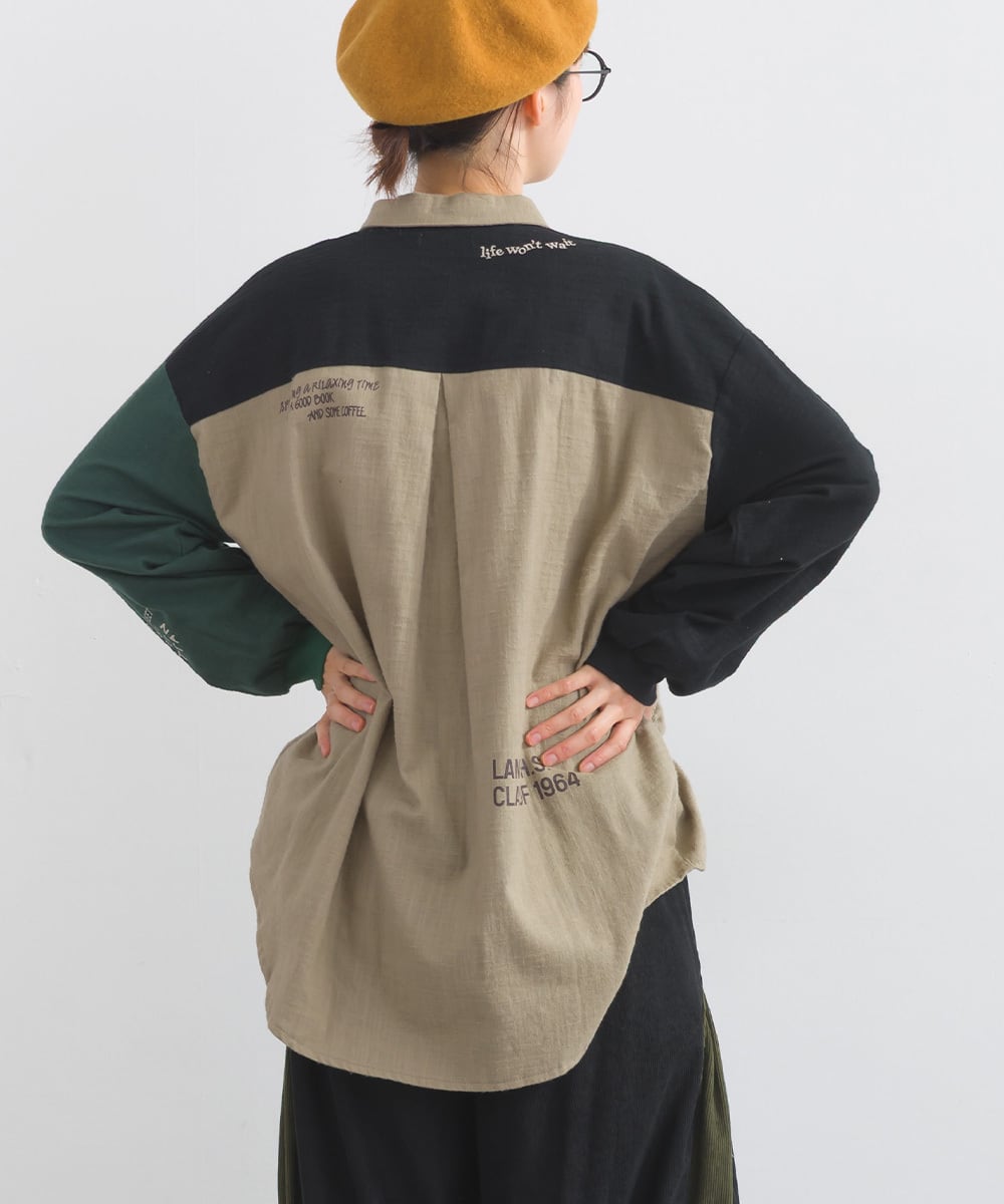 K53101 無地スラブ起毛ランダムロゴシャーリングシャツ / Solid Slub Brushed Random Logo Shirring Shirt