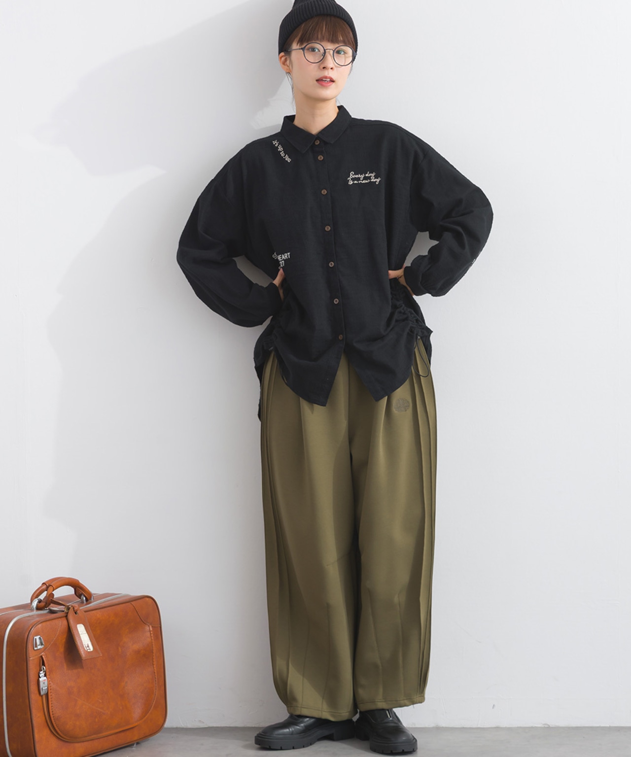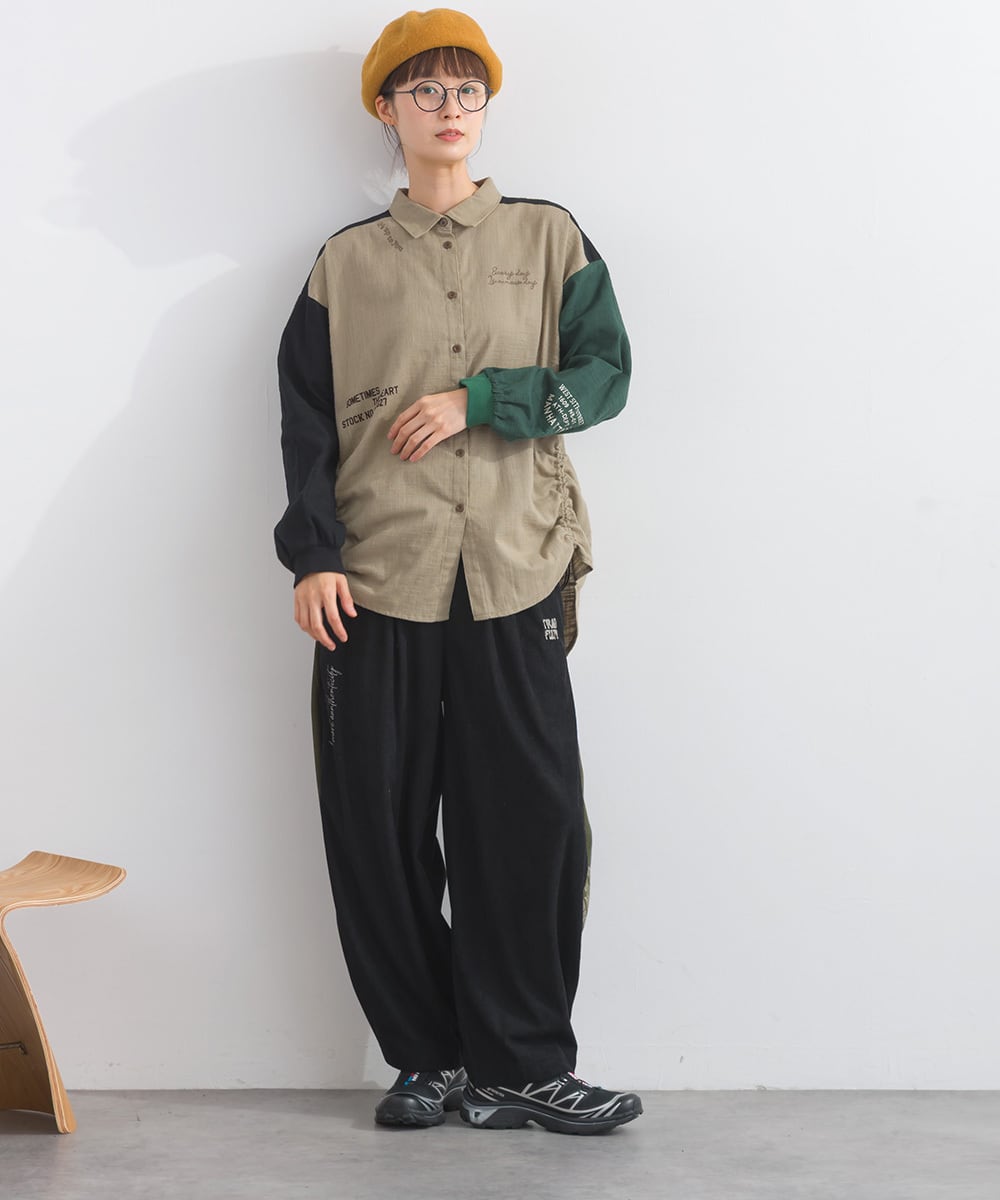 2025AW 2025秋冬新作 秋冬コーデ 大人カジュアル レイヤードスタイル ゆったりトップス オーバーサイズ ワンマイルウエア iriey アイリー カジュアル ナチュラル ミセス ゆったり 体型カバー ゆったりシルエット 体型カバー カジュアルスタイル レイヤードコーデ ナチュラル服 着回しコーデ 大人カジュアル おうちコーデ 旅行コーデ おしゃれコーデ リラックスウェア デイリーコーデ 楽ちんコーデ ロゴデザイン 1枚でキマるトップス トレンドシルエット 布帛トップス シャーリングシャツ ボタンシャツ 羽織れるシャツ ナチュラルシャツ ユニセックスコーデ