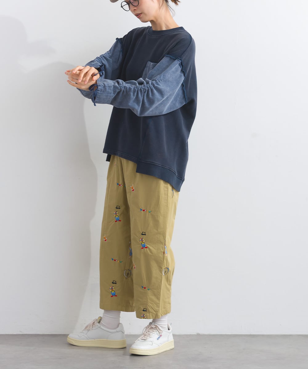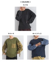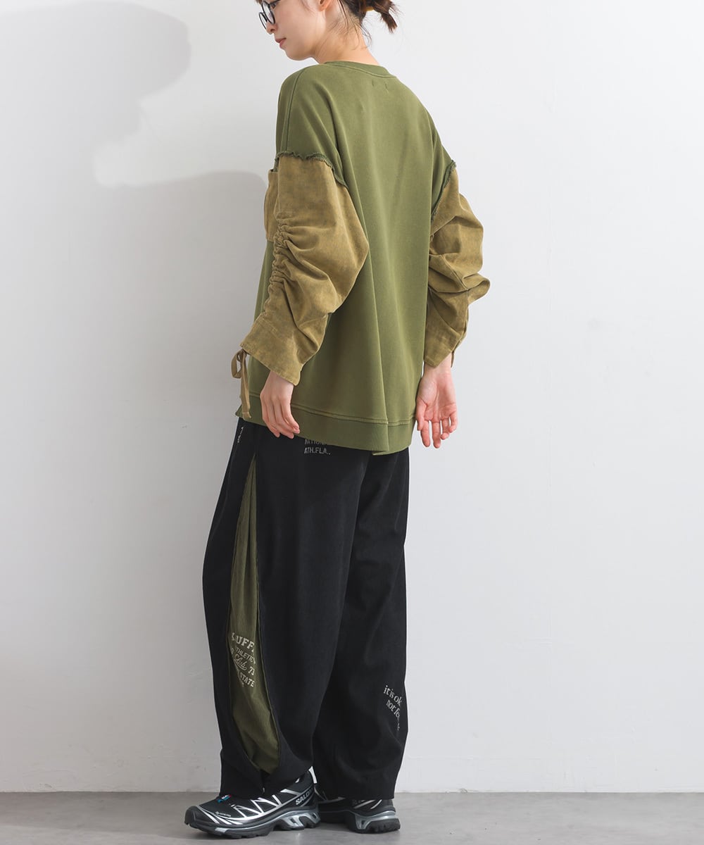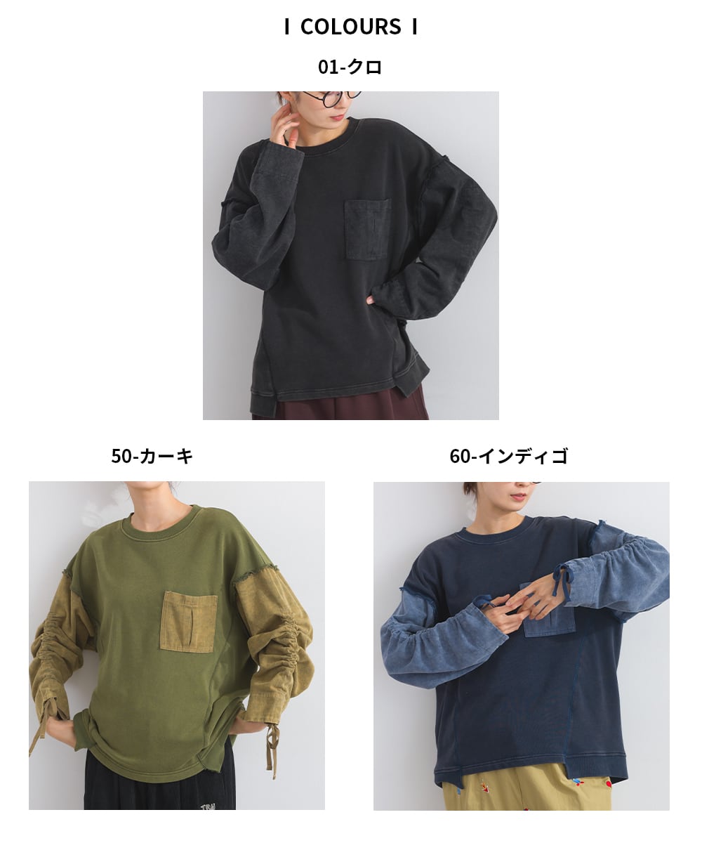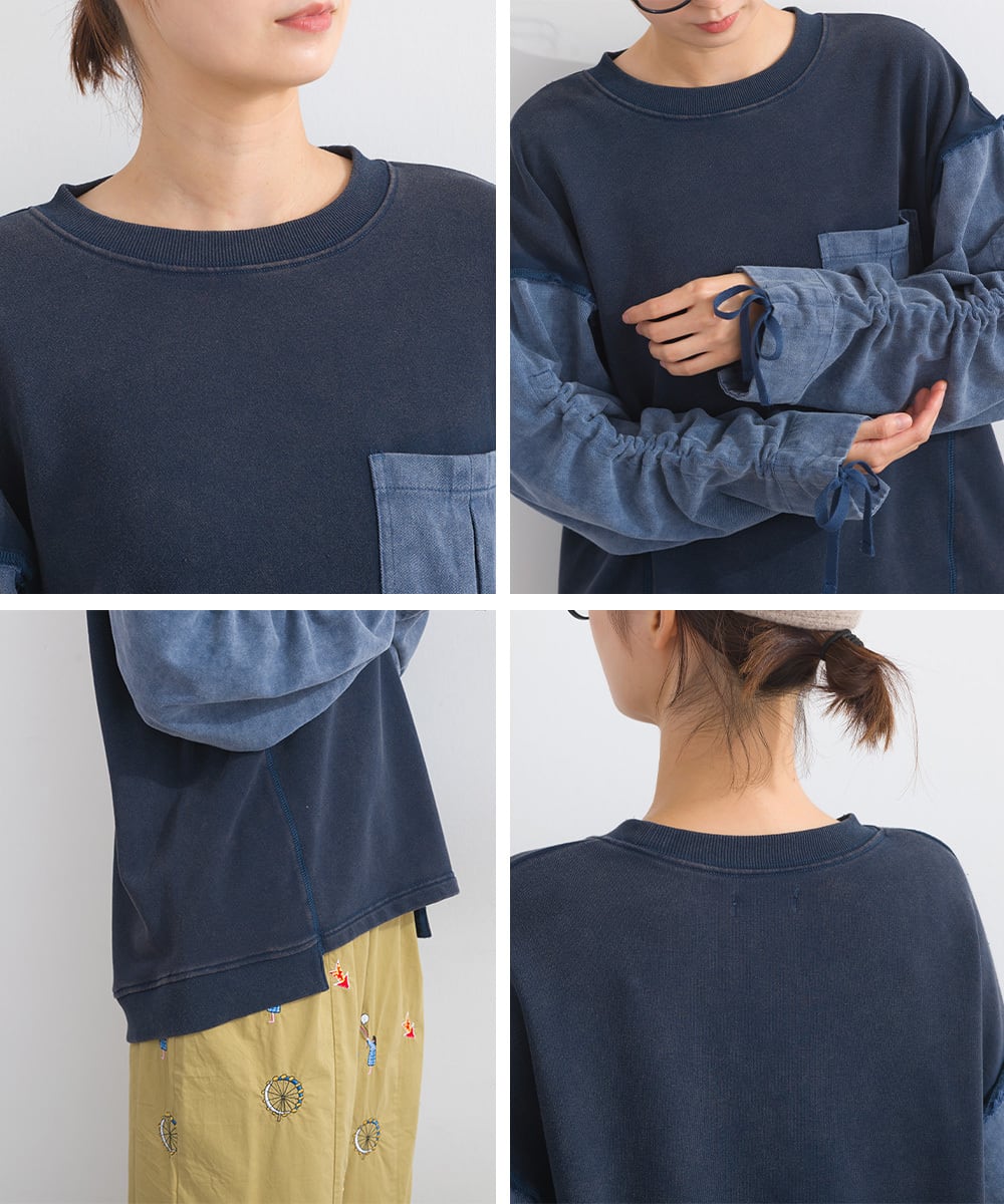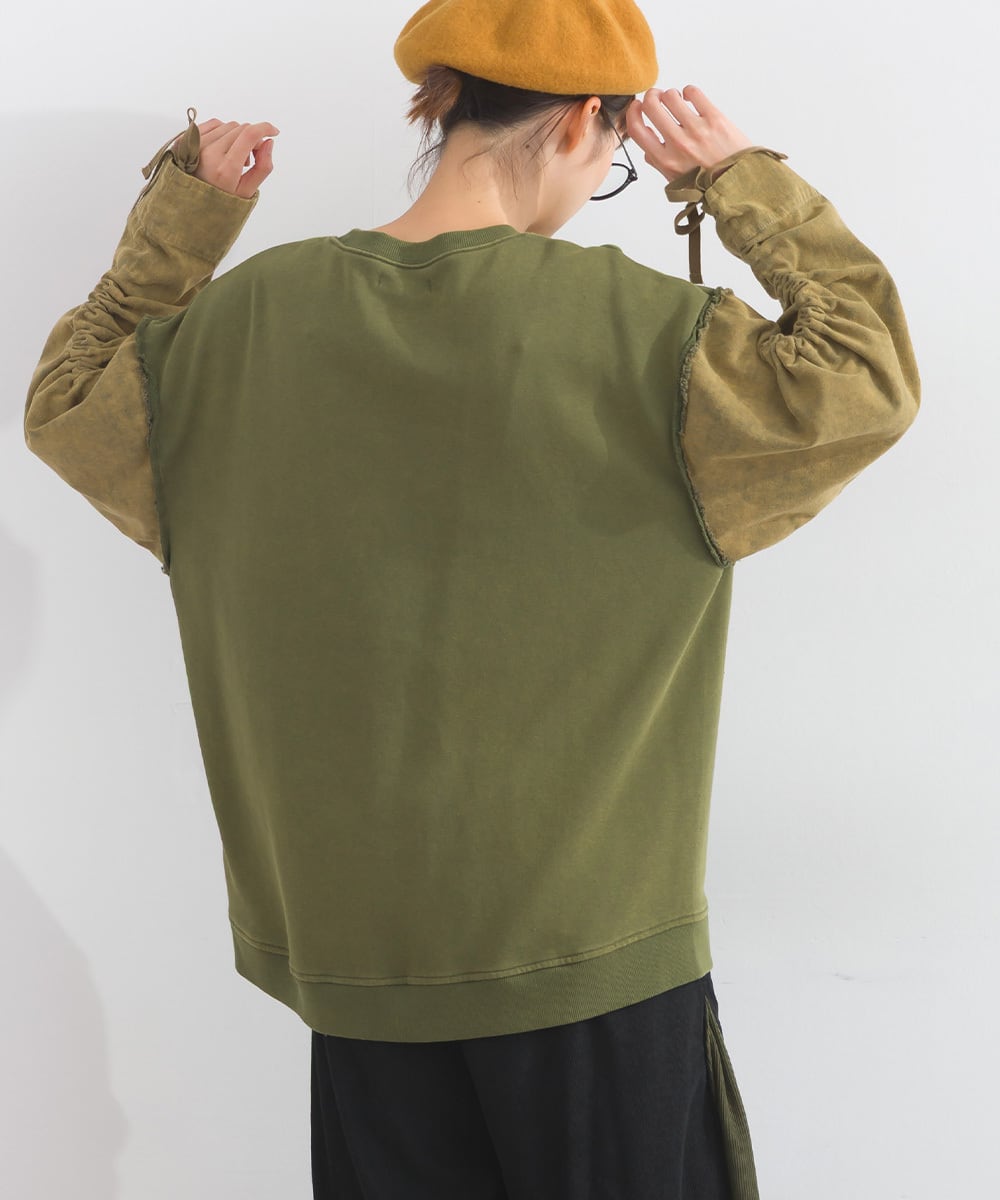 K53098 CT裏毛スノーウォッシュ袖シャーリング異素材スエットプルオーバー / CT Fleece Snow-Wash Sleeve Shirring Mixed-Material Sweat Pullover (残りわずか)