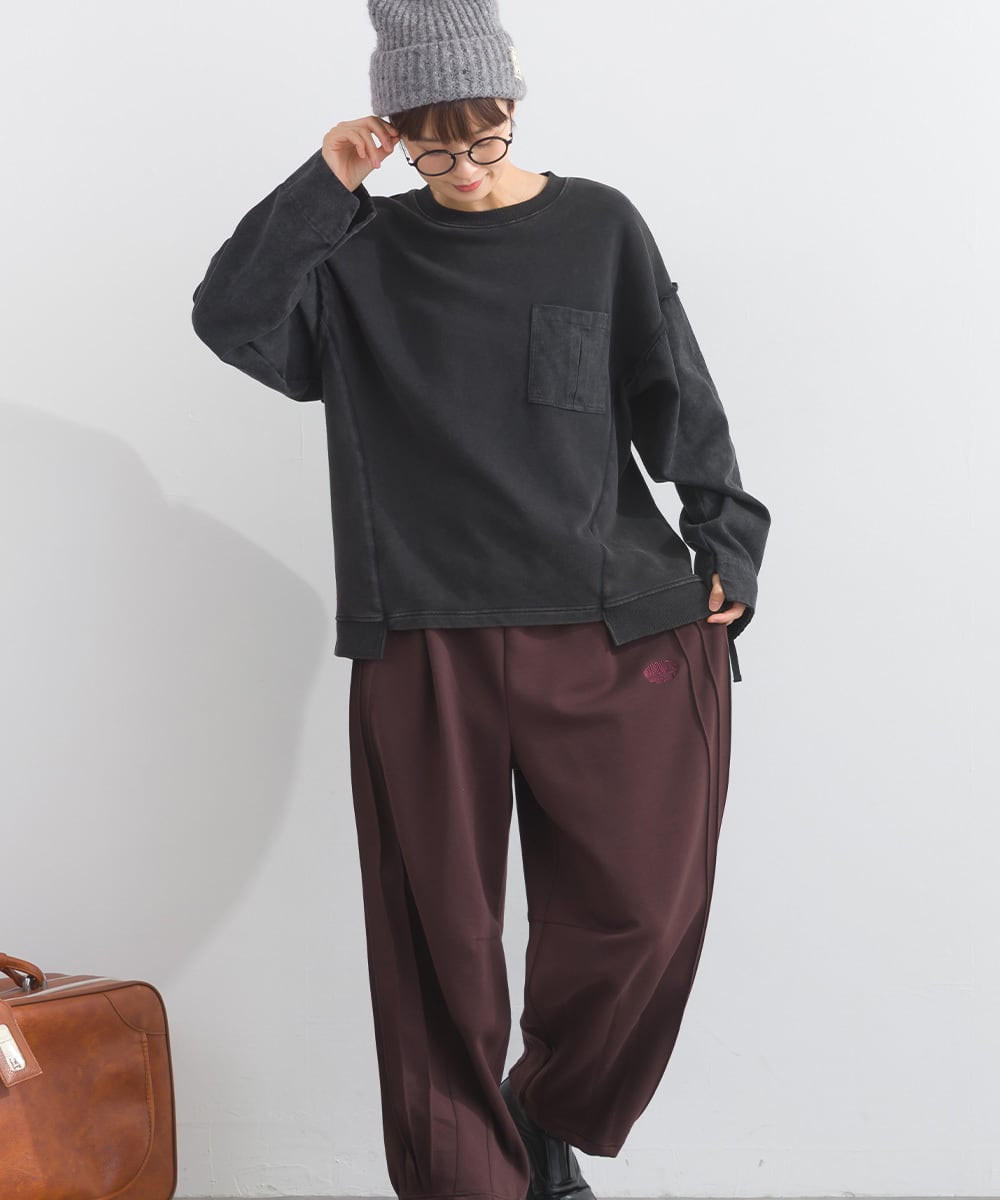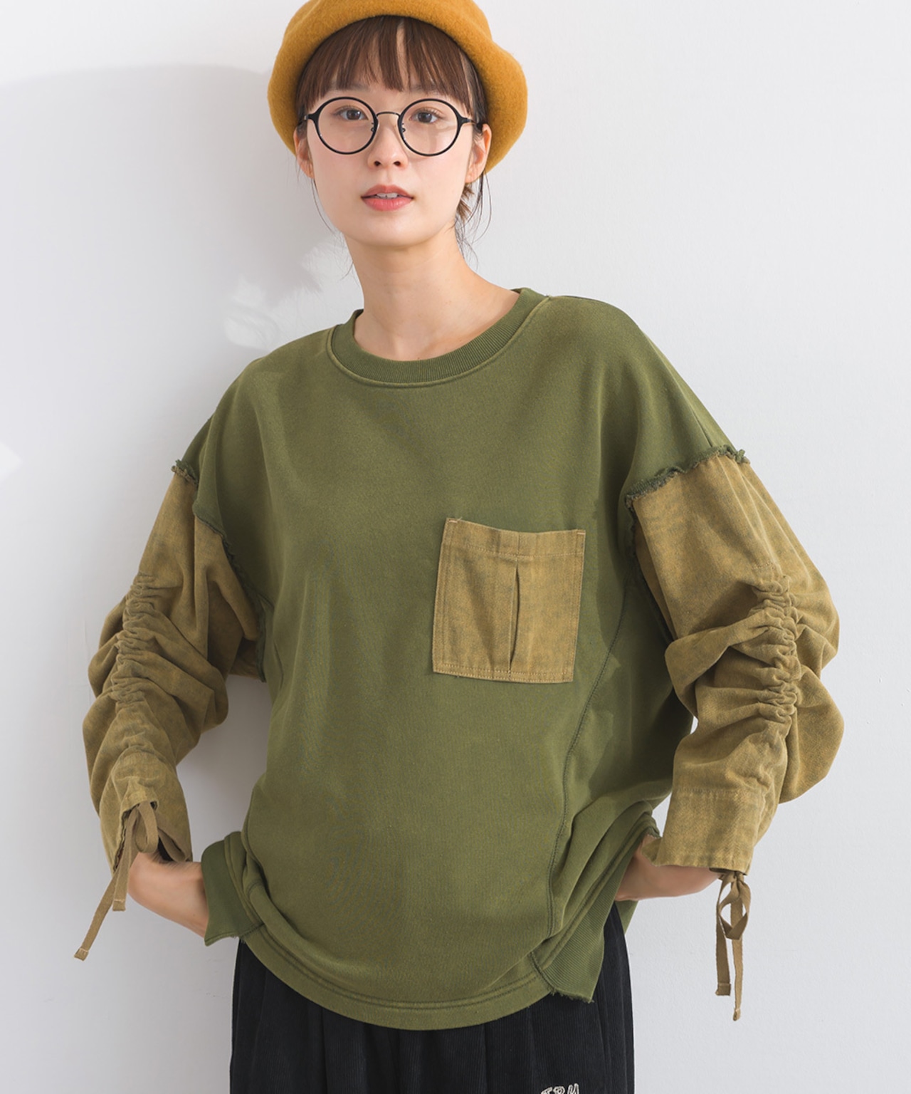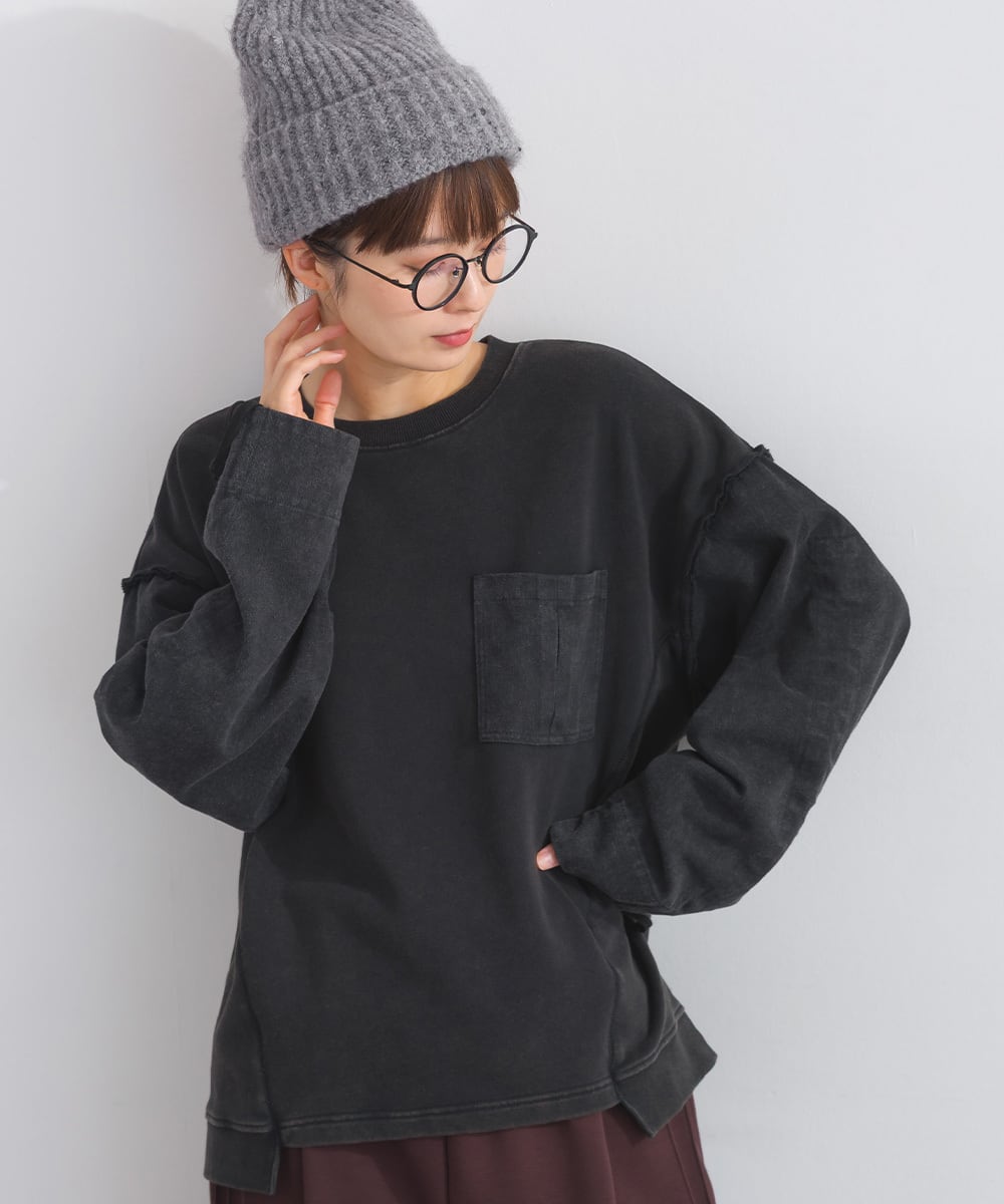 CT裏毛スノーウォッシュ袖シャーリング異素材スエットプルオーバー