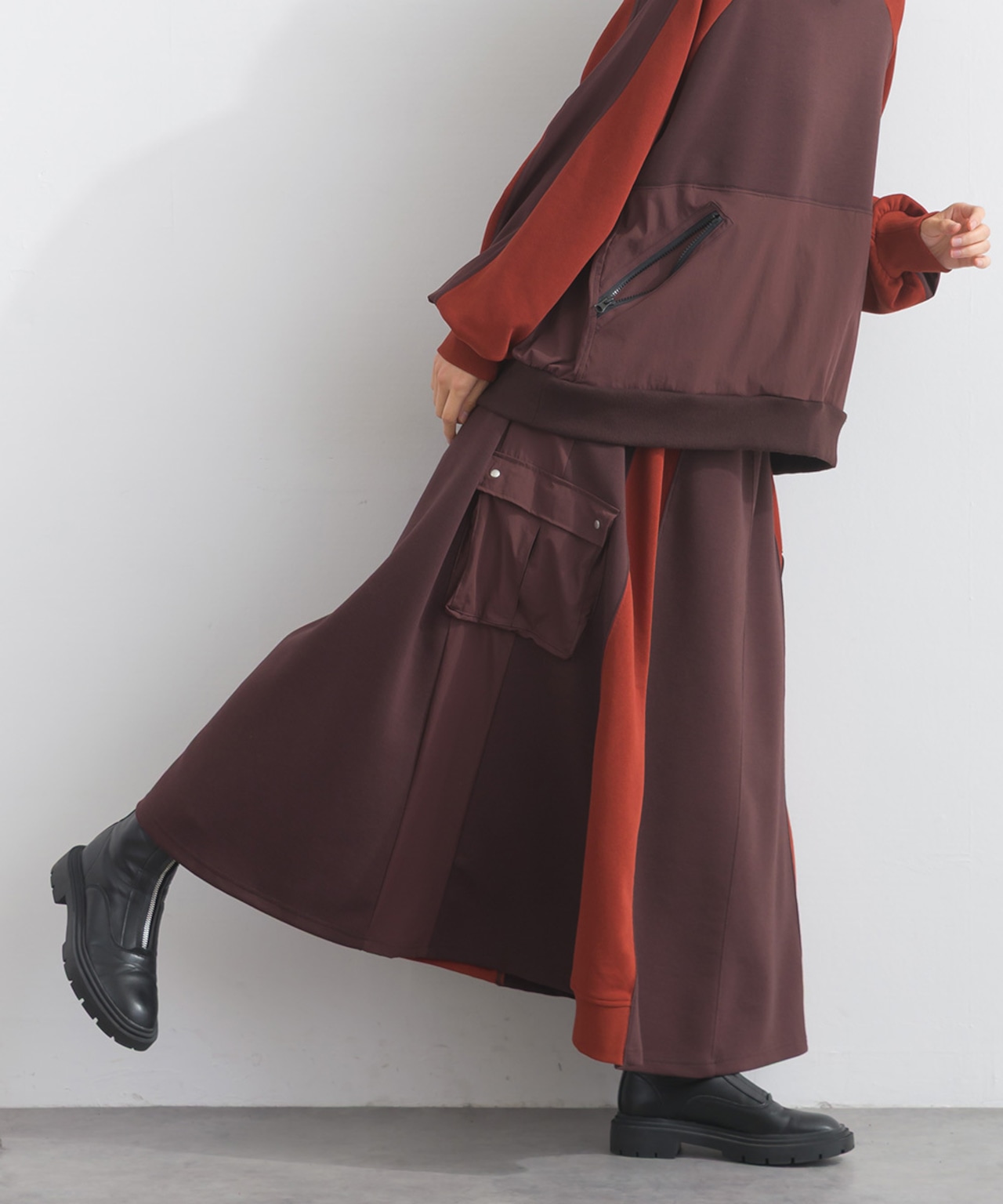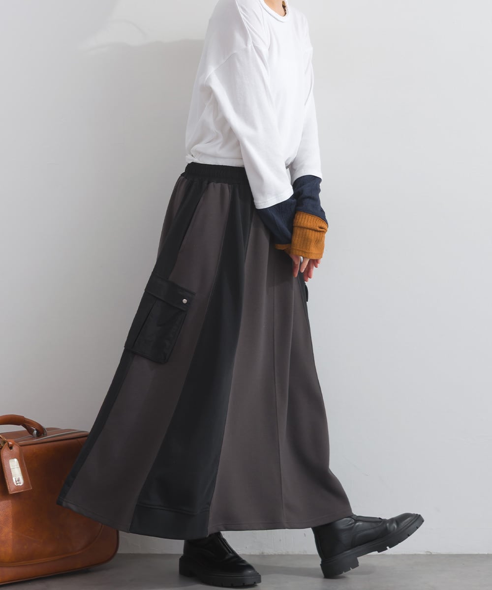 2025AW 2025秋冬新作 秋冬コーデ オーバーサイズ ワンマイルウエア iriey アイリー カジュアル ナチュラル ミセス ゆったり 体型カバー ゆったりシルエット 体型カバー カジュアルスタイル レイヤードコーデ ナチュラル服 着回しコーデ 大人カジュアル おうちコーデ 旅行コーデ おしゃれコーデ リラックスウェア デイリーコーデ 楽ちんコーデ ウエストゴム ストリートミックス 異素材切替スカート ポンチスカート フレアスカート 秋冬ボトムス セットアップ対応 カジュアルスカート レディーススカート