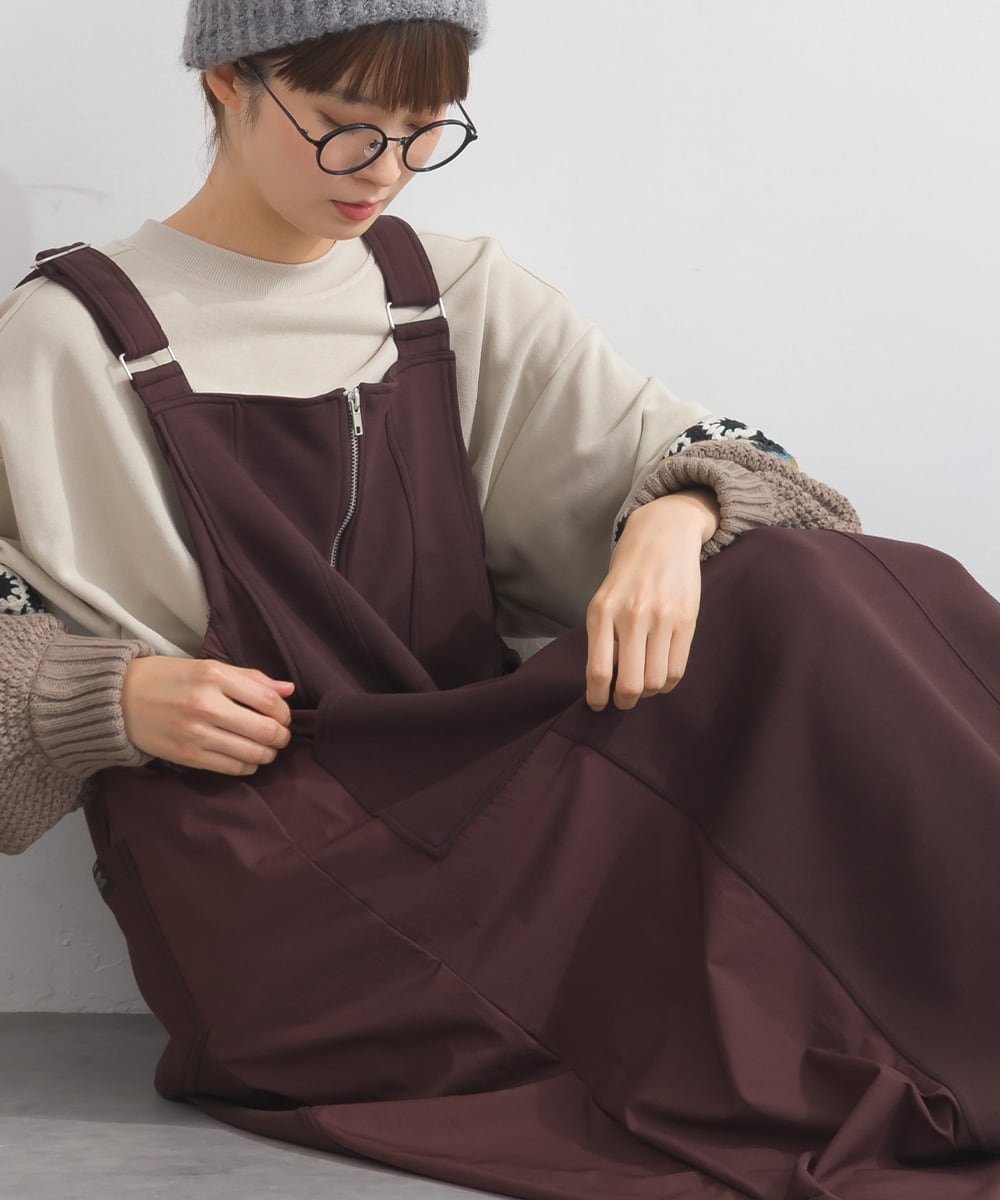 2025AW 2025秋冬新作 秋冬コーデ オーバーサイズ ワンマイルウエア iriey アイリー meme ミーム カジュアル ナチュラル ミセス ゆったり 体型カバー ゆったりシルエット 体型カバー カジュアルスタイル レイヤードコーデ ナチュラル服 着回しコーデ 大人カジュアル おうちコーデ 旅行コーデ おしゃれコーデ リラックスウェア デイリーコーデ 楽ちんコーデ 異素材切替 ジャンスカ 秋冬ジャンスカ Aラインシルエット 体型カバー 重ね着コーデ ポンチ素材 レディースワンピース