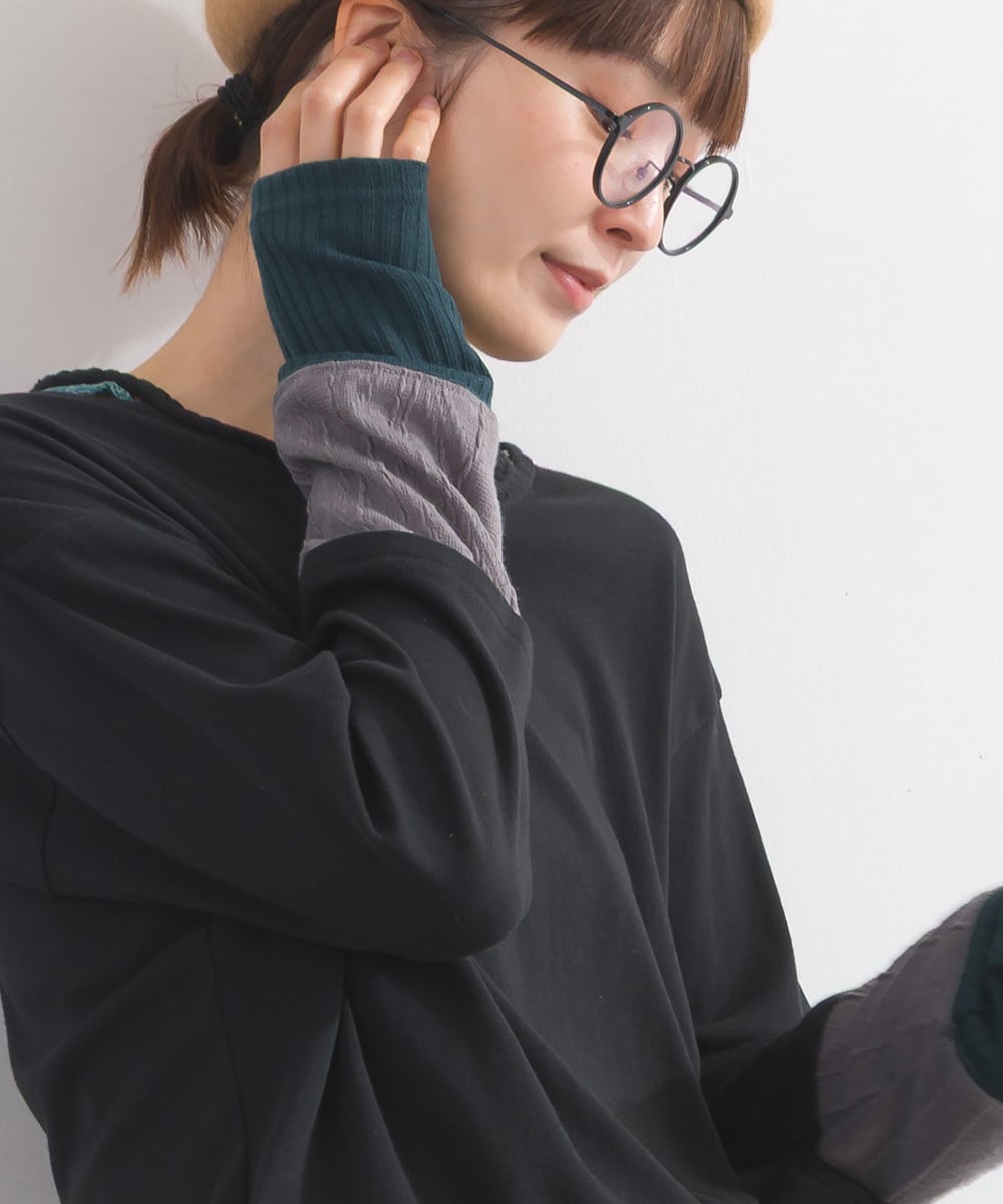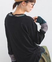 K53130 異素材肩バラ紐30/-フライス長袖Tシャツ / Mixed Fabric String Long Sleeve Tee