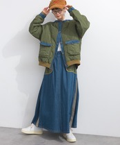 K53115 キルティング×8ozデニム異素材スカート / Quilted × 8oz Denim Mixed-Fabric Skirt