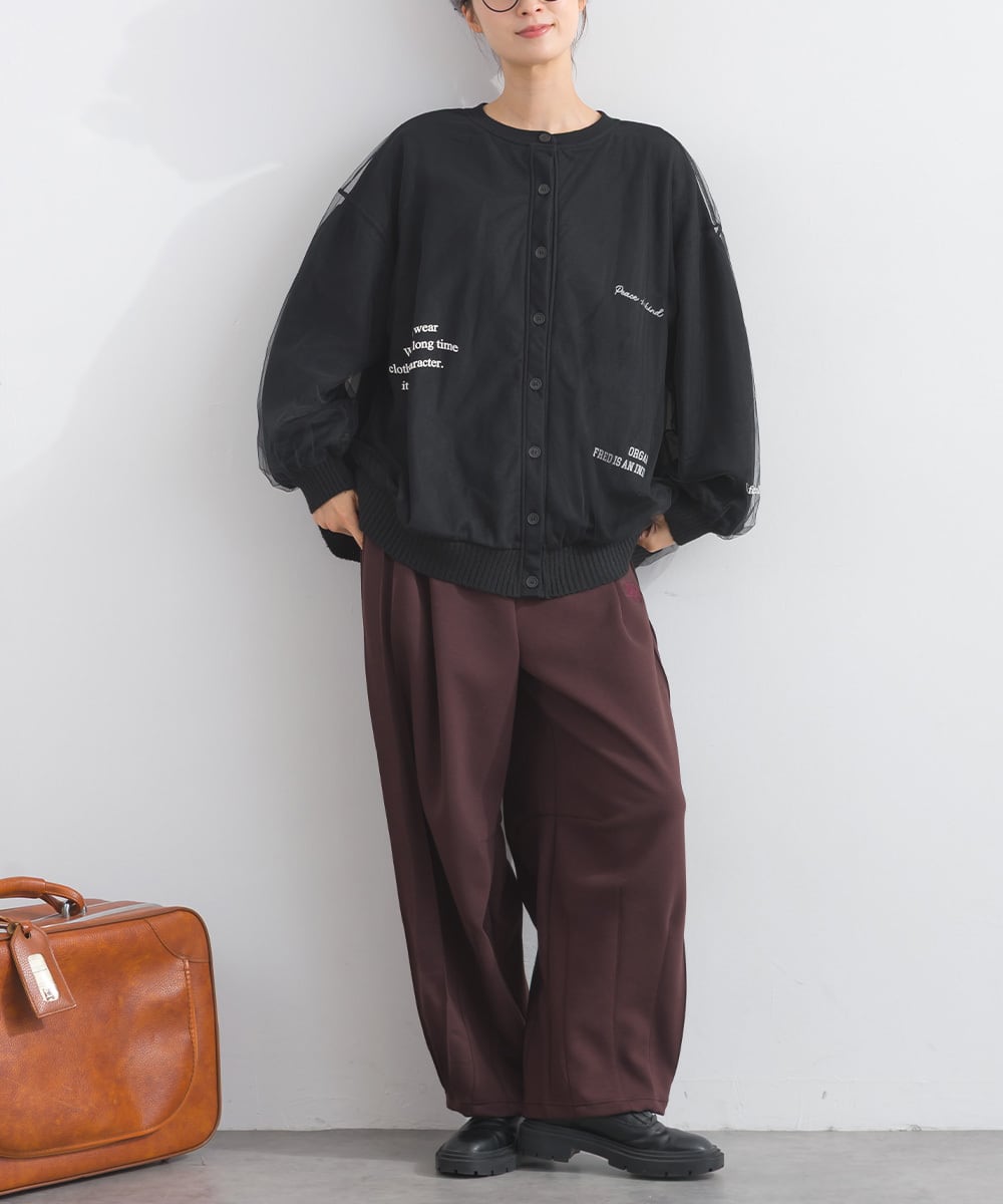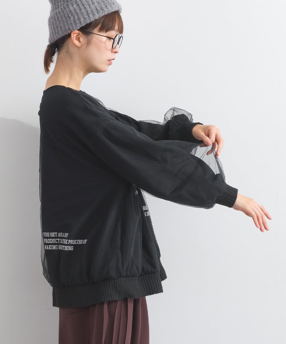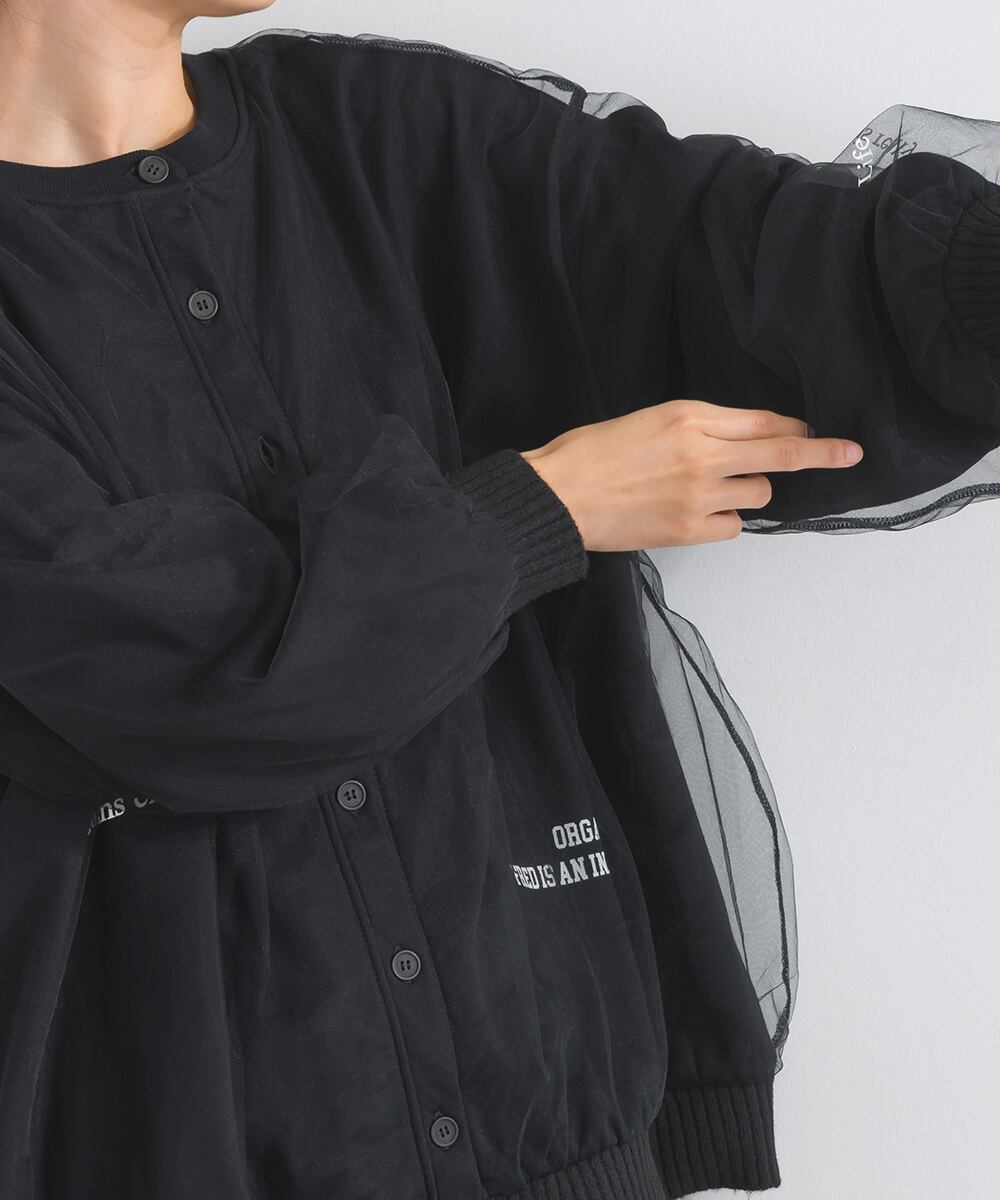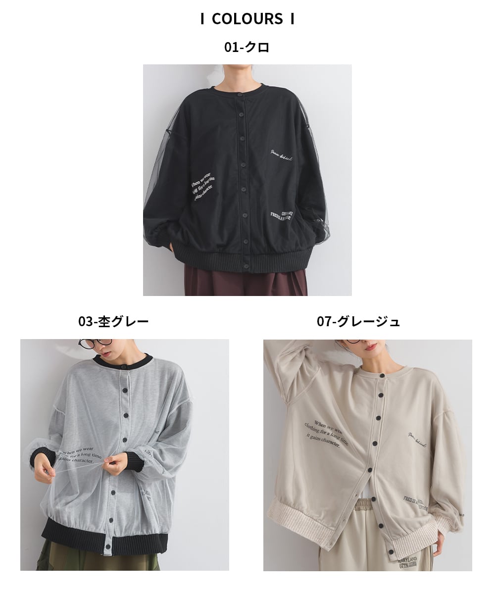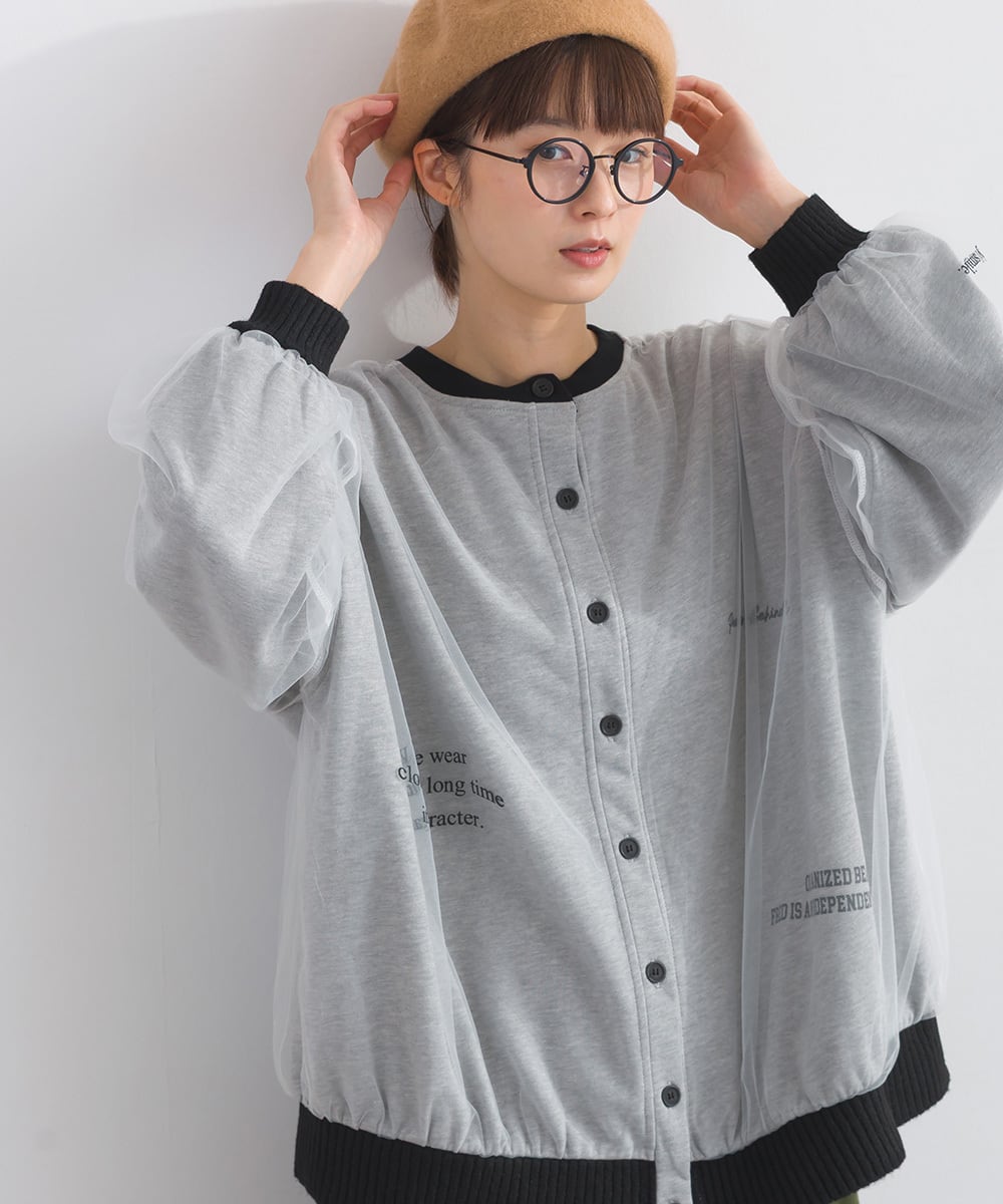 ベーシックな裏毛カーディガンに、チュール素材を大胆にドッキングした主役級の1枚。