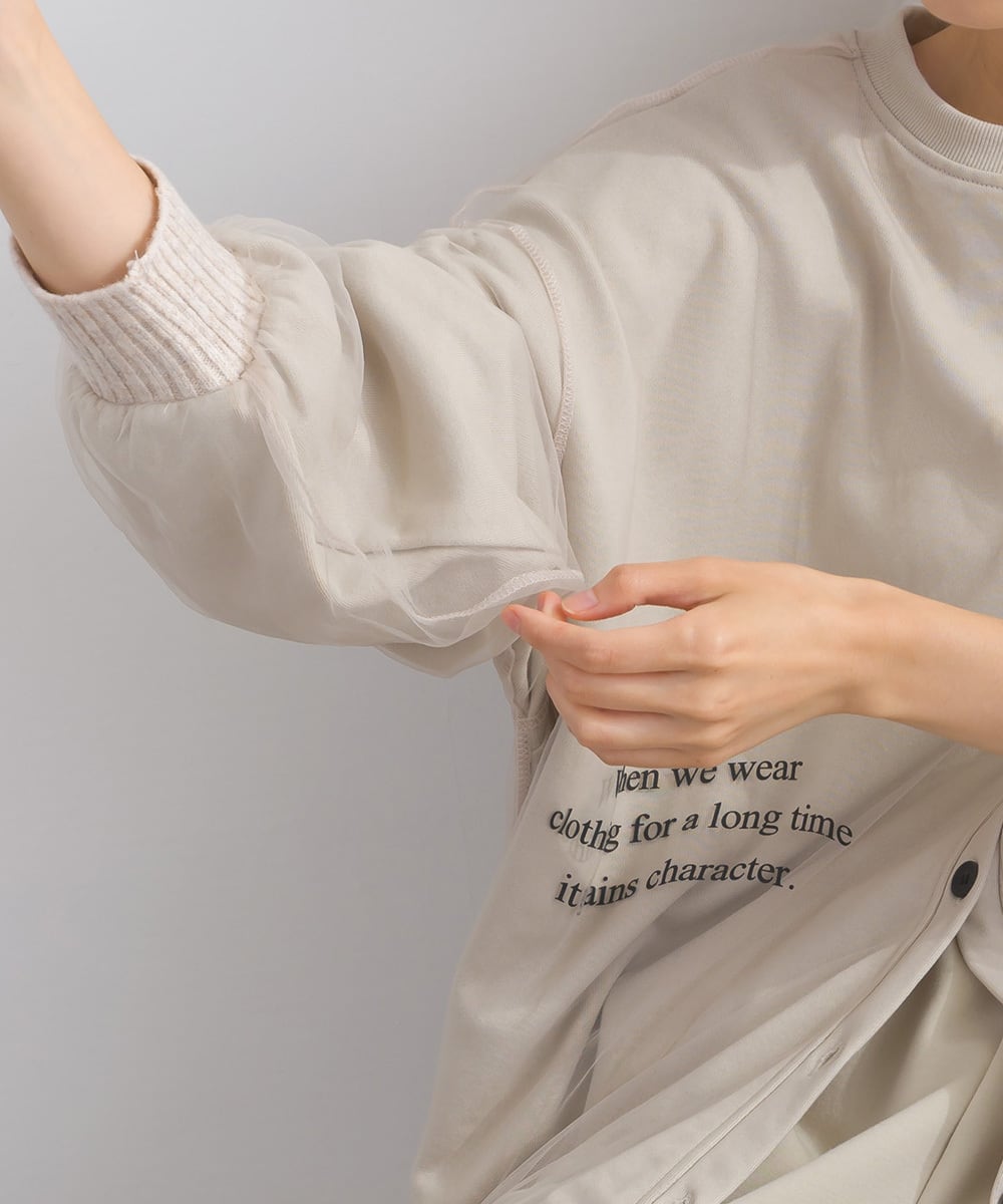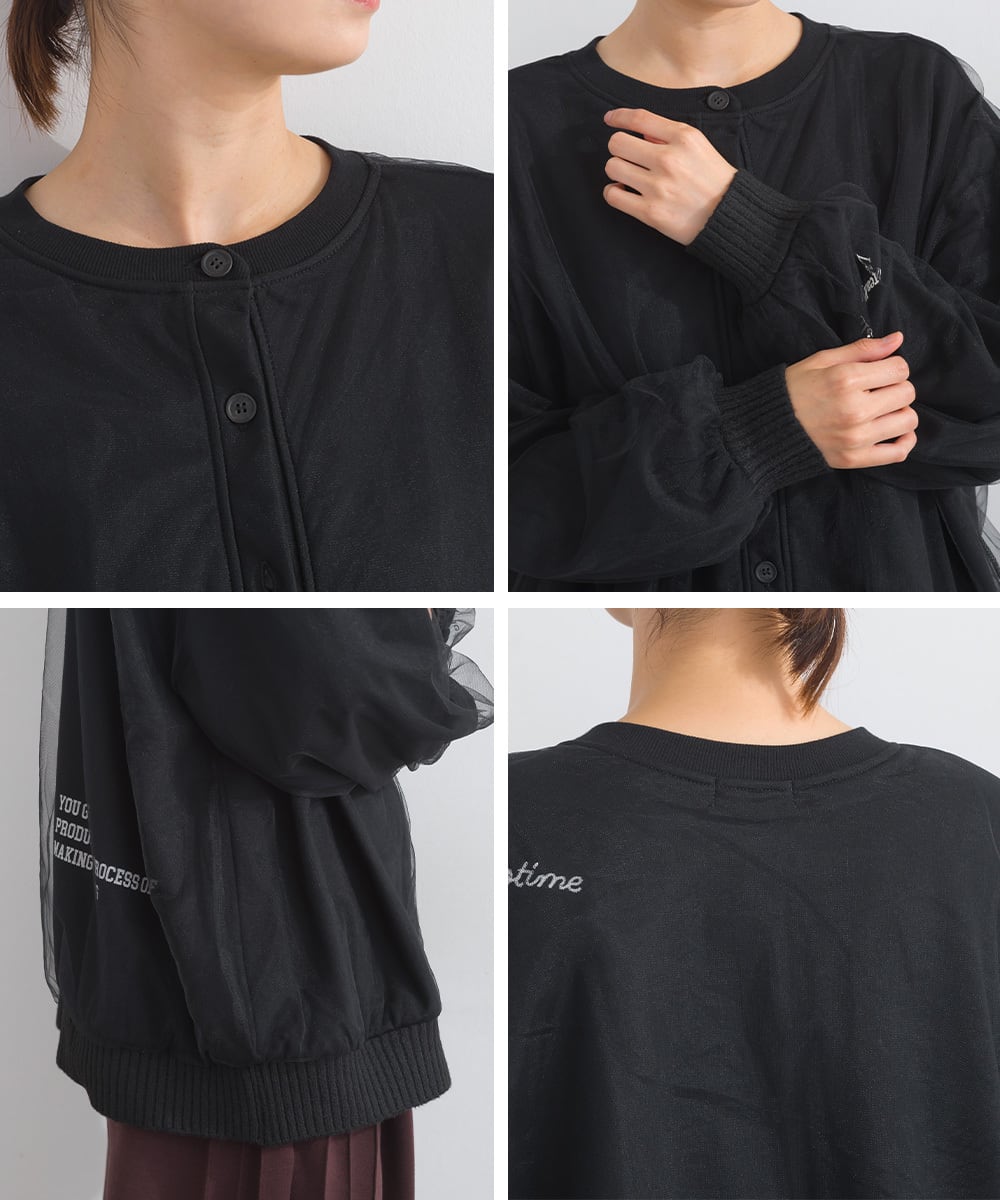 B53125 TC裏毛チュールドッキングカーディガン / TC Back Fleece Tulle Docking Cardigan