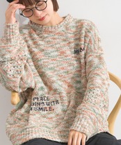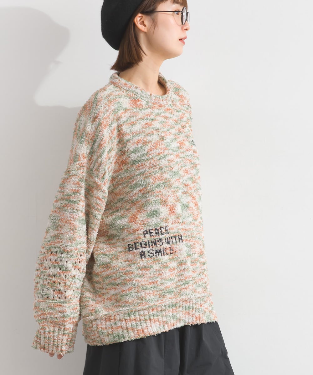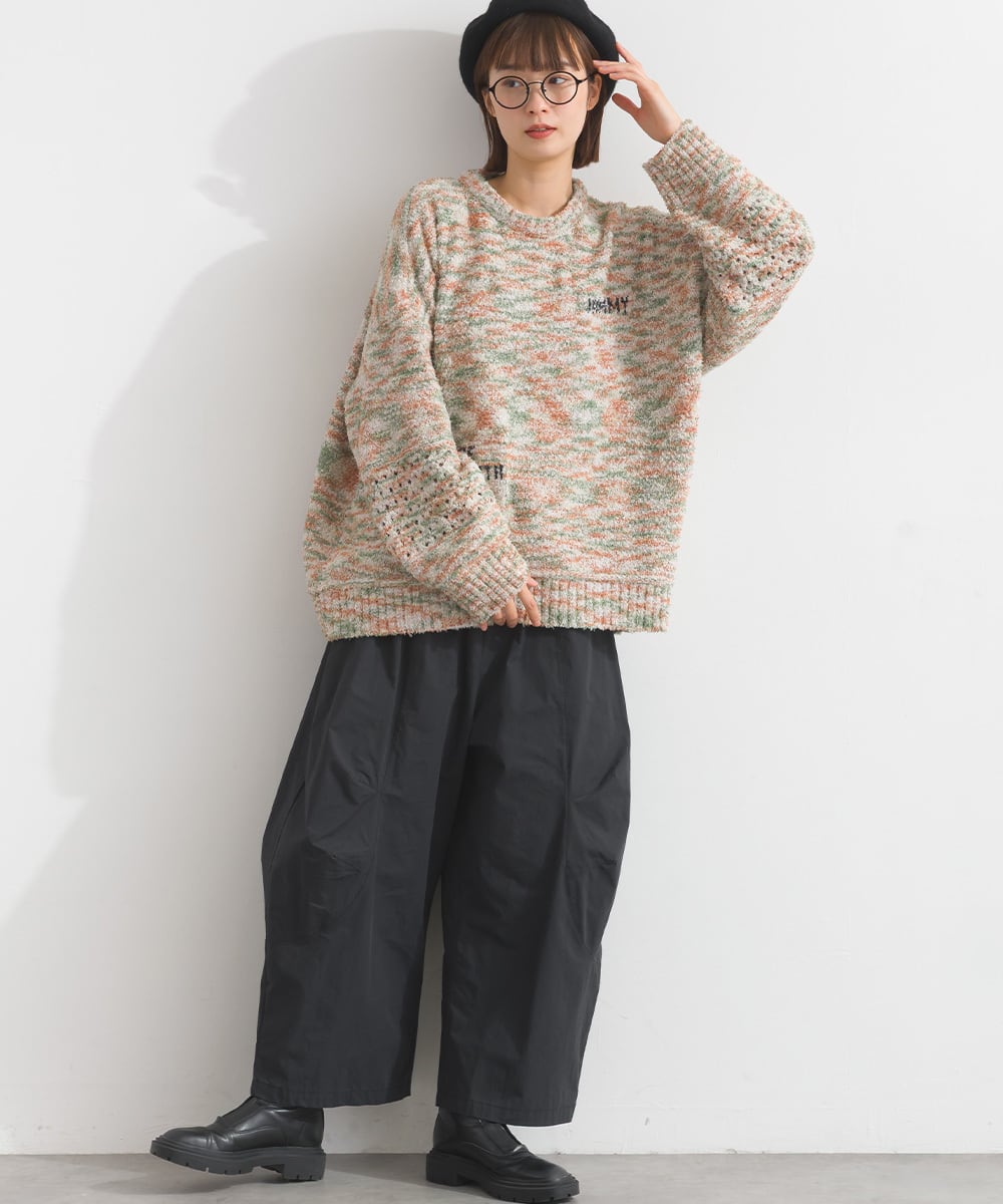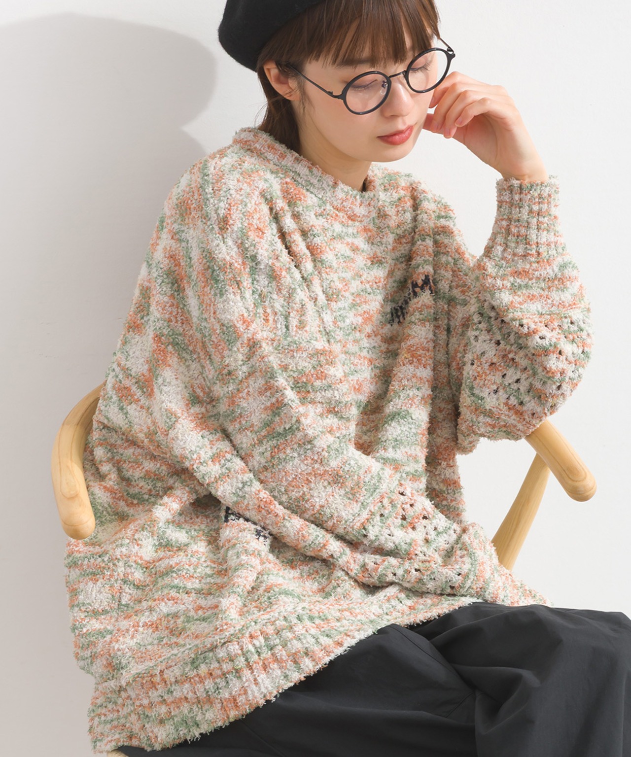 B54005 MIXモール編み地切替ロゴプルオーバー / MIX Chenille Knit Logo Pullover