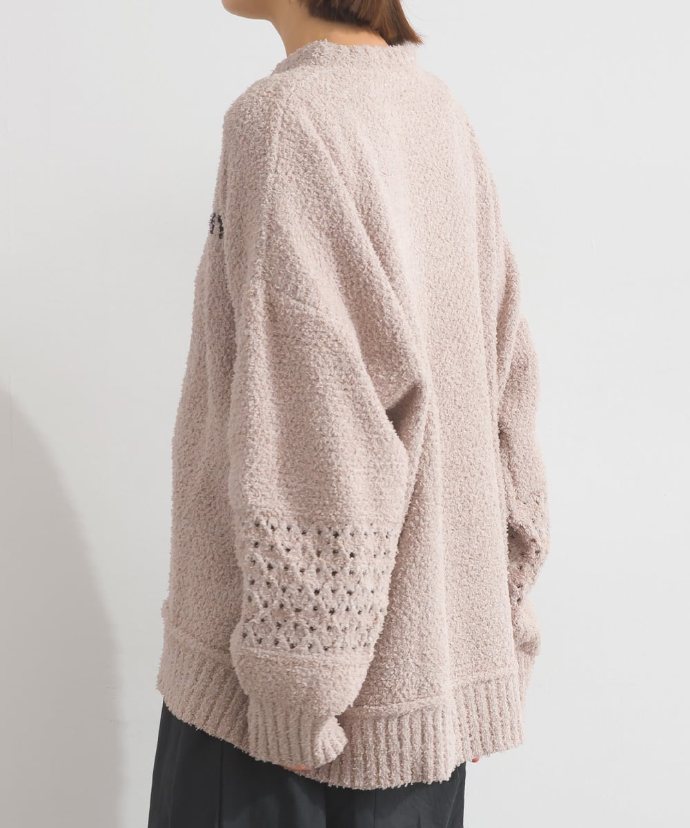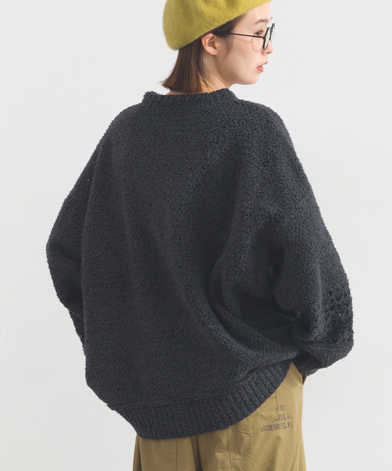 Mixモール5Gで編み上げた素材は、ふんわりとしたボリューム感と軽い着心地が特徴。