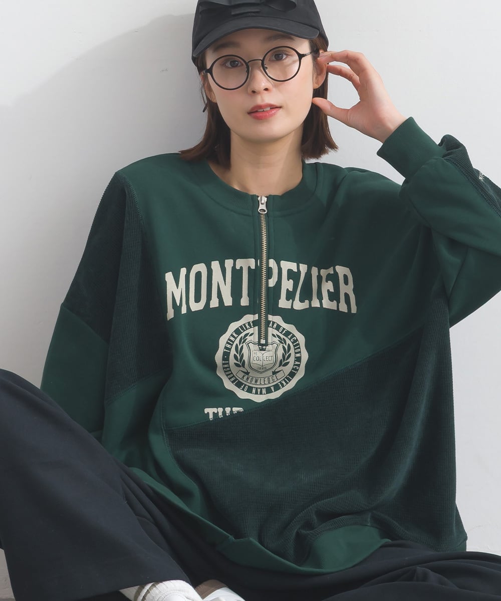 配色切替と胸元のハーフZIPが印象的なクレイジーデザインのスウェットプルオーバー。
