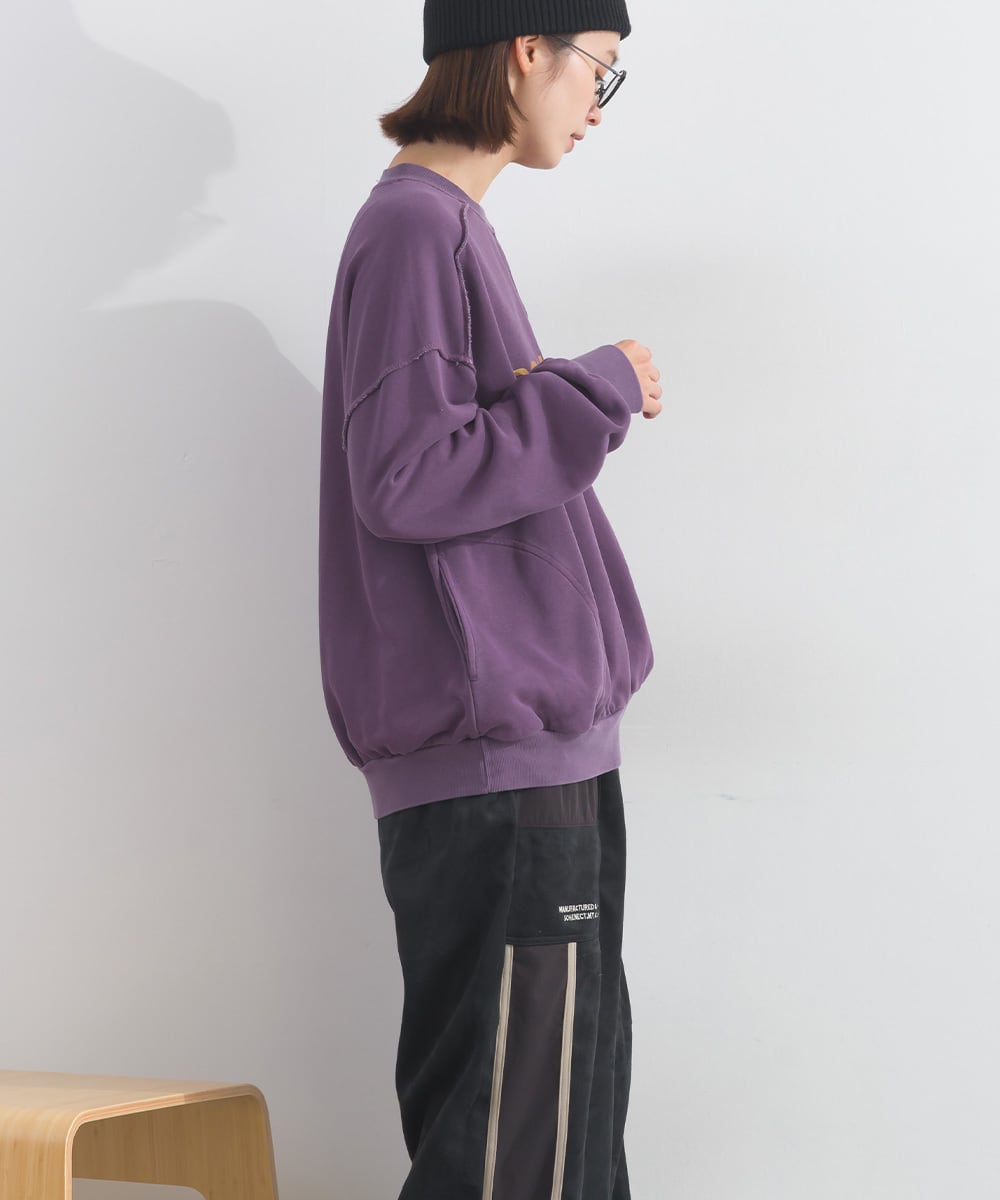 古着のような風合いを演出するピグメント染めスウェットプルオーバー。