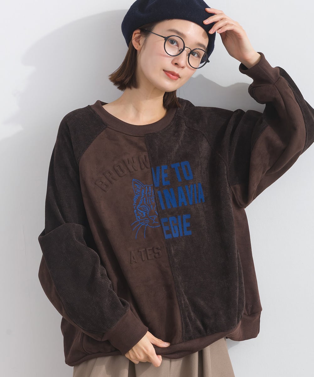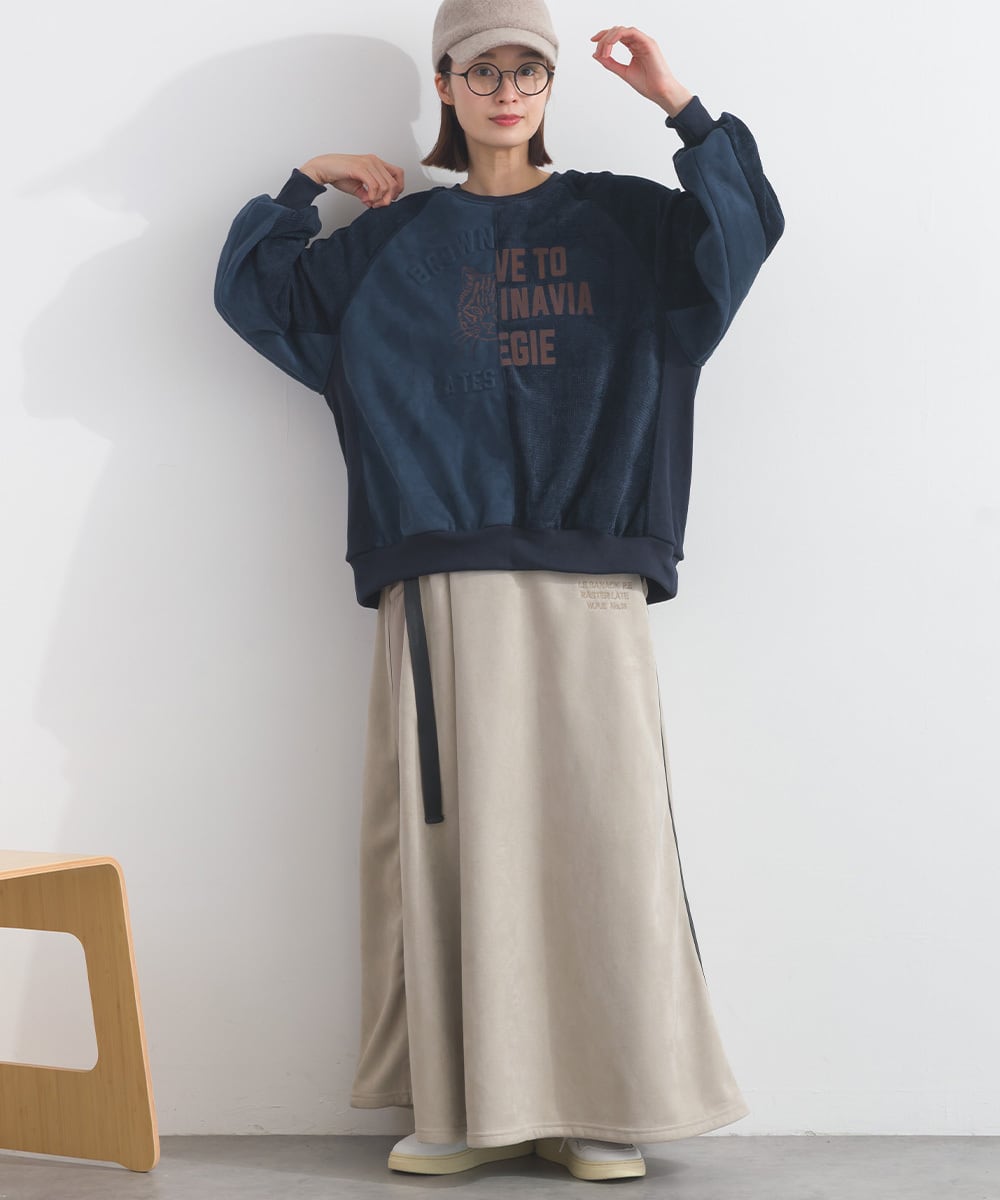 フェイクスエード異素材切替リメイクプルオーバー