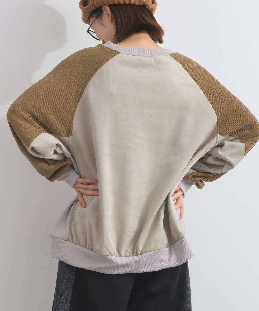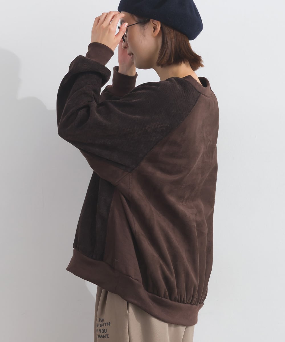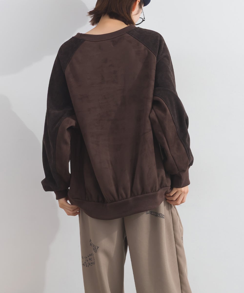 K54001 フェイクスエード異素材切替リメイクプルオーバー / Faux Suede Mixed-Texture Remake Pullover