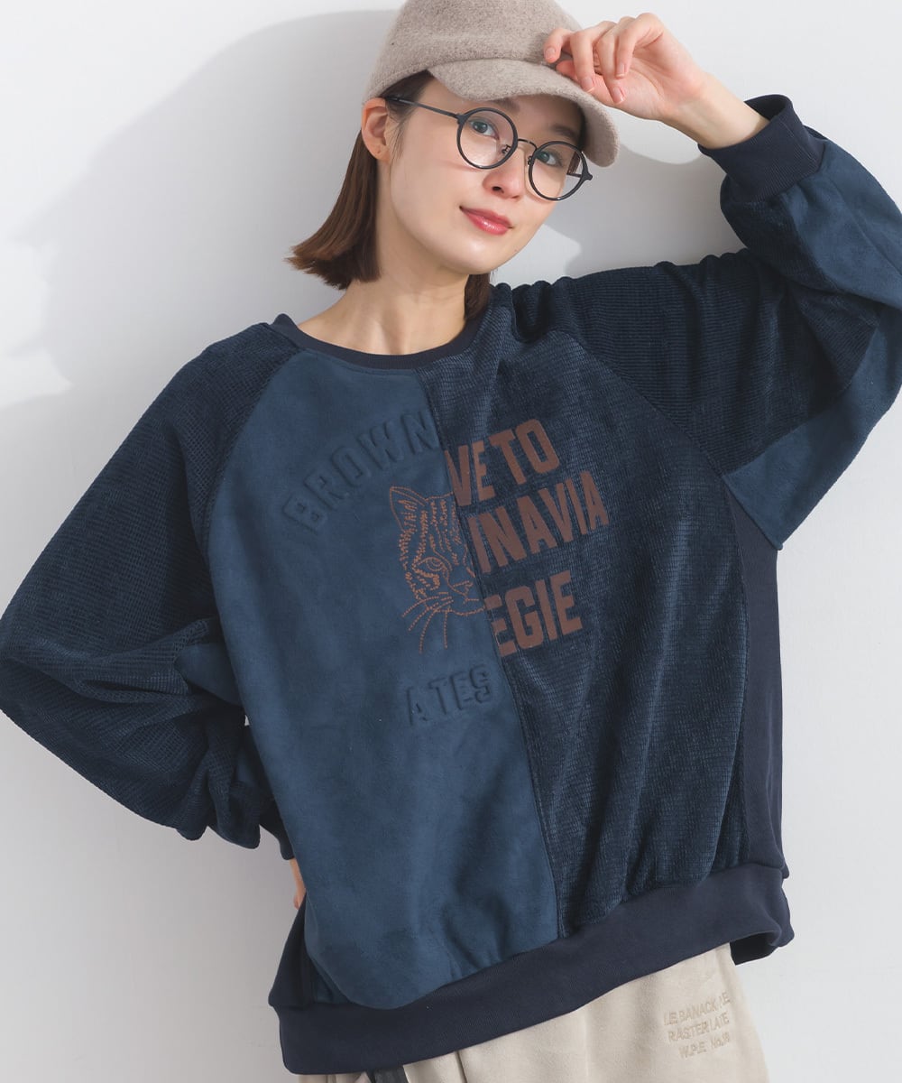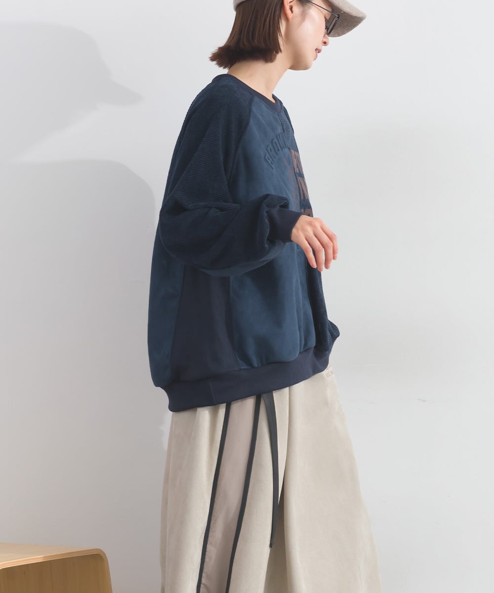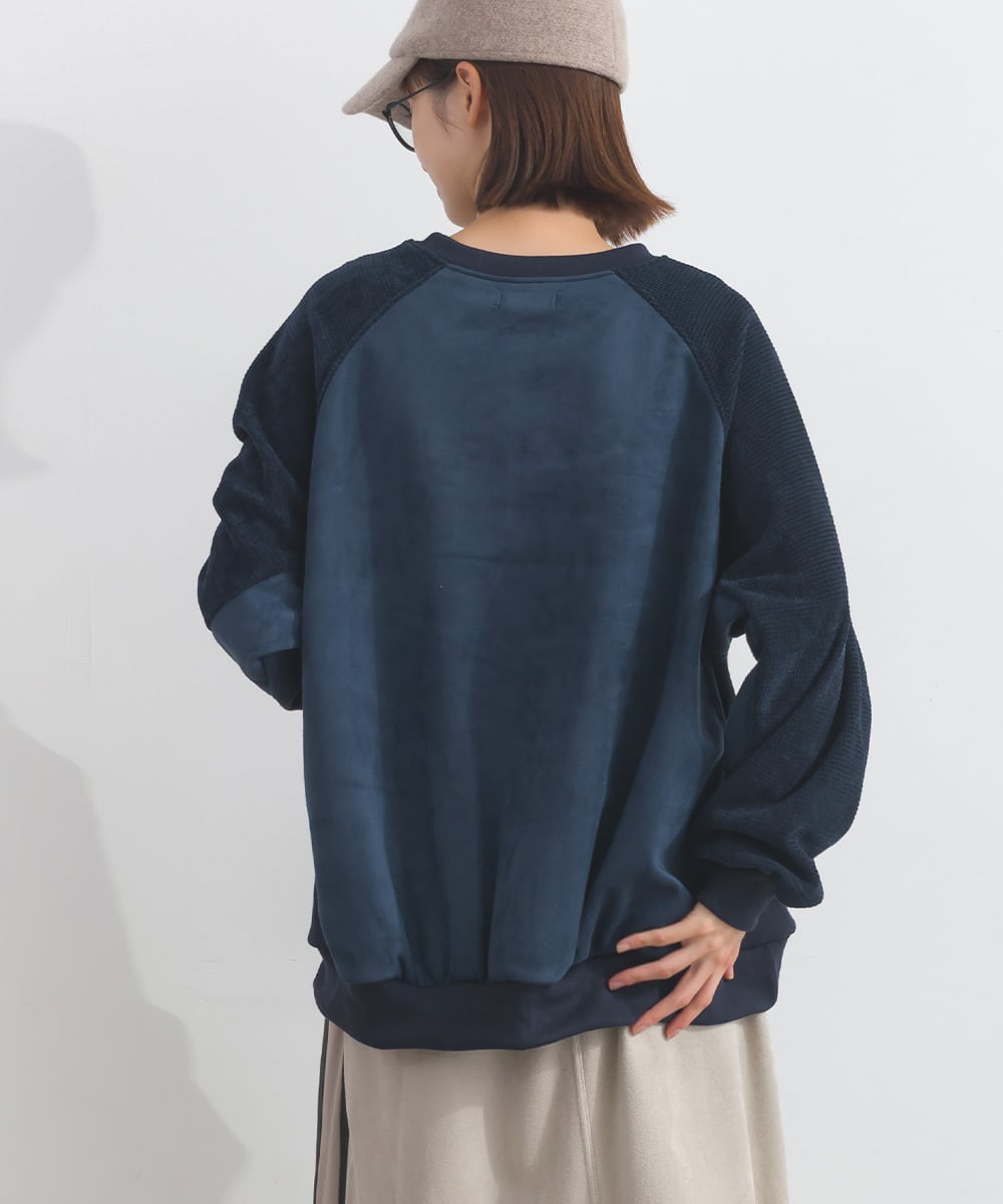 K54001 フェイクスエード異素材切替リメイクプルオーバー / Faux Suede Mixed-Texture Remake Pullover
