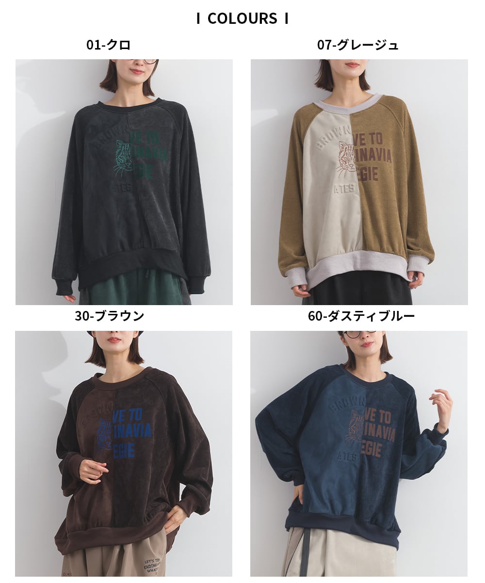 2025AW 2025秋冬新作 秋冬コーデ オーバーサイズ ワンマイルウエア iriey アイリー カジュアル ナチュラル ミセス ゆったり 体型カバー ゆったりシルエット スウェット プルオーバー リメイク風 異素材切替 フェイクスウェード ロゴプリント ビッグシルエット レディーストップス メンズライク 韓国ファッション ストリート カジュアルトップス ユニセックス トレンドスウェット デイリーウェア 古着風 人気アイテム AIO ファッション
