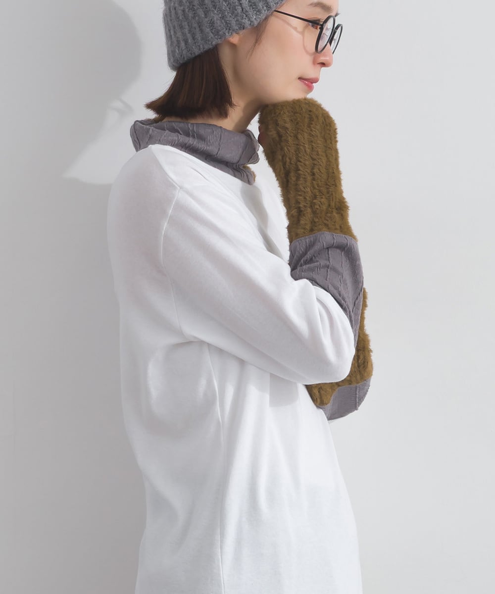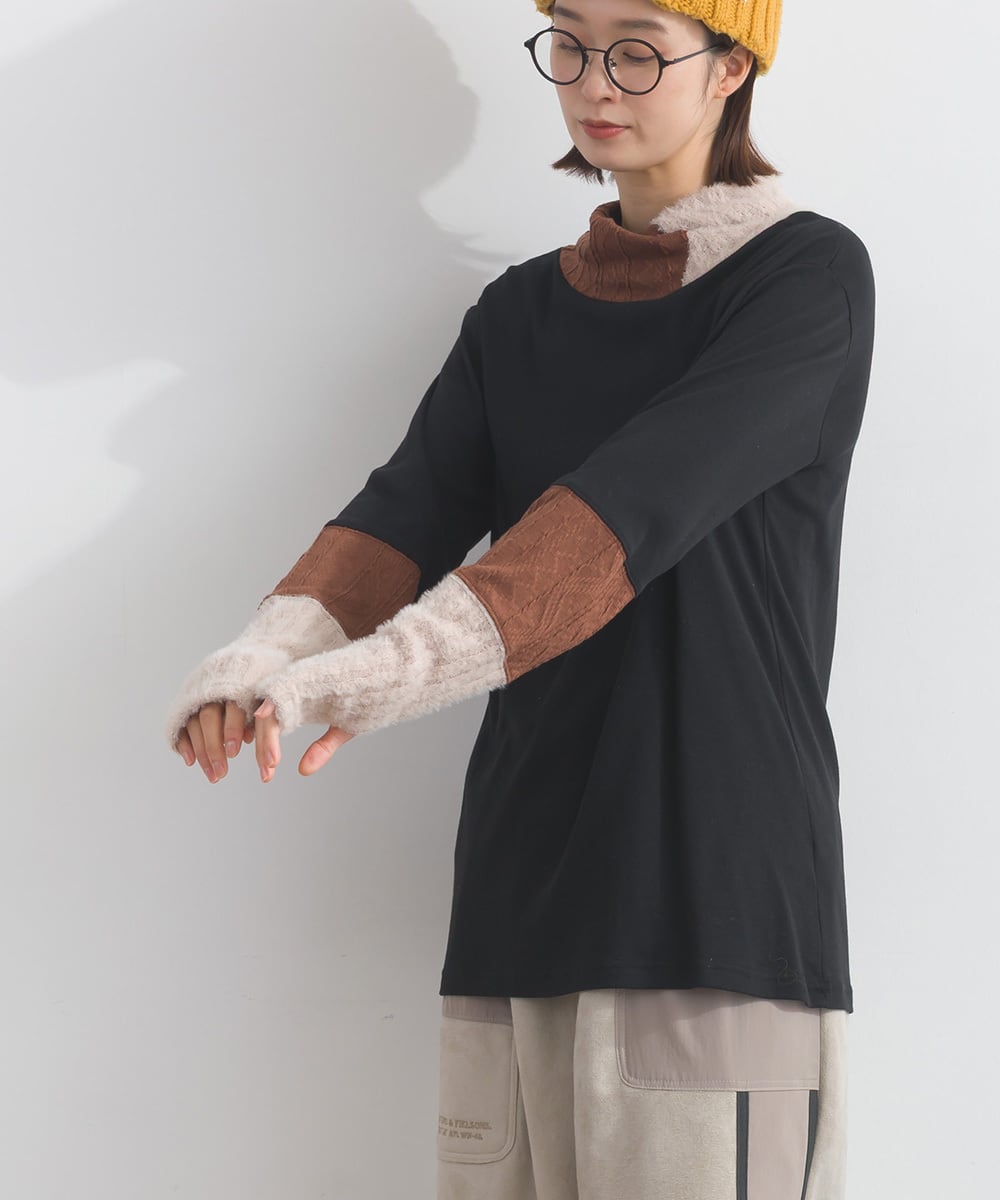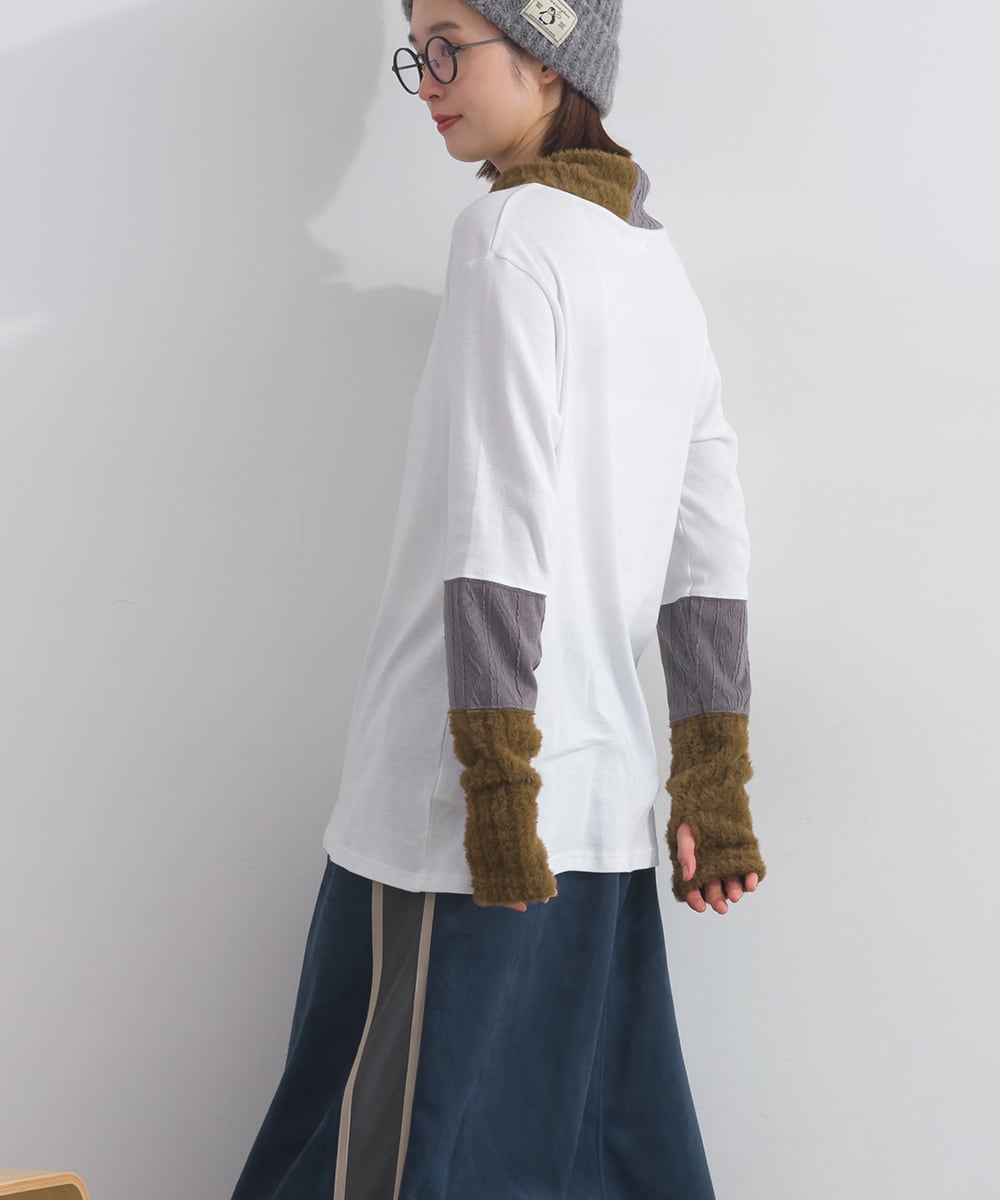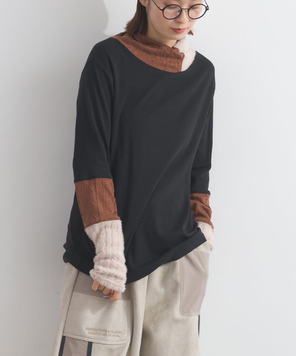 K54008 フライス袖切替タートル長袖Tシャツ / Ribbed Turtle Long Sleeve T Shirt with Sleeve Contrast