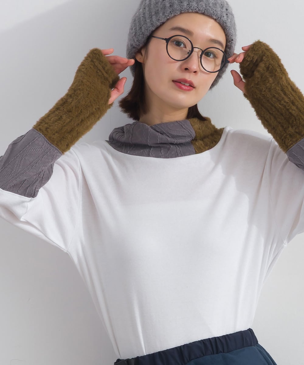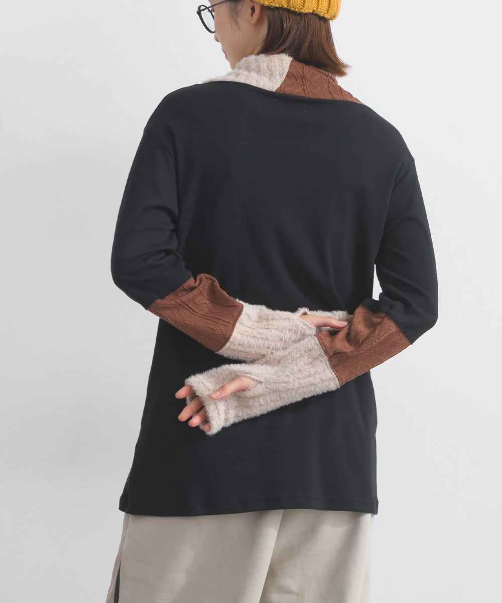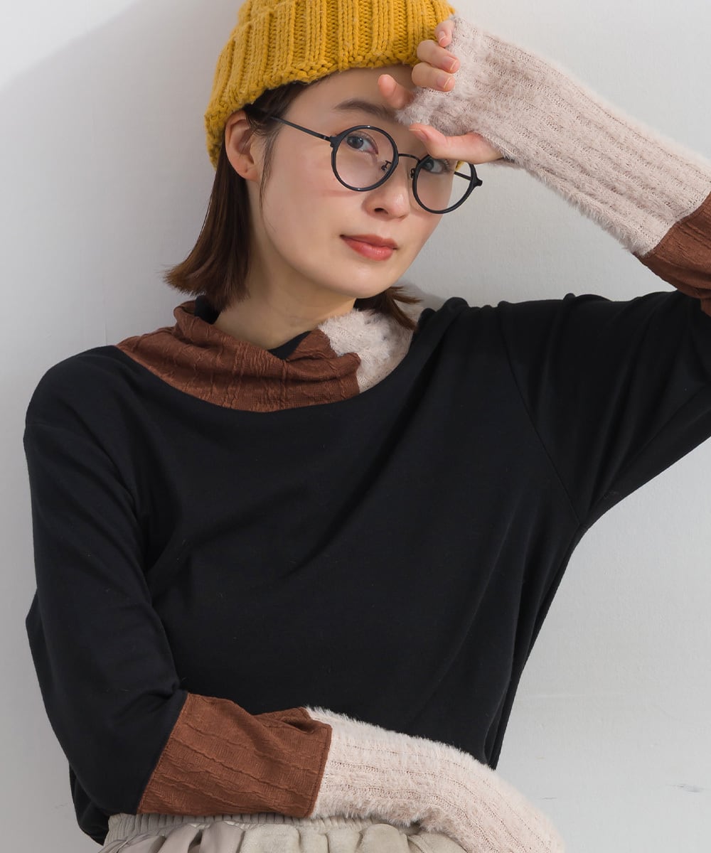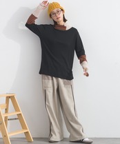 K54008 フライス袖切替タートル長袖Tシャツ / Ribbed Turtle Long Sleeve T Shirt with Sleeve Contrast