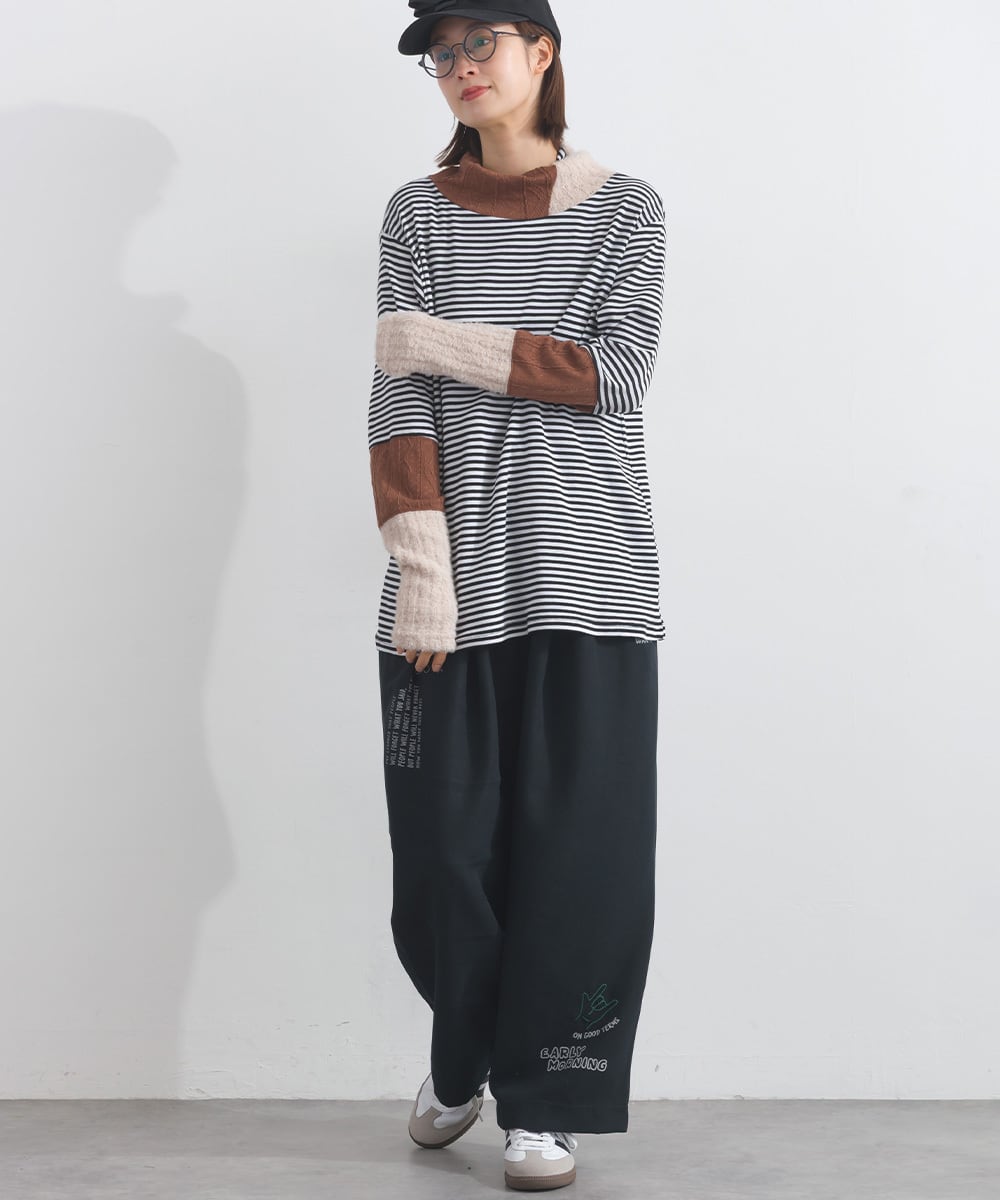 2025AW 2025秋冬新作 秋冬コーデ オーバーサイズ ワンマイルウエア iriey アイリー カジュアル ナチュラル ミセス ゆったり 体型カバー ゆったりシルエット タートルネックロンT 袖切替トップス 長袖カットソー 配色デザイントップス 秋冬ロンT レディーストップス メンズライクファッション インナートップス レイヤードスタイル モカブラウン アンバーイエロー ピリジアンブルー ボーダートップス 韓国ファッション ストリートコーデ 体型カバー トレンドトップス あったかトップス おしゃれカットソー カジュアルロンT