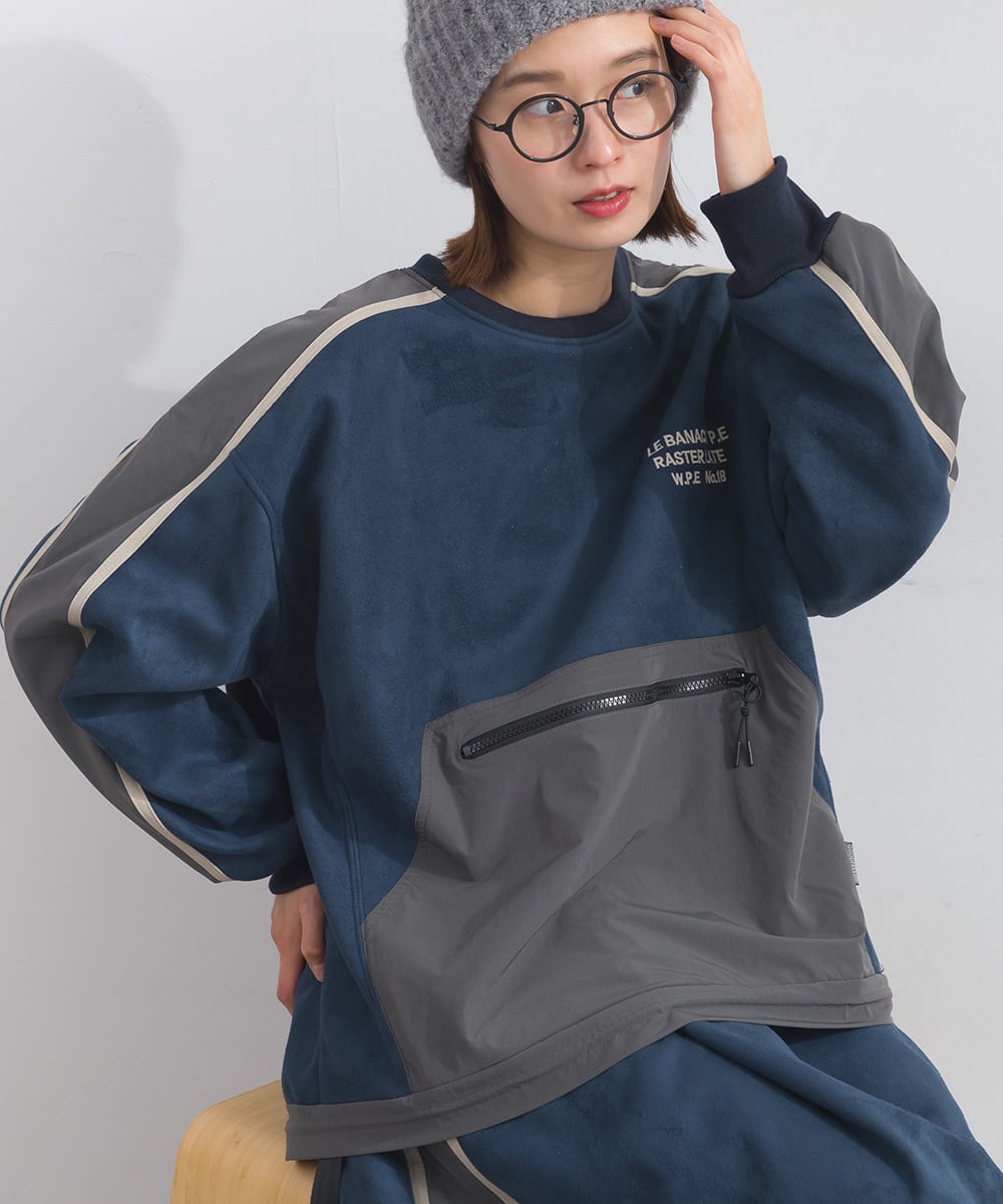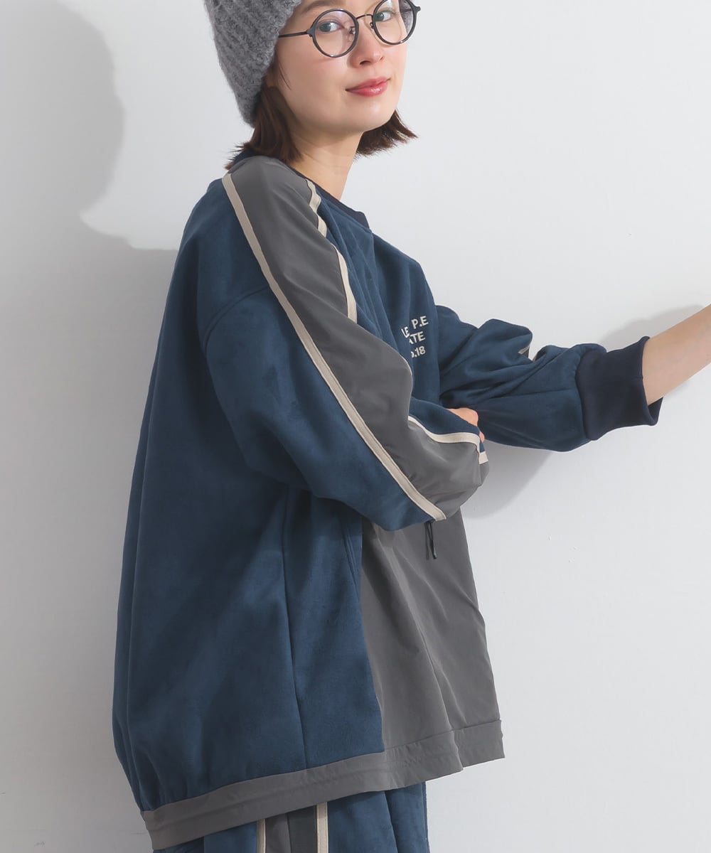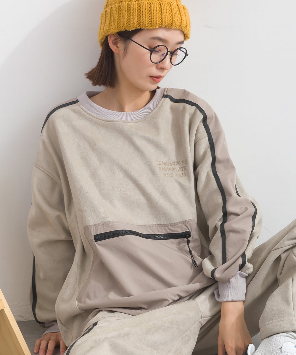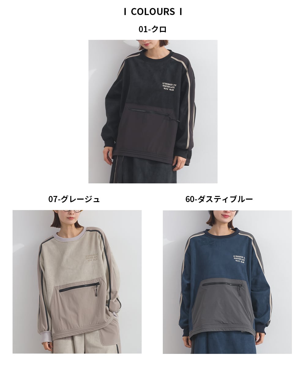 K54016 フェイクスエード配色ラインプルオーバー / Faux Suede Contrast Line Pullover