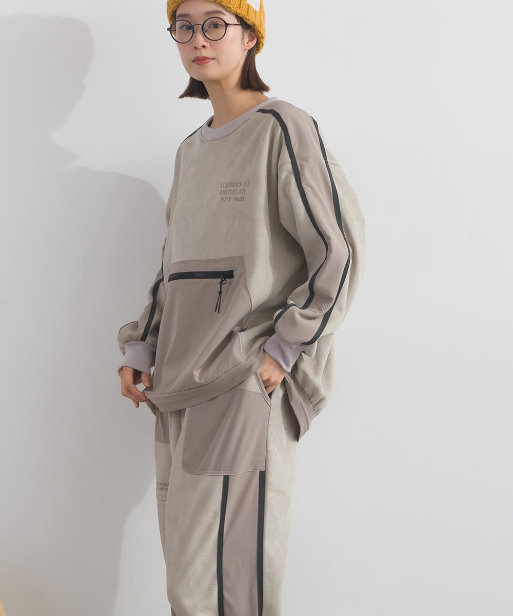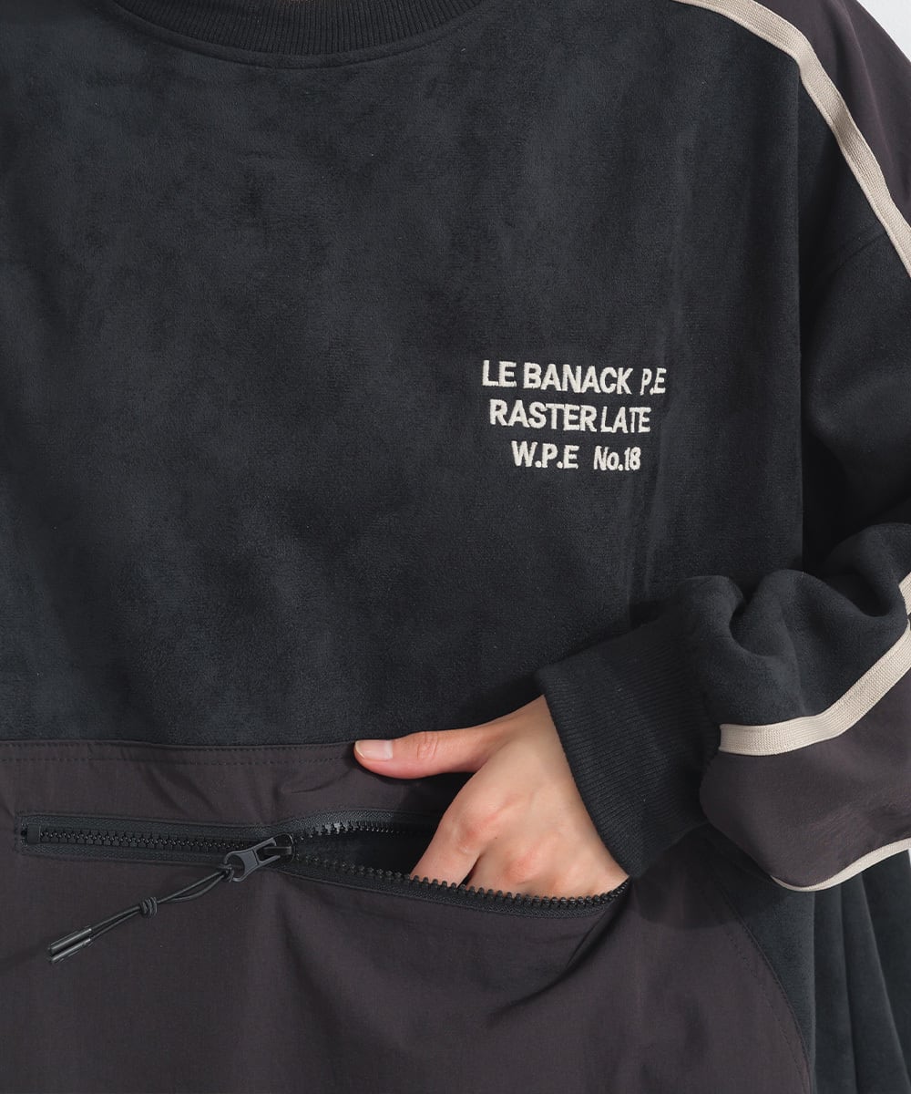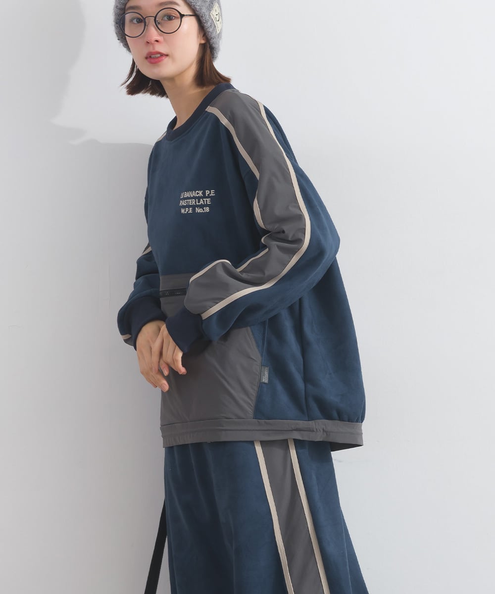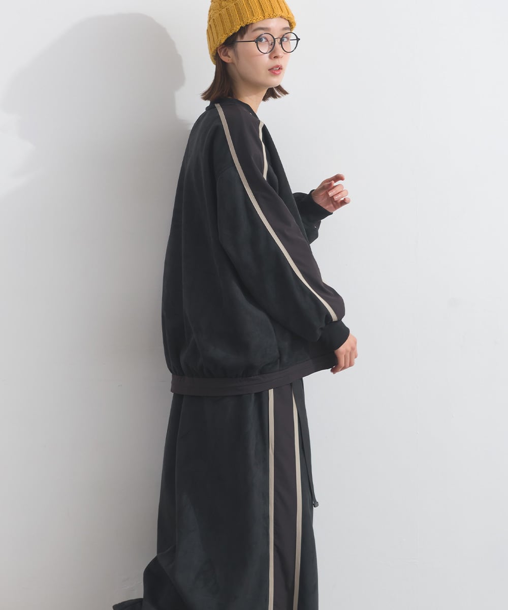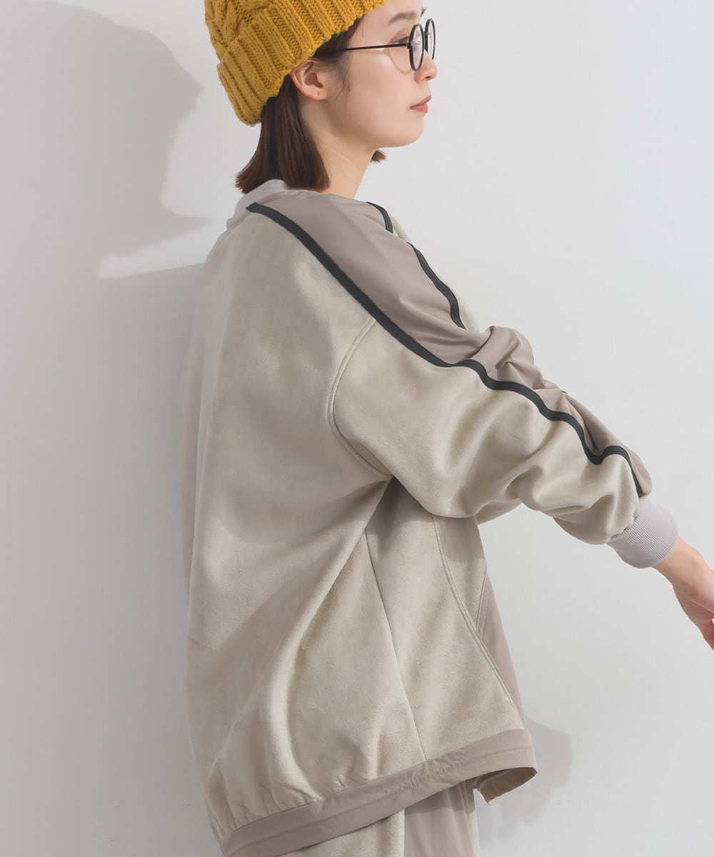 K54016 フェイクスエード配色ラインプルオーバー / Faux Suede Contrast Line Pullover