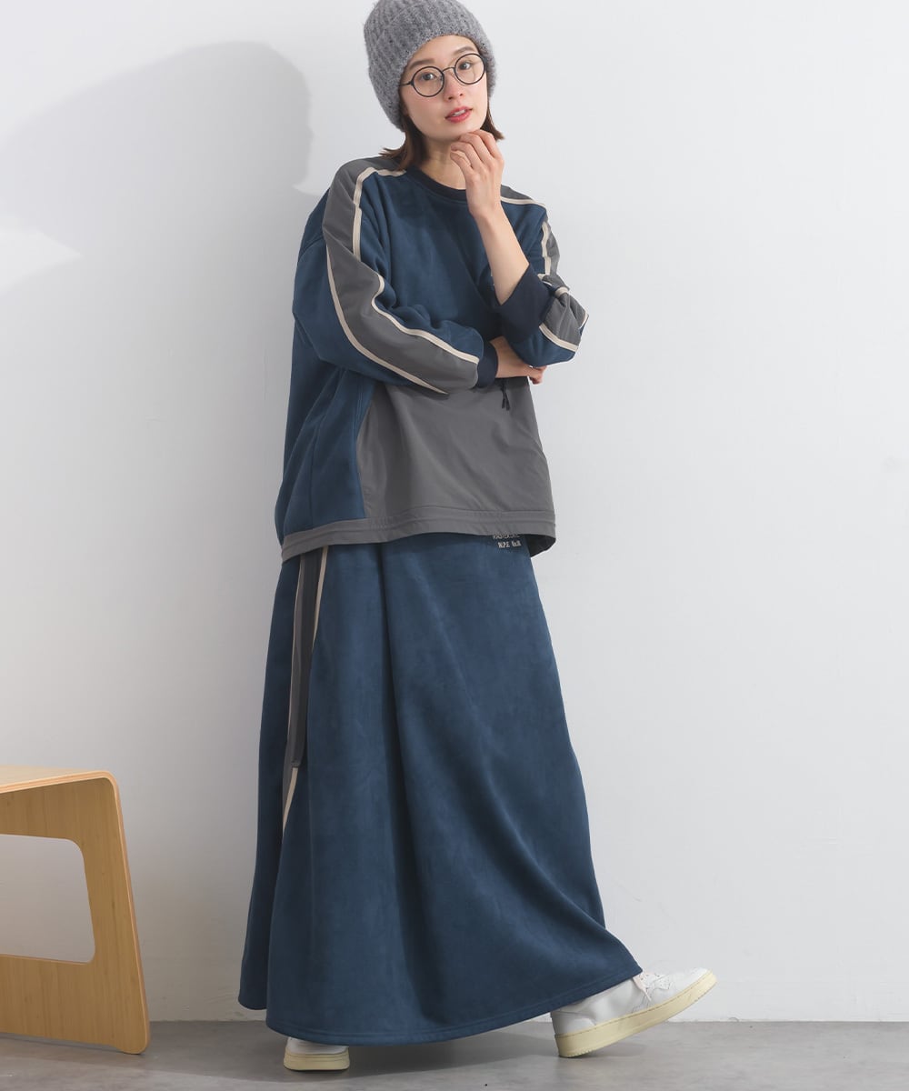 K54018 フェイクスエード配色ラインスカート / Faux Suede Contrast Line Skirt
