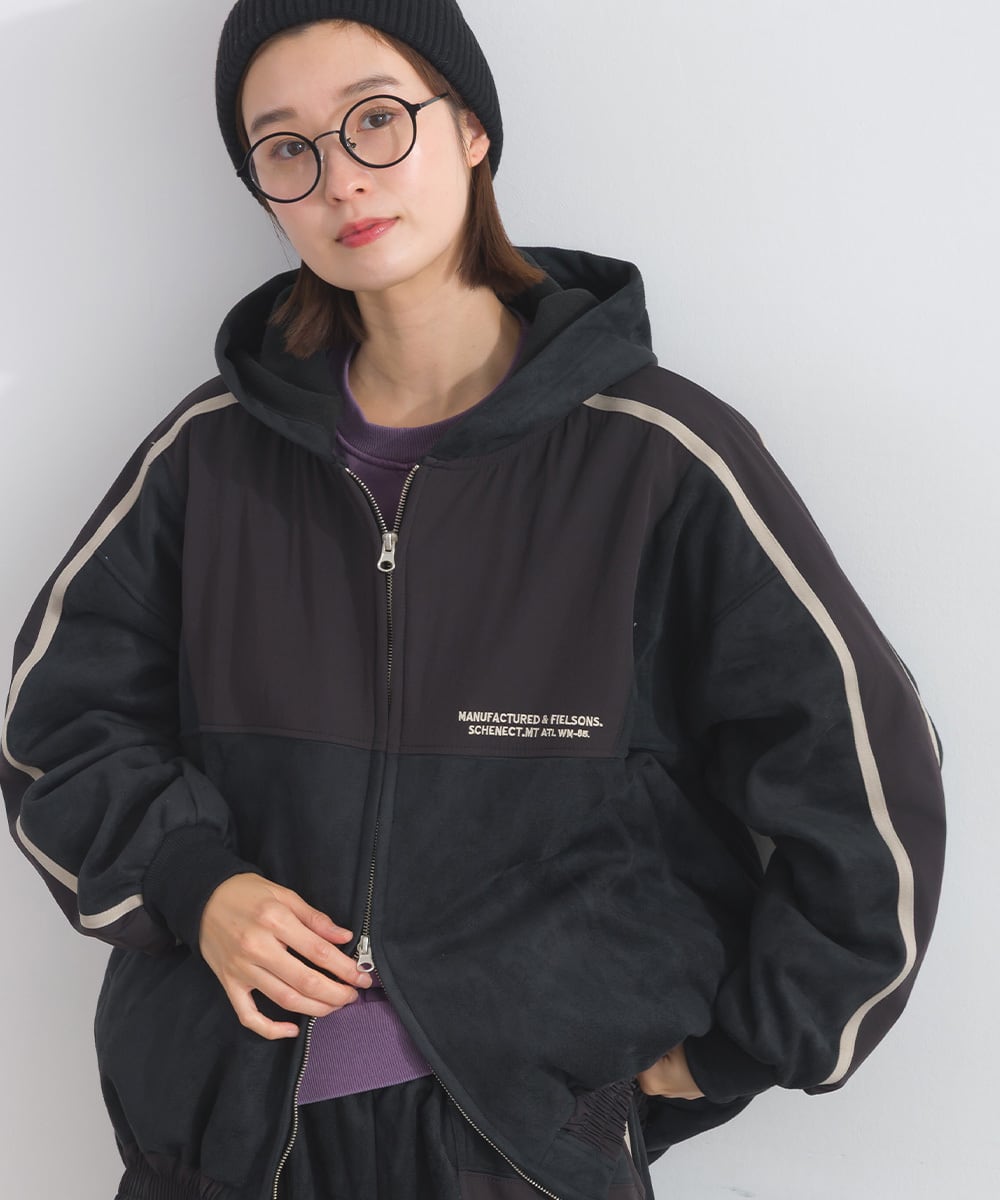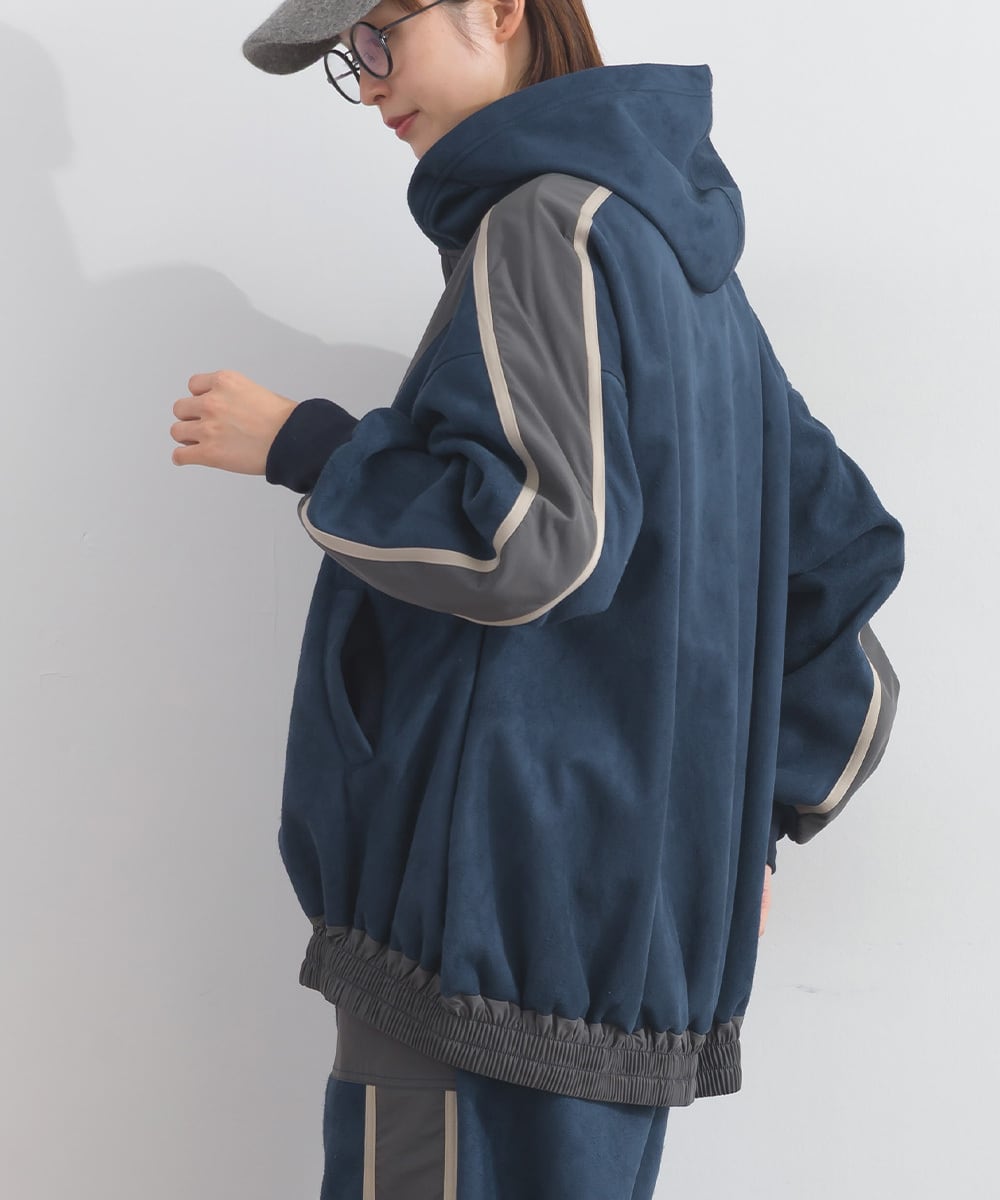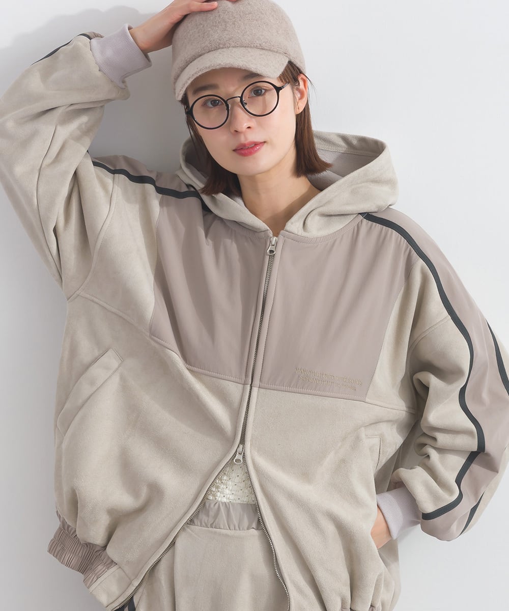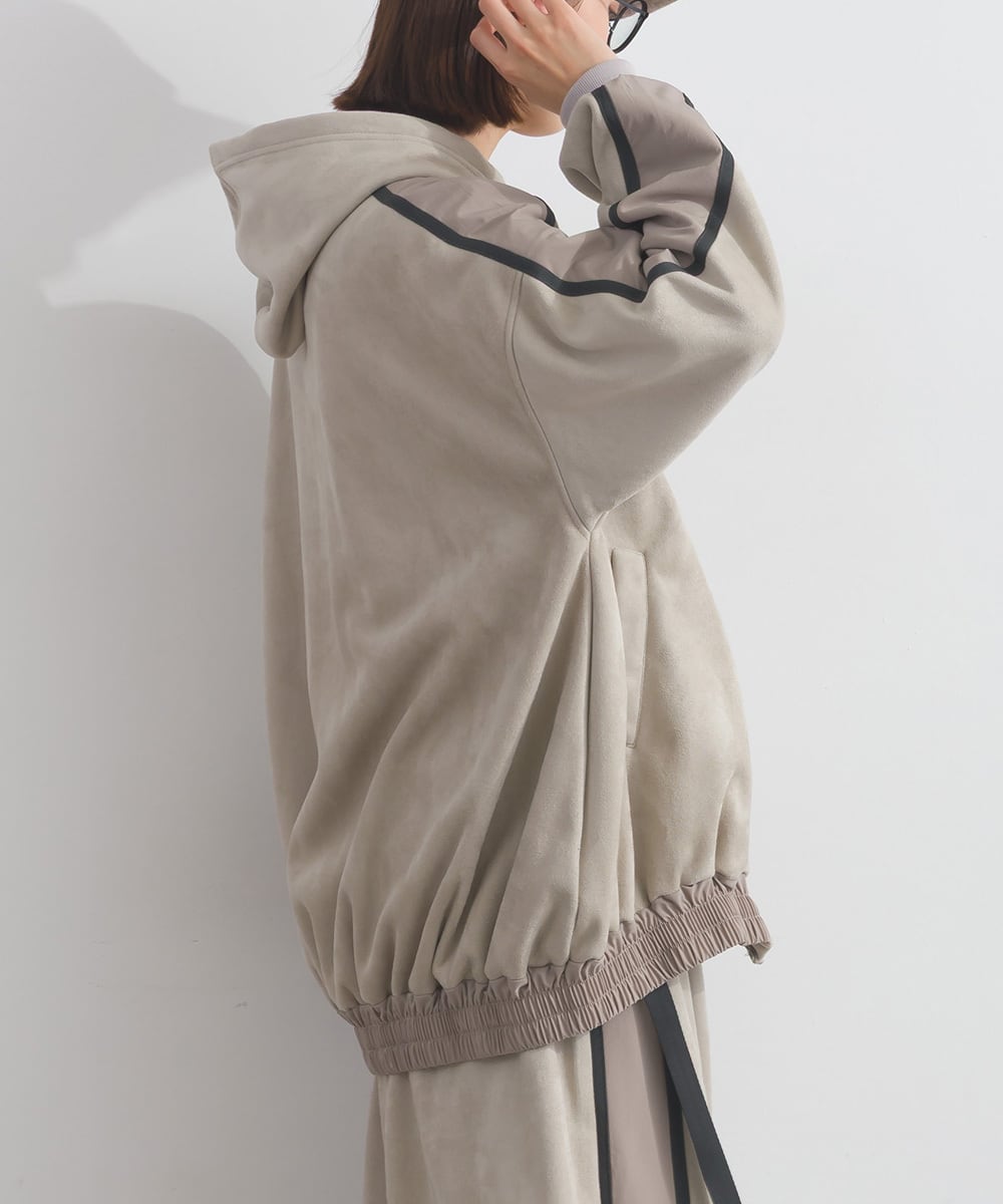 2025AW Autumn Winter New Arrival Oversized One-Mile Wear Iriey Casual Natural Relaxed Fit Body Cover Faux Suede Zip Hoodie Contrast Line Sporty Mature Casual Zip-Up Trendy Easy Wear Daily Outfit AIO Fashion