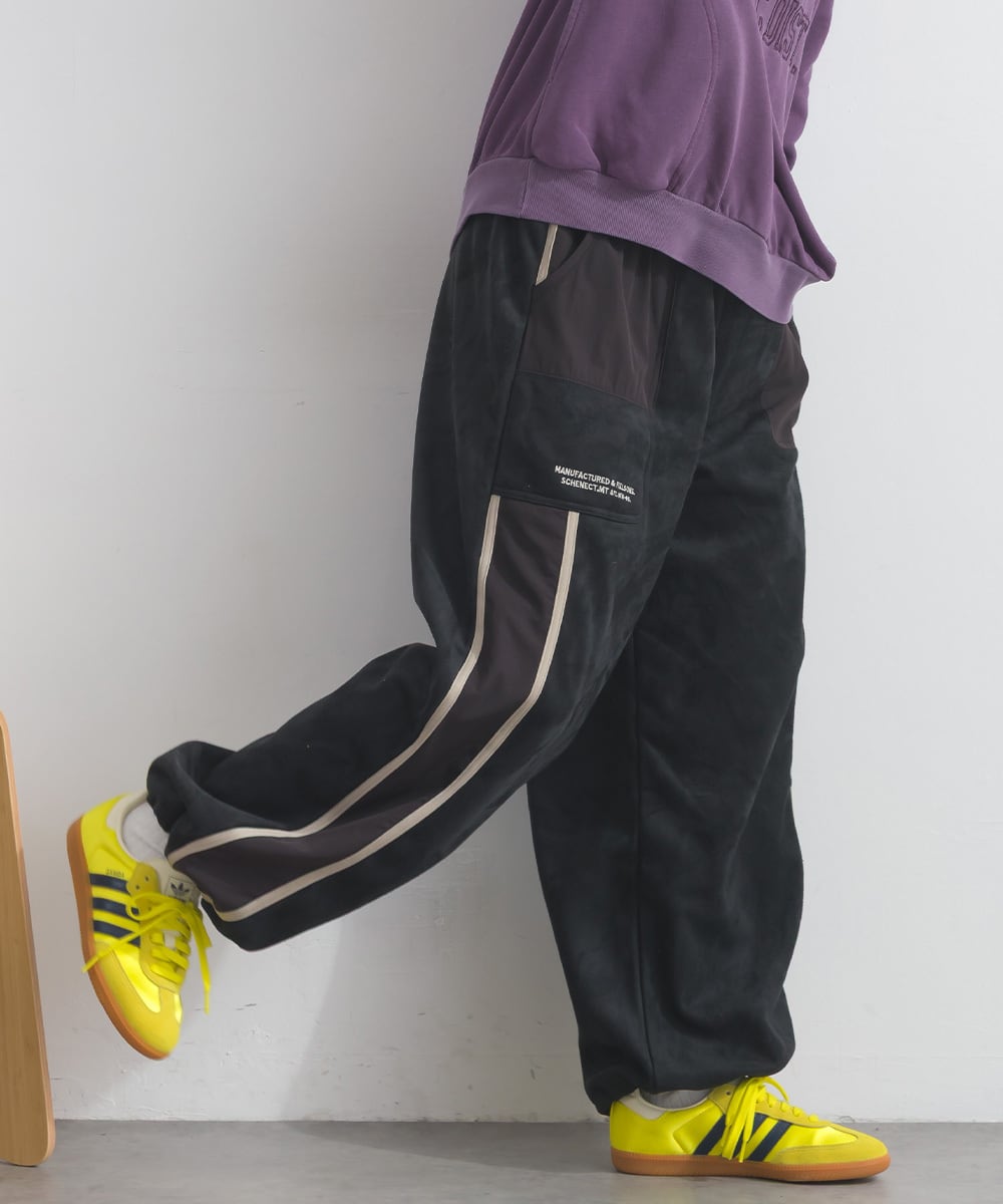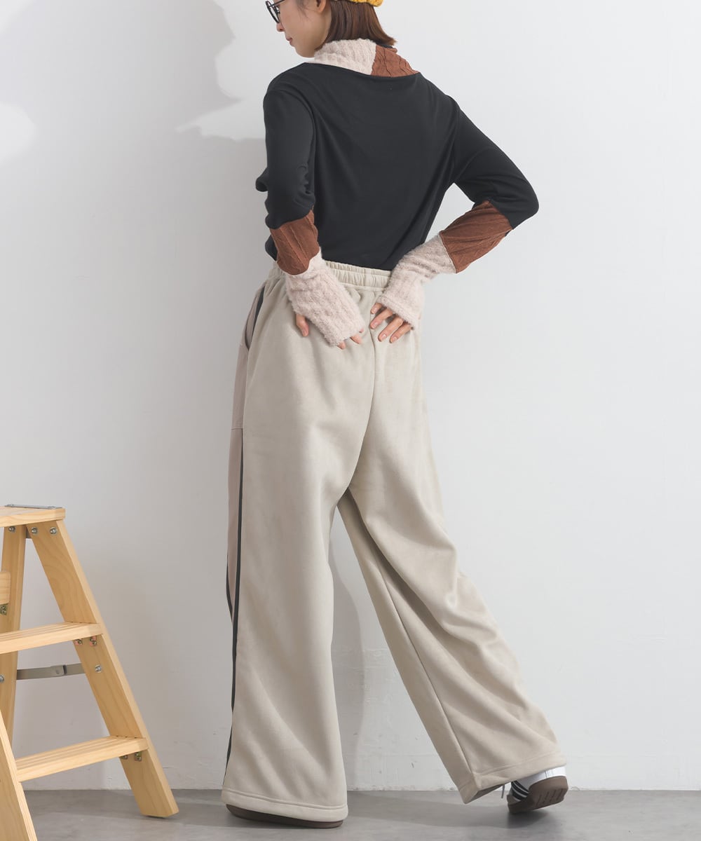 K54019 フェイクスエード配色ラインパンツ / Faux Suede Contrast Line Pants