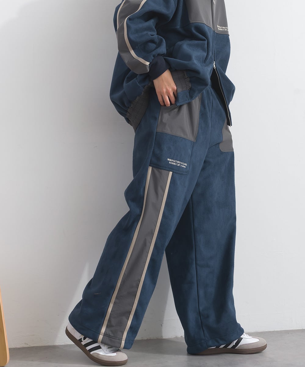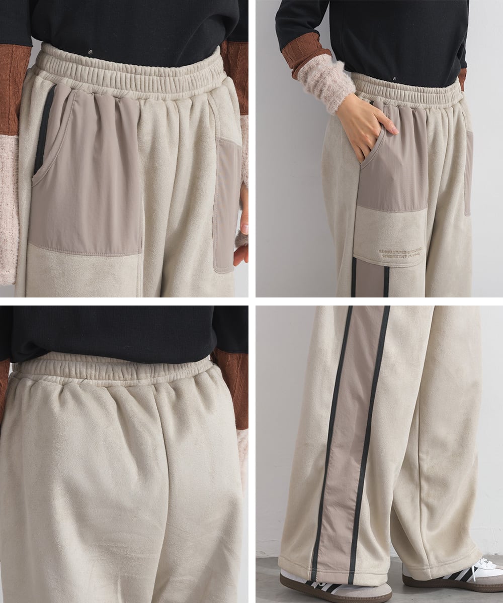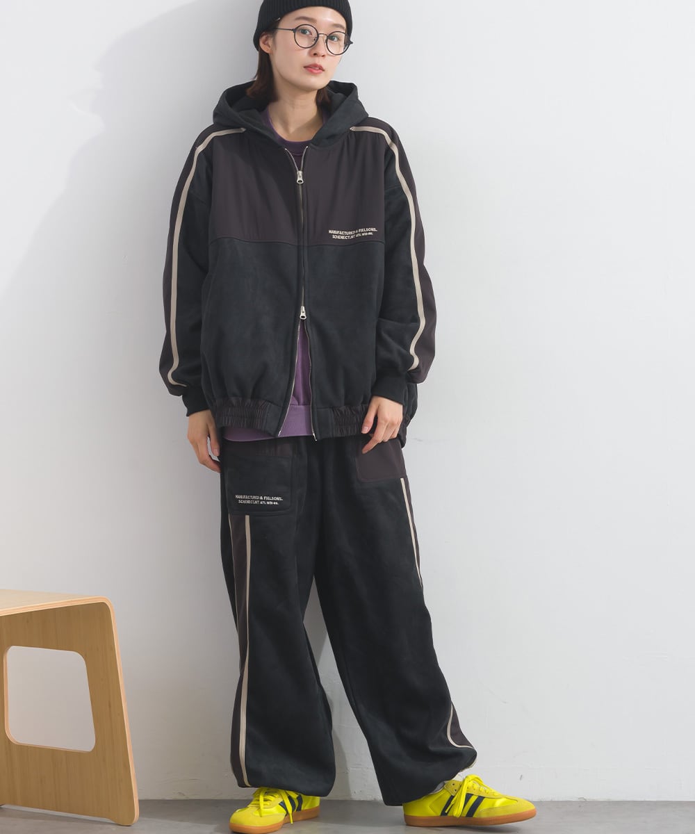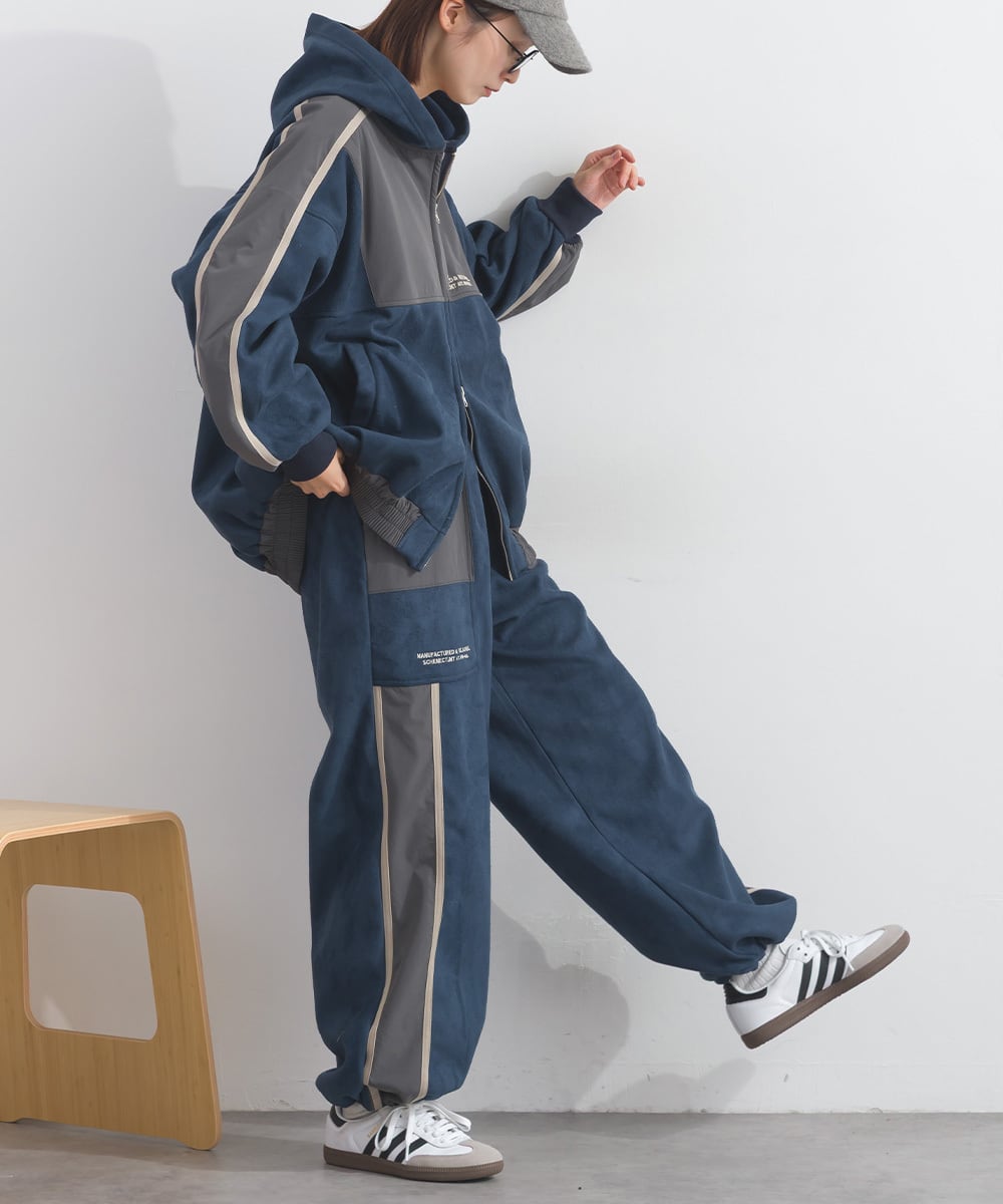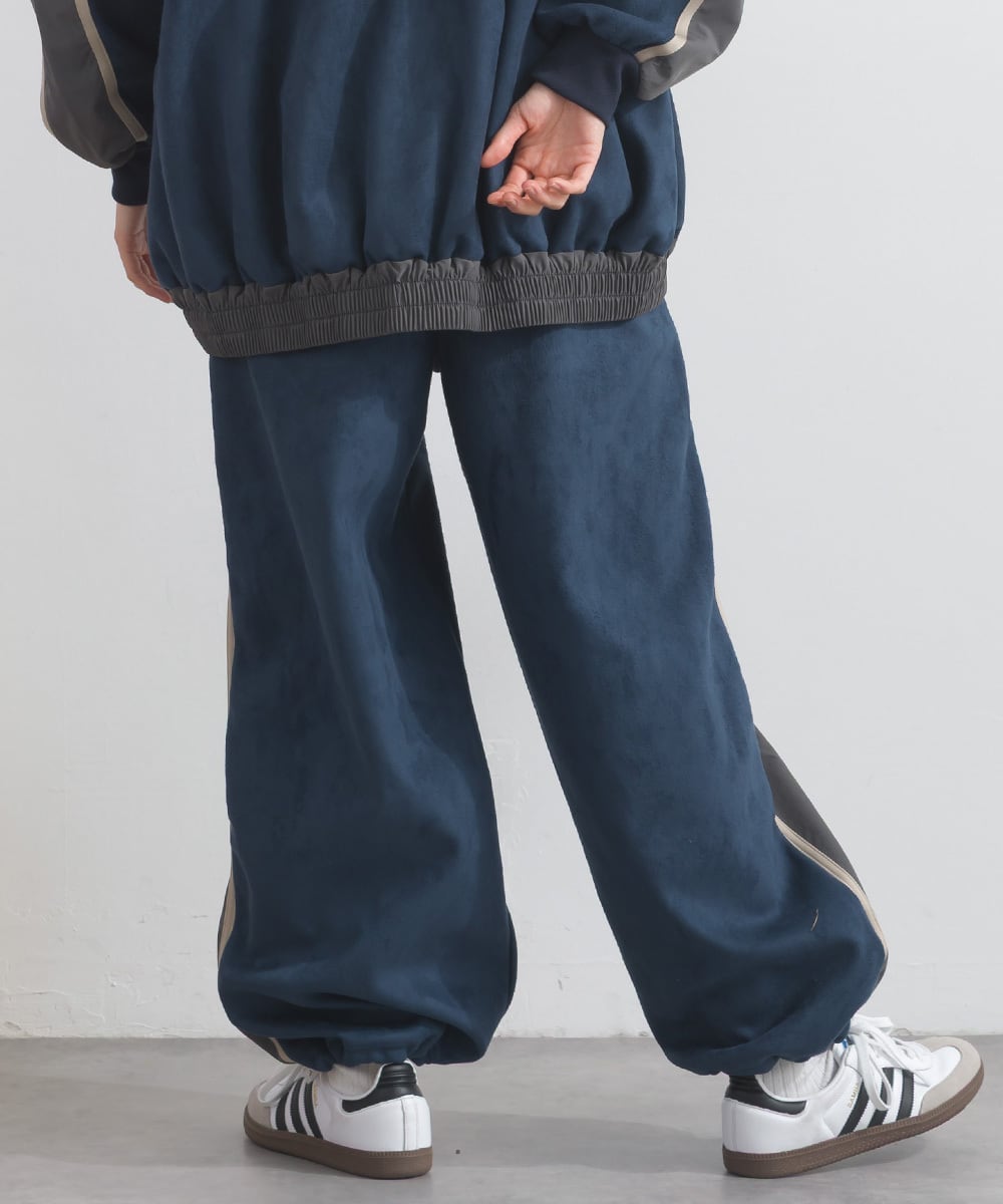 2025AW 2025秋冬新作 秋冬コーデ オーバーサイズ ワンマイルウエア iriey アイリー カジュアル ナチュラル ミセス ゆったり 体型カバー 新作 パンツ セットアップ フェイクスエード 配色ライン スポーティ 大人カジュアル 楽ちん ロングパンツ ゆったりシルエット 秋冬コーデ ストリート レディスファッション