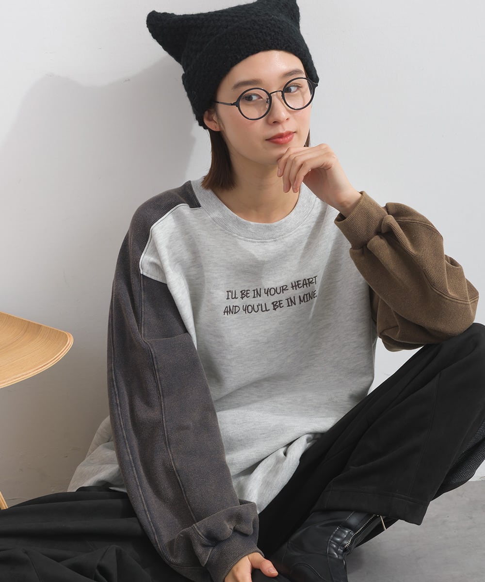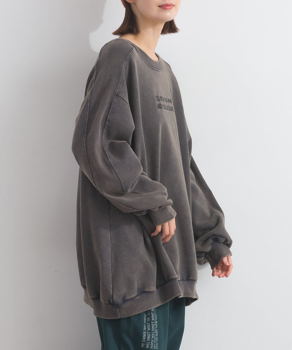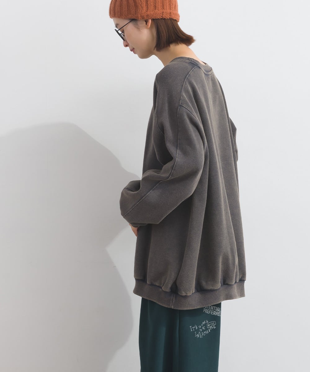 2025AW 2025秋冬新作 秋冬コーデ オーバーサイズ ワンマイルウエア iriey アイリー カジュアル ナチュラル ミセス ゆったり 体型カバー ゆったりシルエット スウェット 裏起毛 スノーウォッシュ加工 刺繍入り ヴィンテージ風 プルオーバー ドロップショルダー レディース カジュアル 秋冬トップス ストリート デイリー 人気