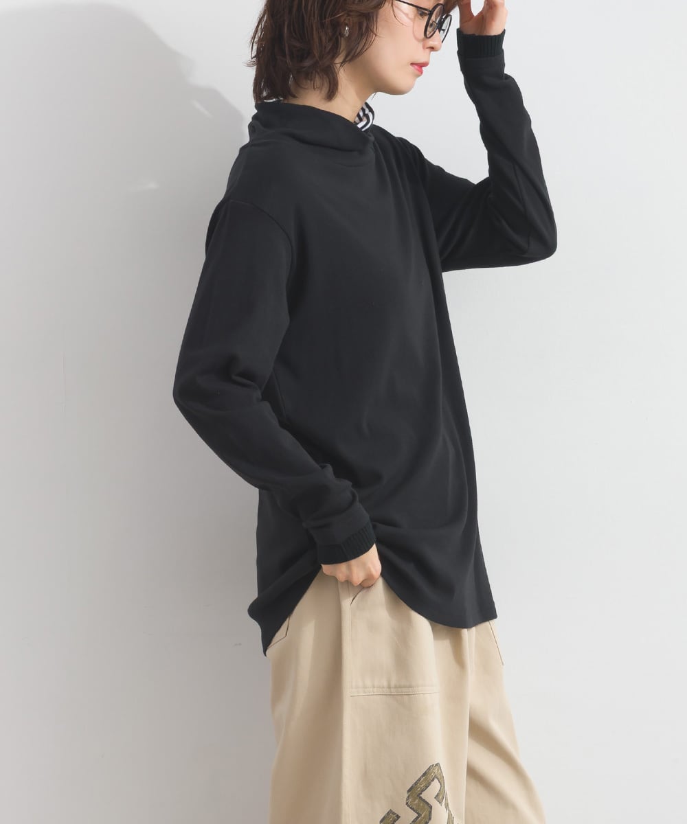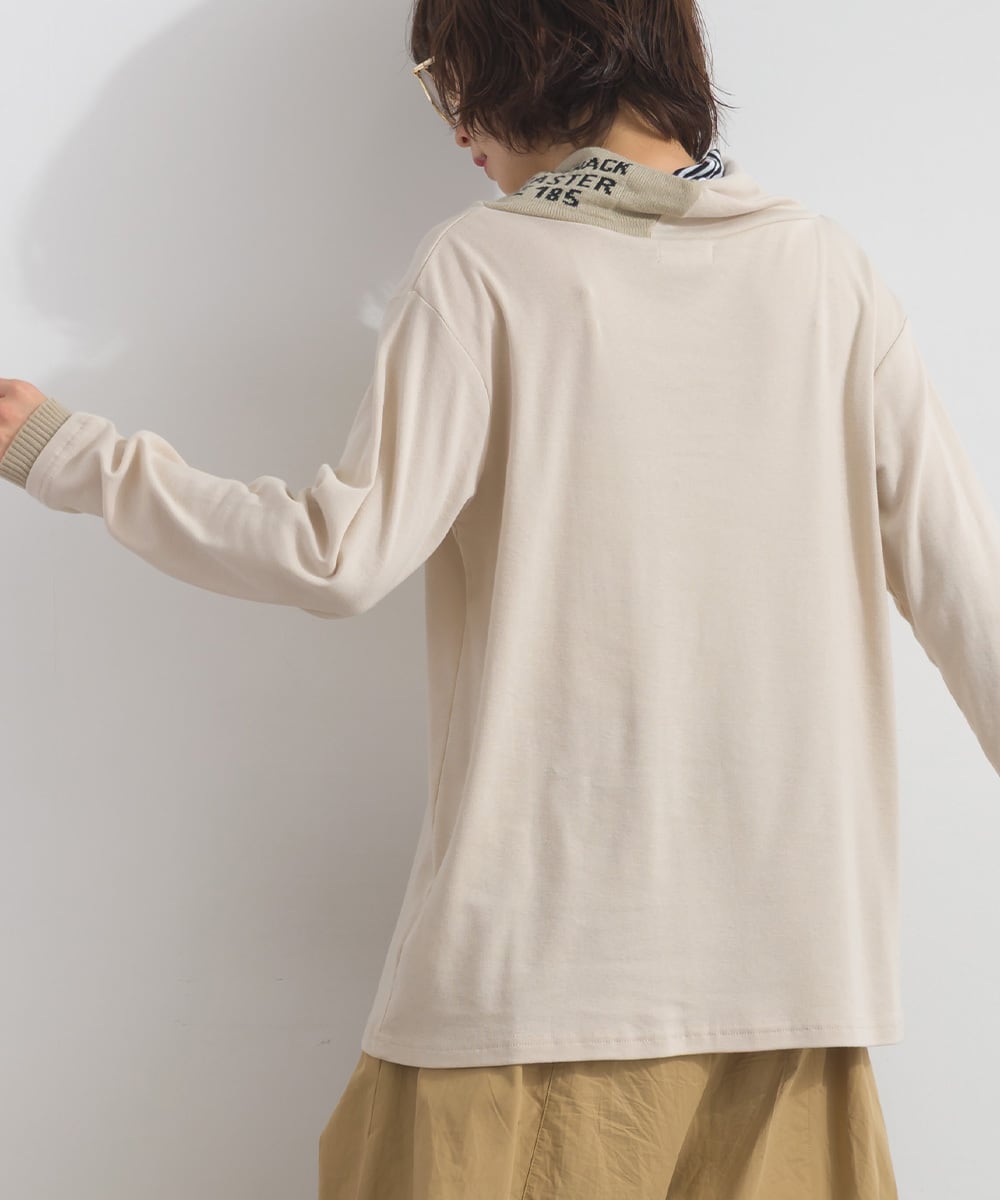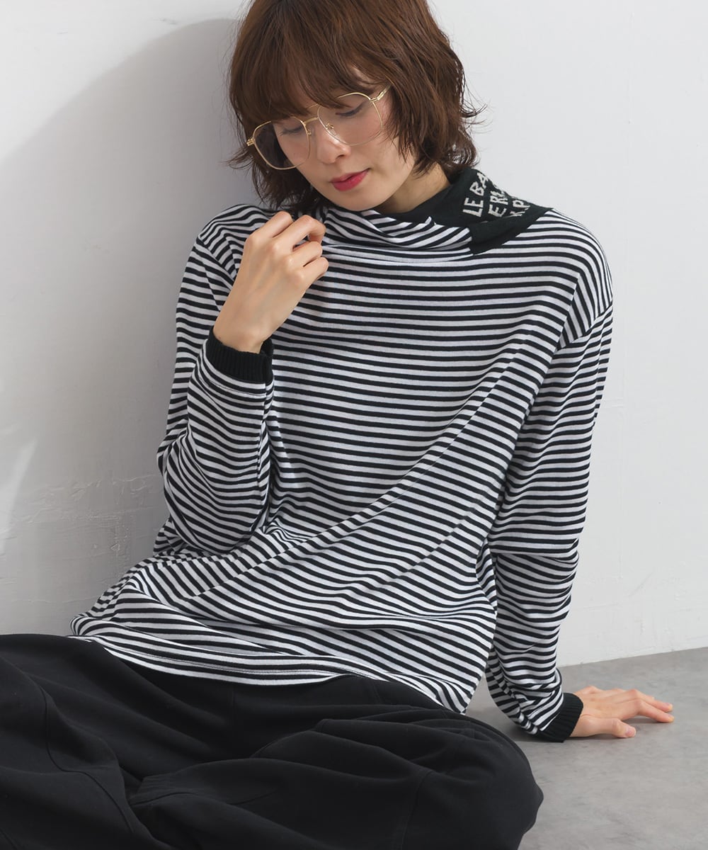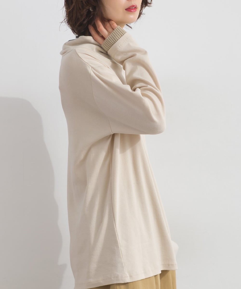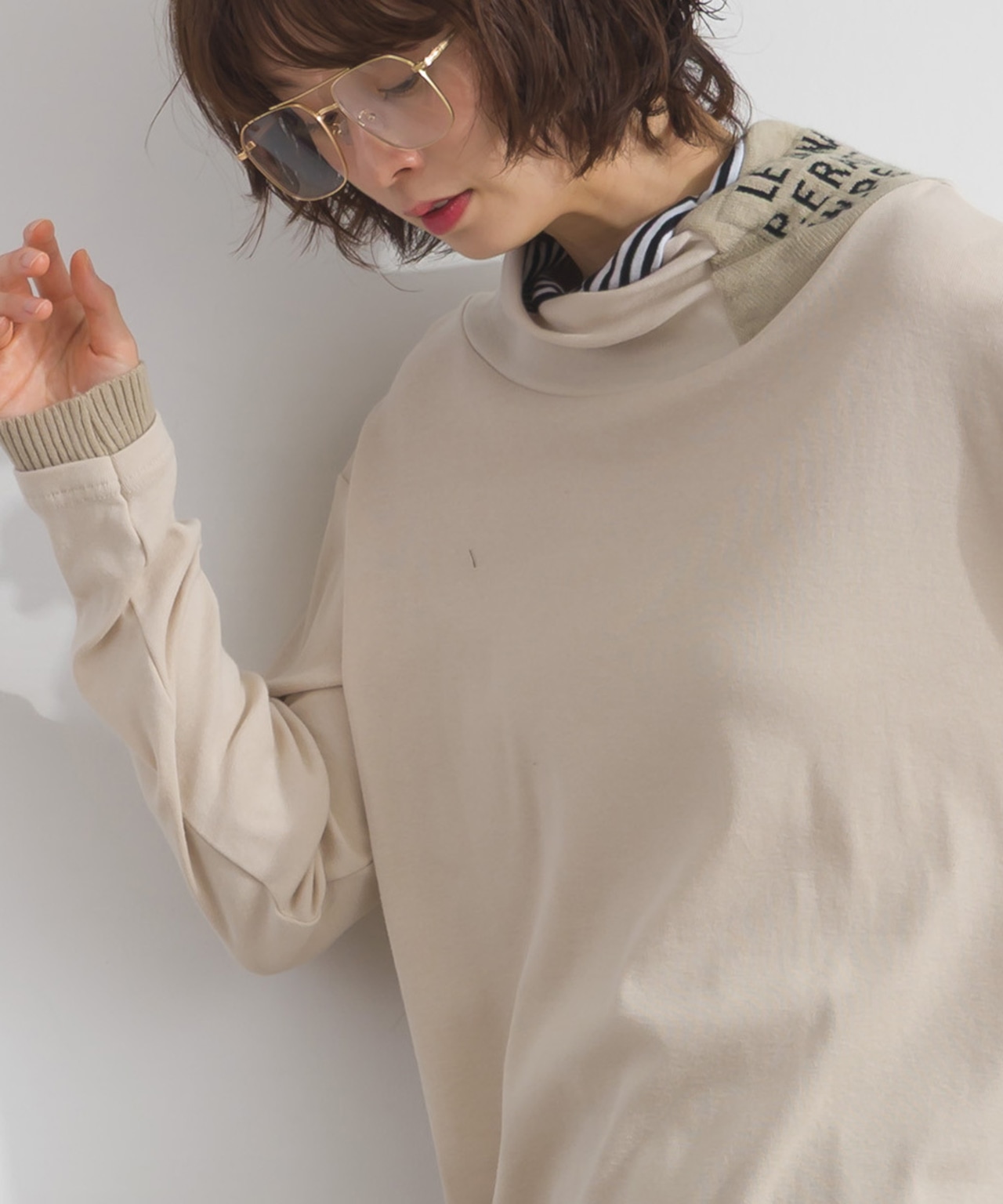襟元と袖口にさりげなくあしらわれたニットがポイントのタートルロンT。