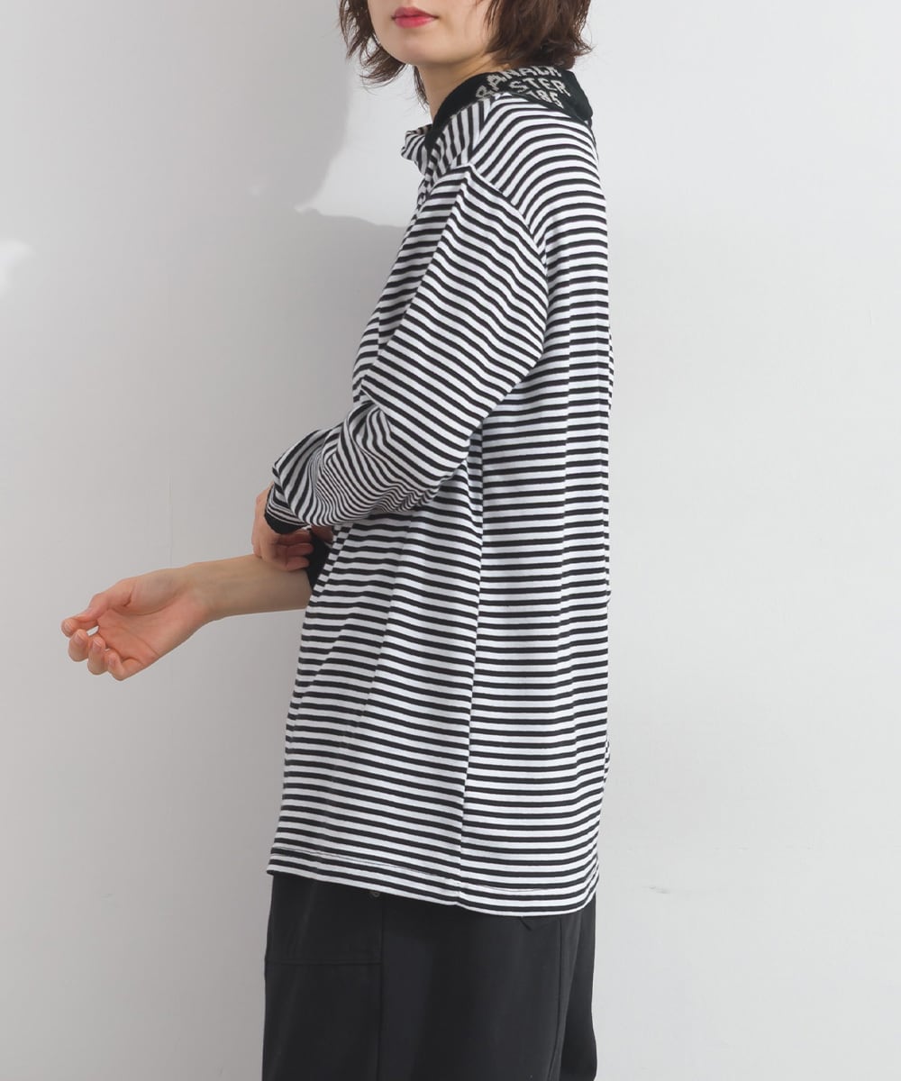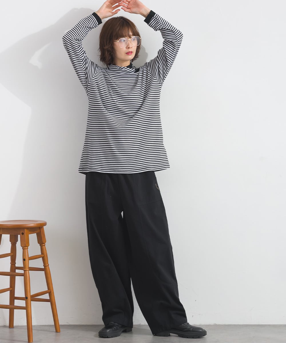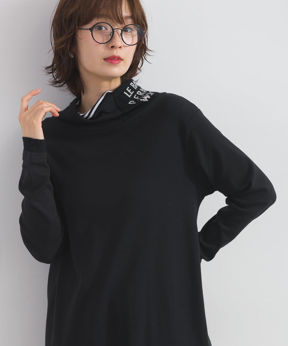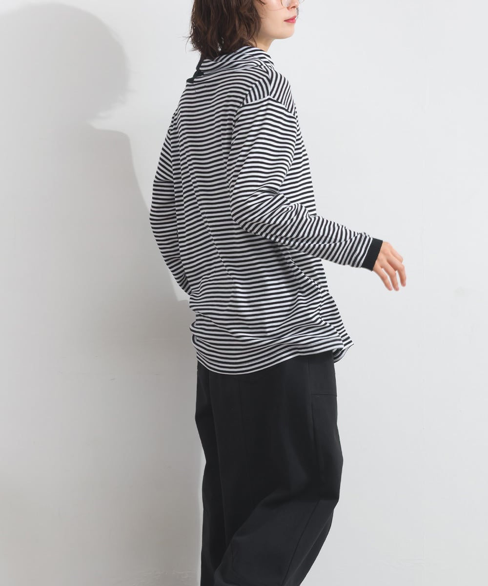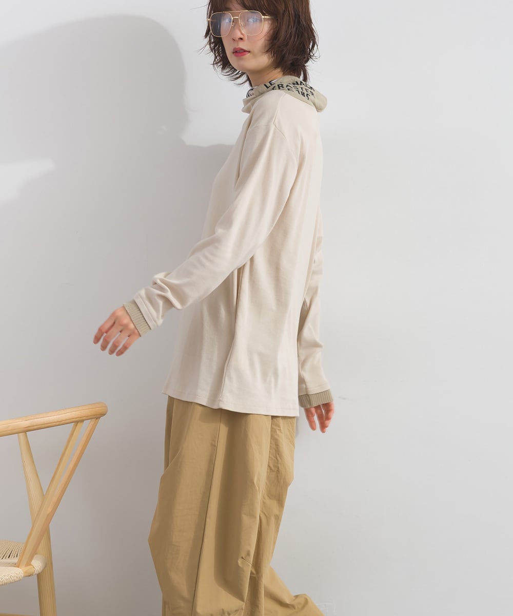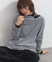 襟元と袖口にさりげなくあしらわれたニットがポイントのタートルロンT。