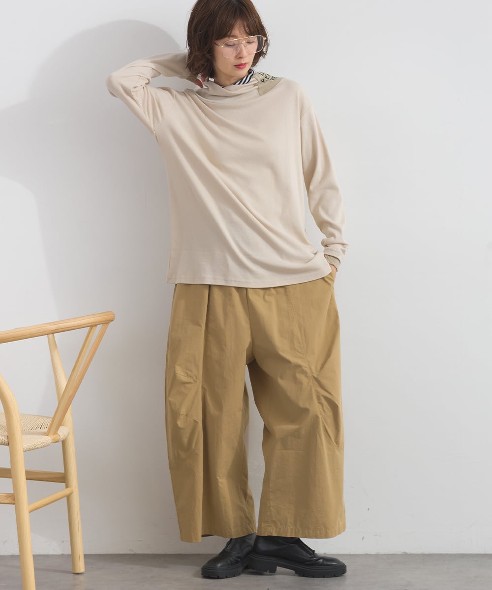 K54023 フライス袖シャーリング長袖Tシャツ / Ribbed Sleeve Shirring Long Sleeve T Shirt