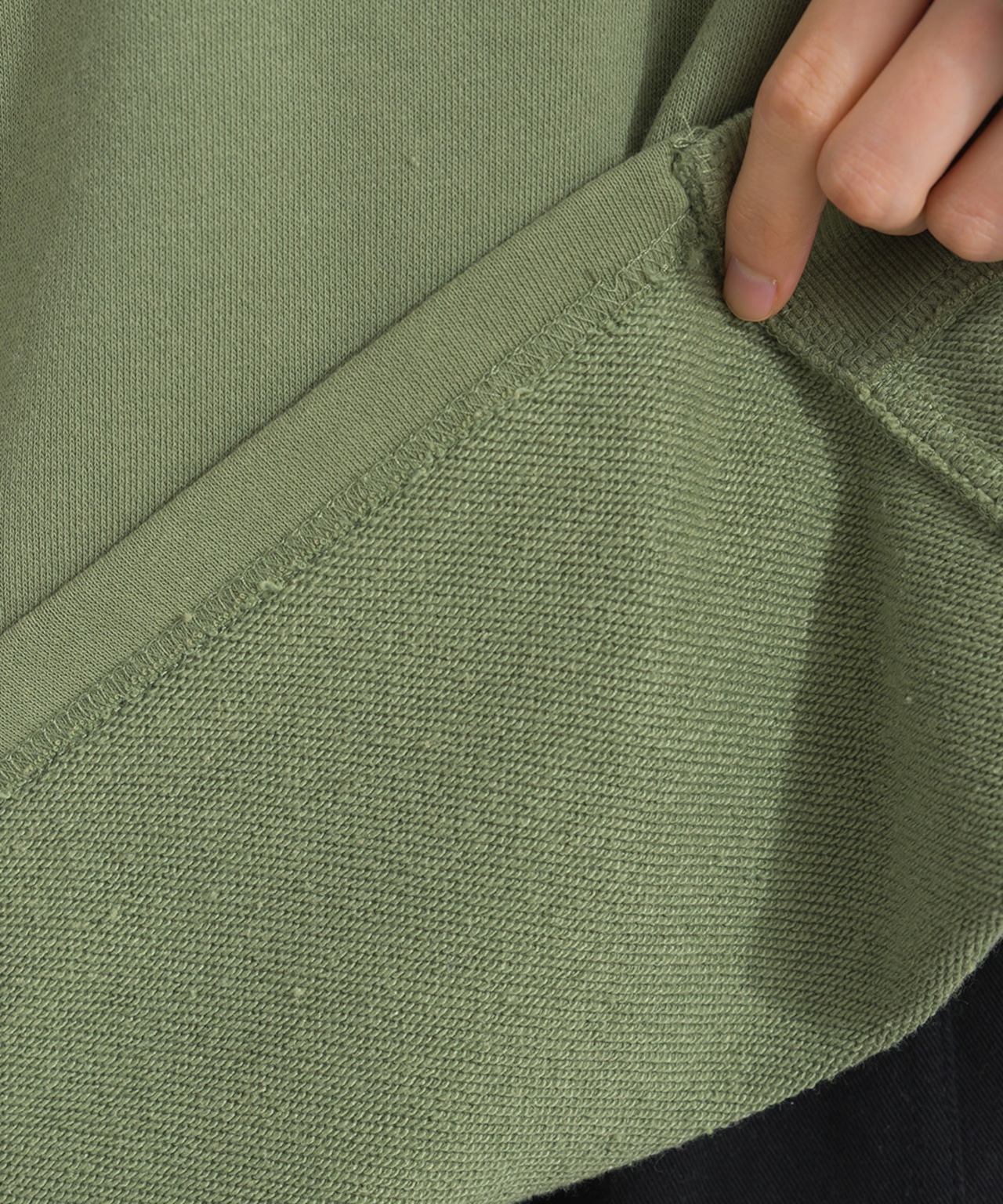 CT裏毛素材をサンドウォッシュ加工で仕上げ、