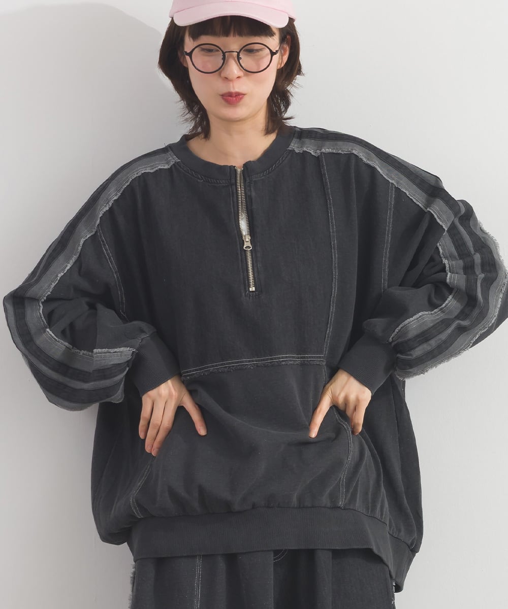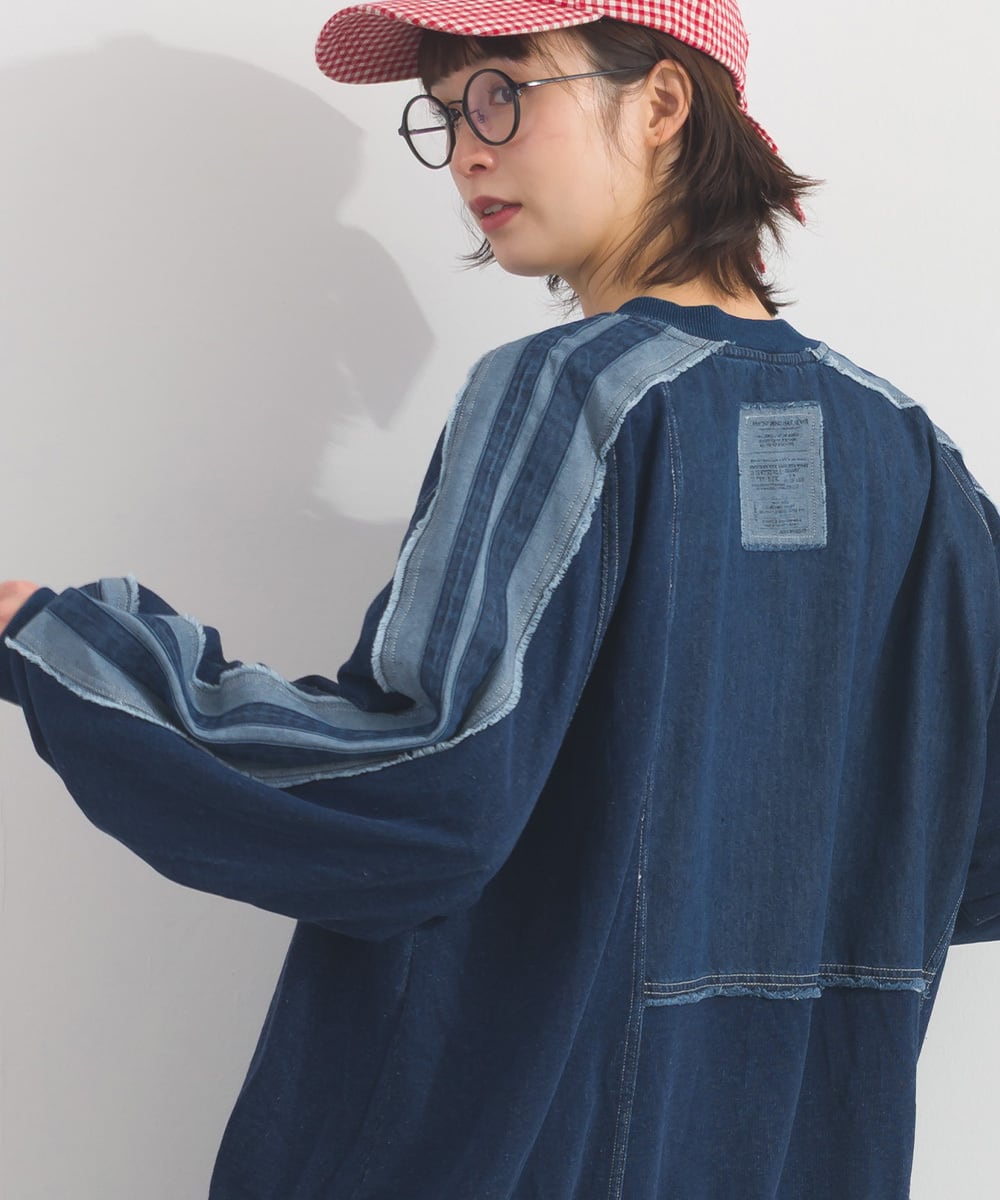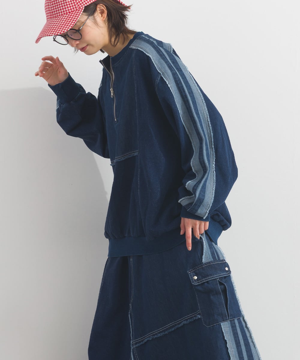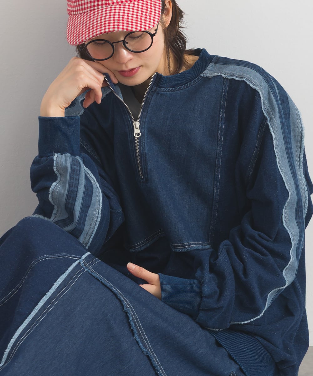 デニムの切替ラインが印象的なプルオーバー。