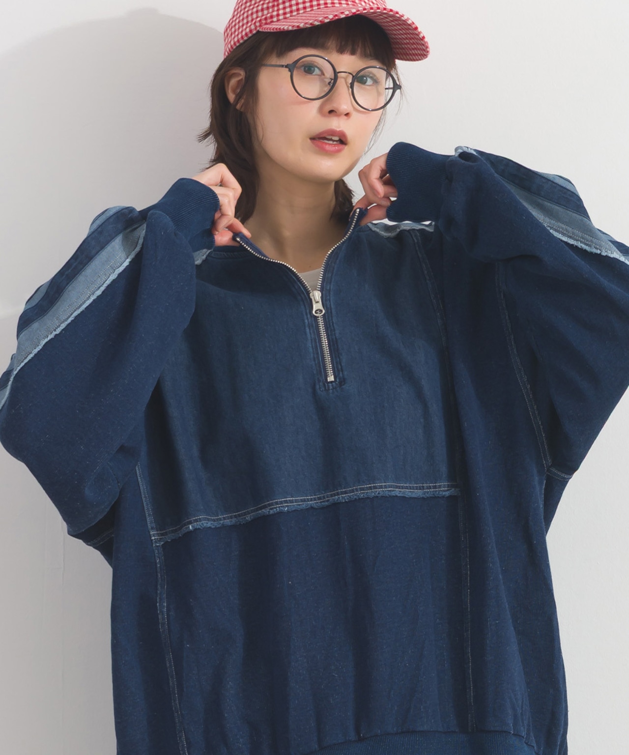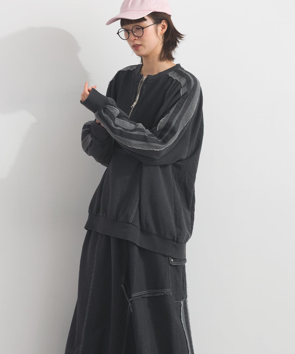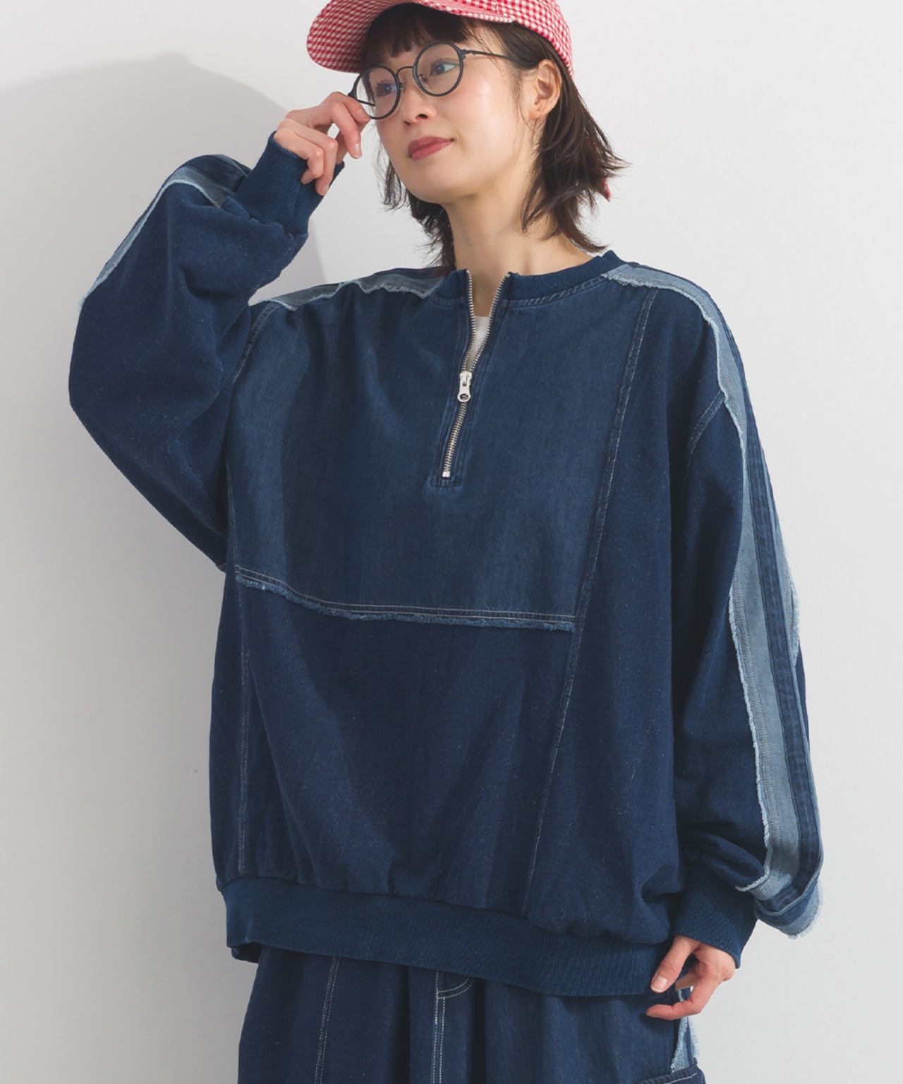 デニムの切替ラインが印象的なプルオーバー。