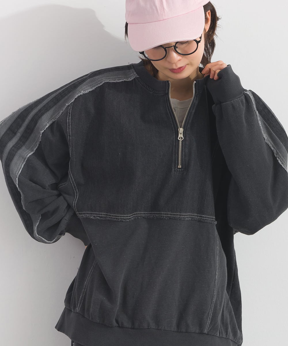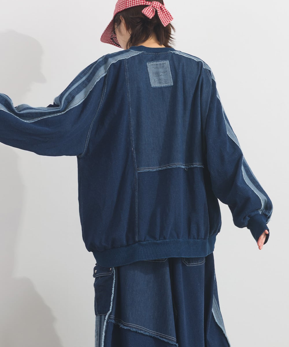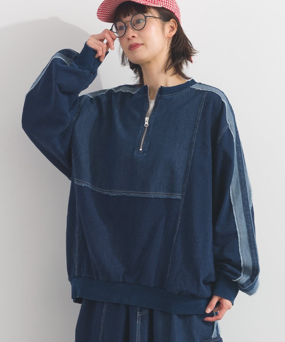 デニム切替裏毛プルオーバー