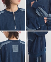 K261012 デニム切り替えZIPパーカー / Denim-Look Panel Zip Hoodie