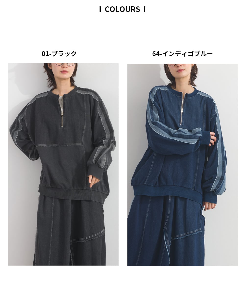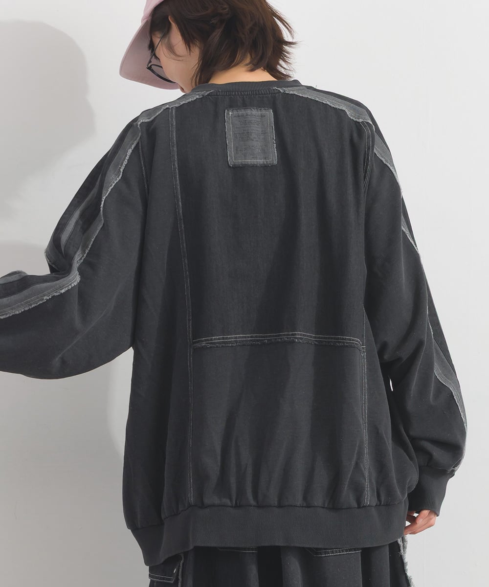 K261009 デニム切替裏毛プルオーバー / Denim-Look Panel Sweat Pullover