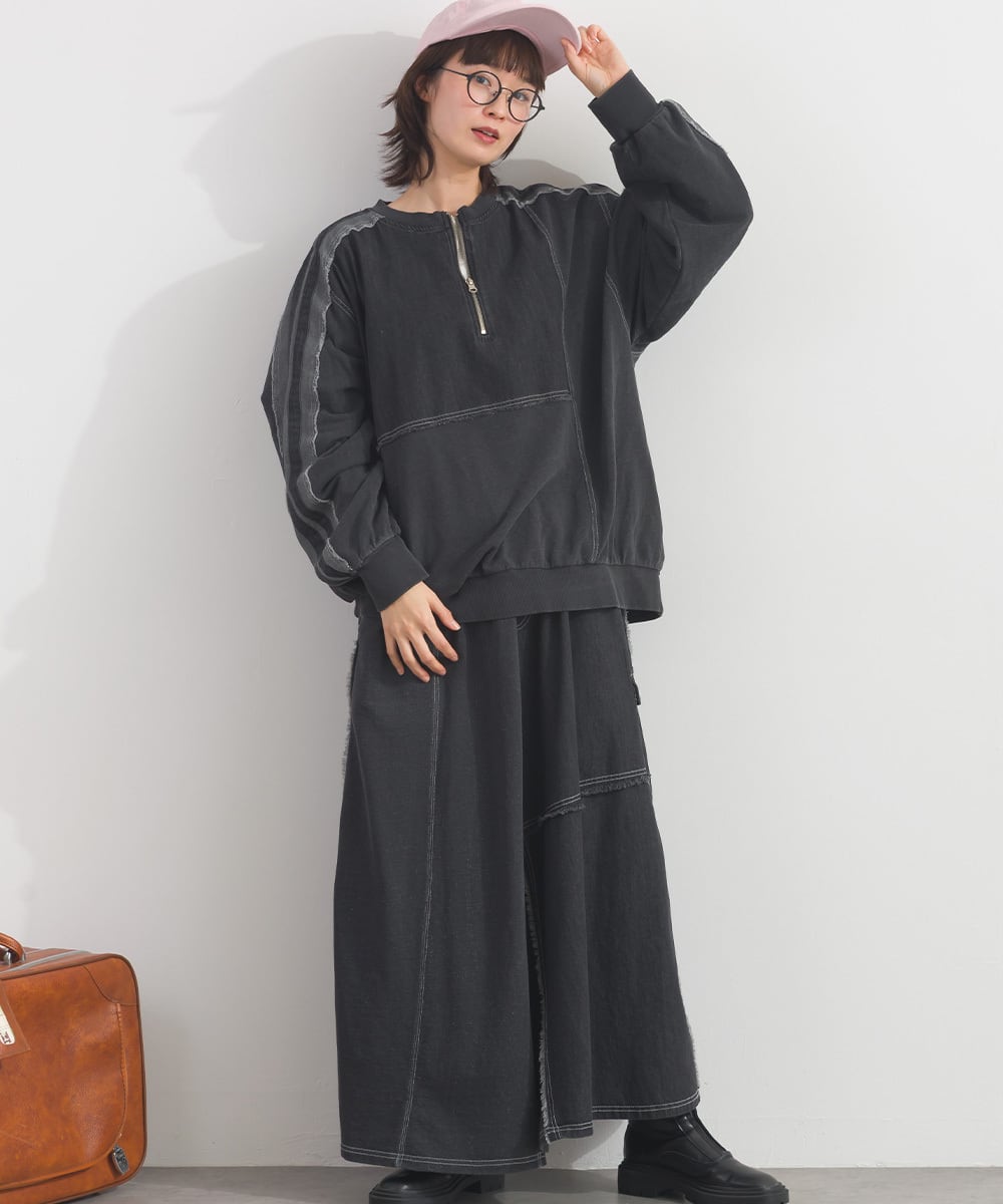 K261010 デニム切替裏毛スカート / Denim-Look Panel Sweat Skirt
