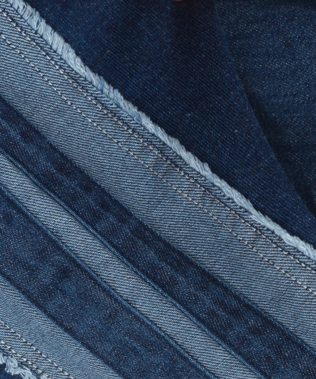 インディゴ調のデニムライン部分は、洗い加工でナチュラルな風合いを演出します。