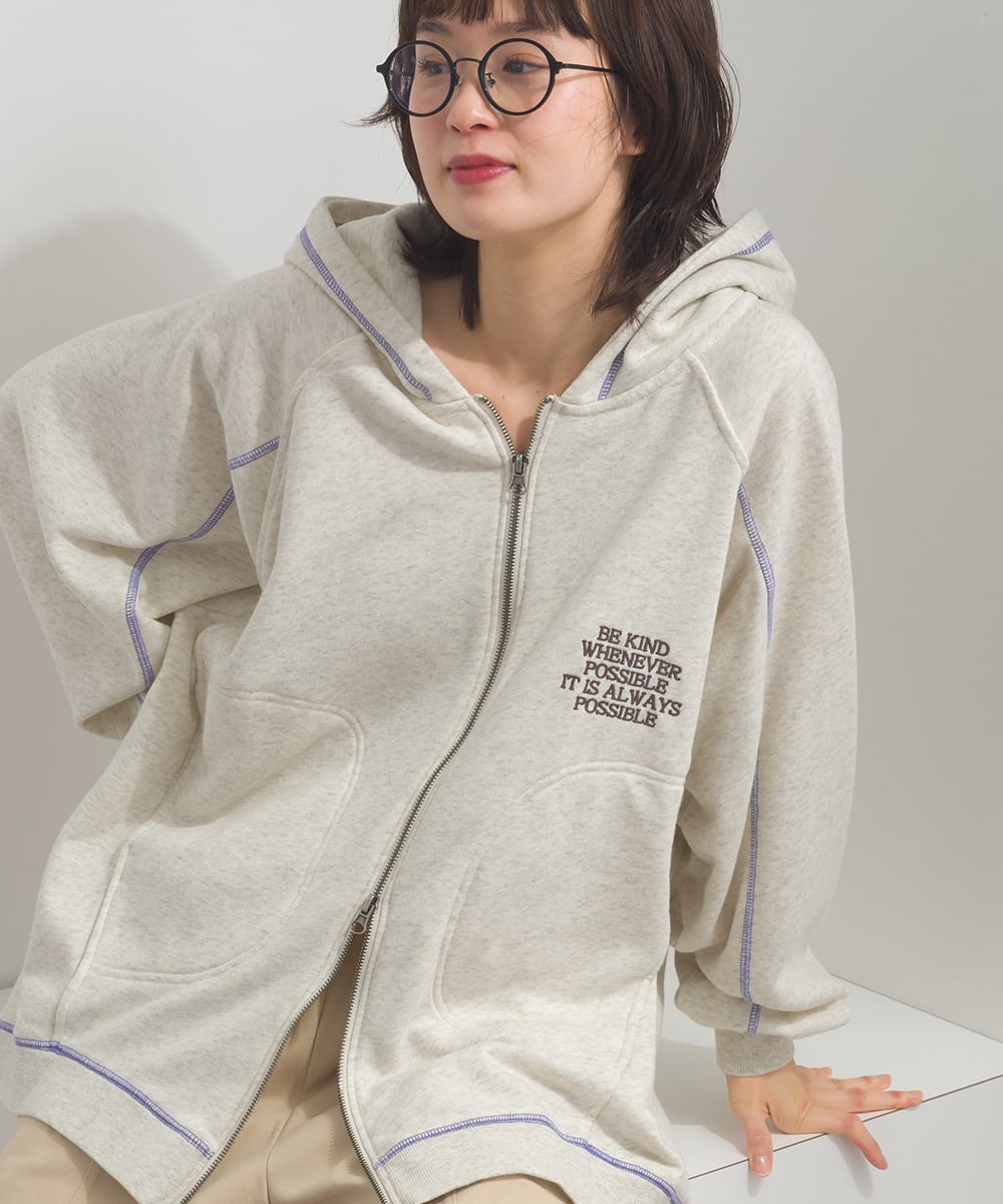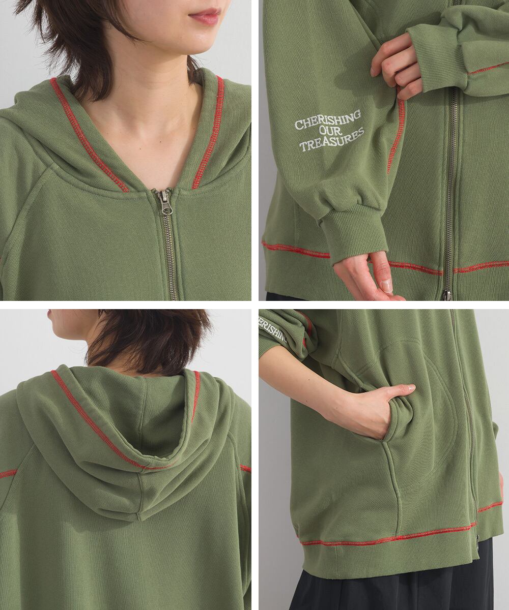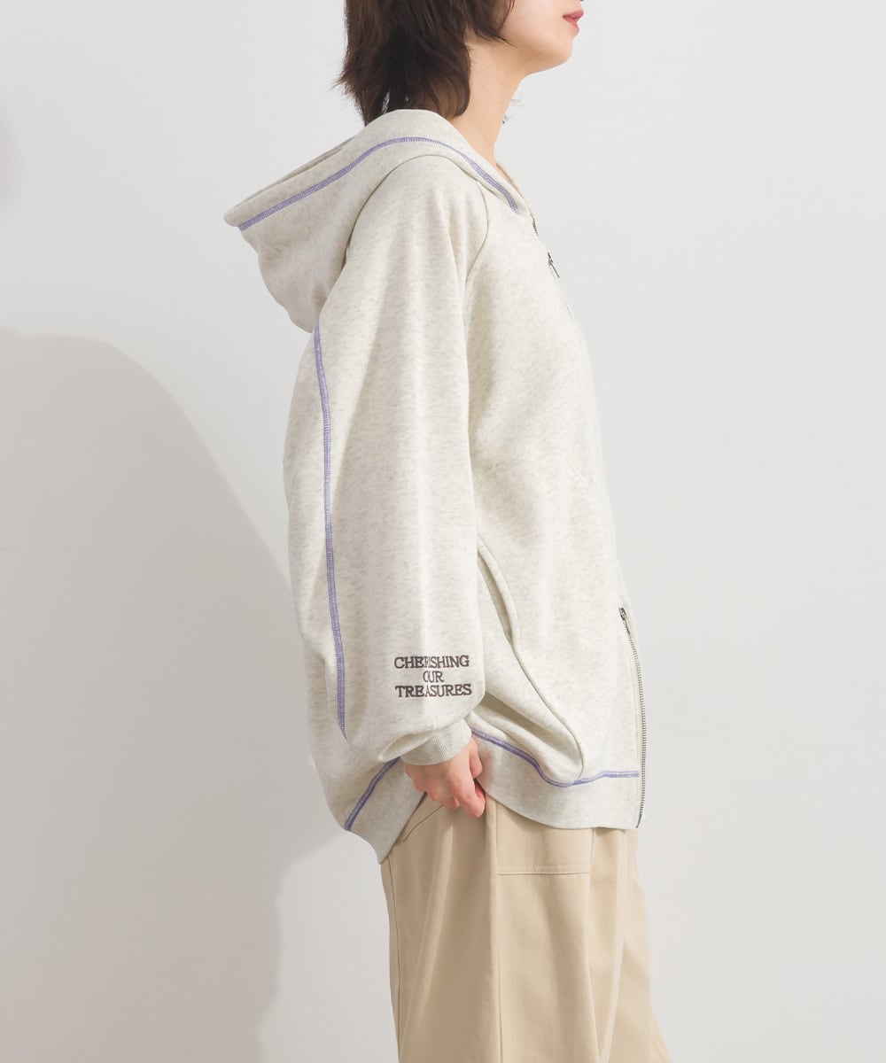 配色ステッチ刺繍入り裏毛ZIPパーカー
