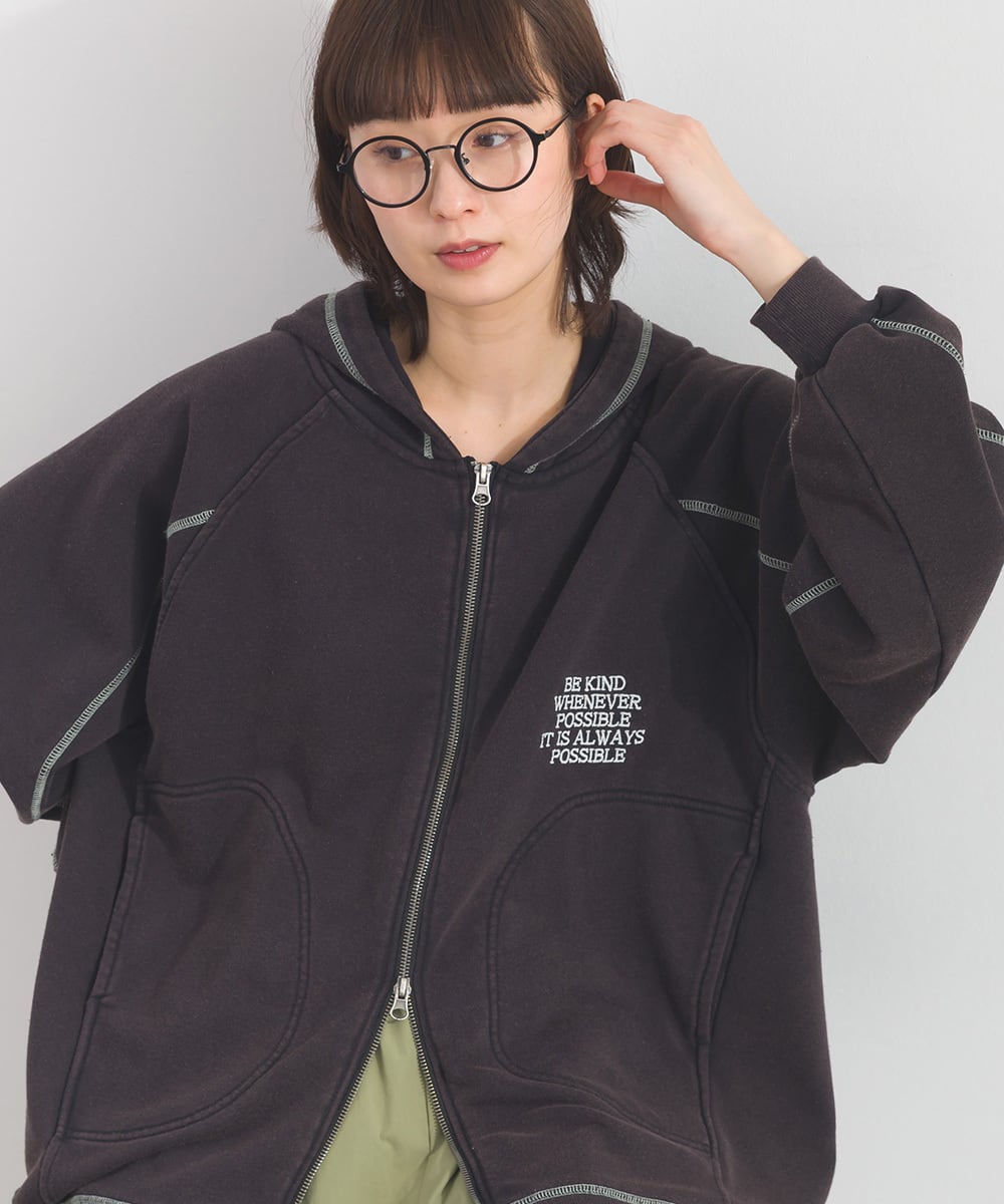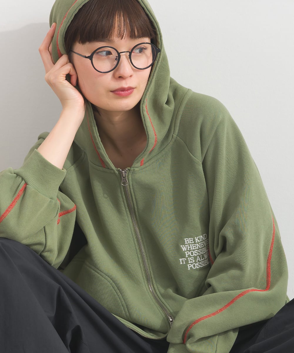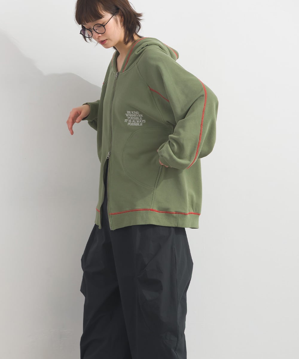 配色ステッチ刺繍入り裏毛ZIPパーカー