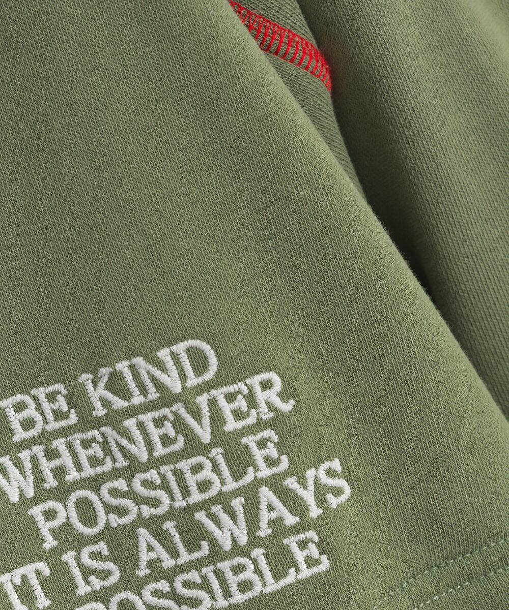 高品質なCT裏毛素材(280g/m²)にサンドウォッシュ加工を施し、表面にやわらかな風合いとナチュラルな色合いをプラス。