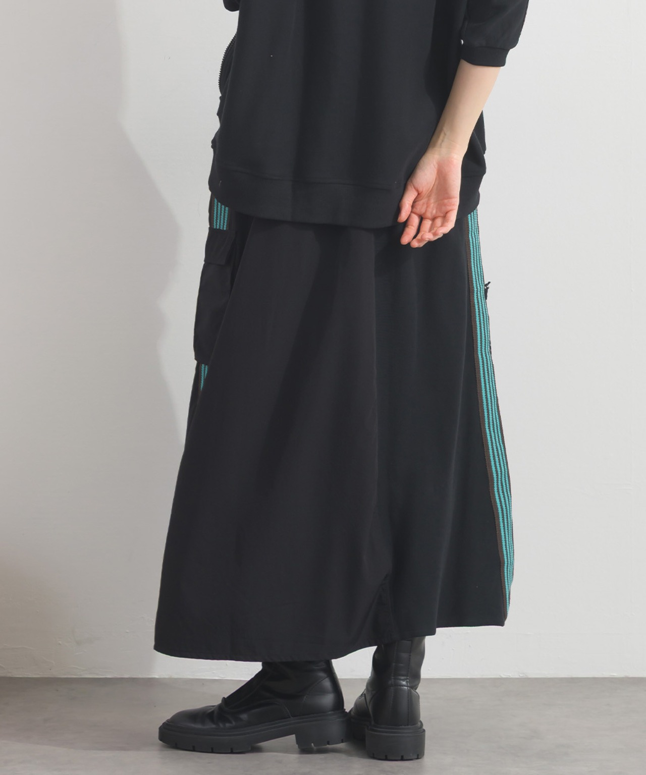 2026春新作 2026SS オーバーサイズ ワンマイルウエア iriey アイリー カジュアル ナチュラル ミセス ゆったり 体型カバー トラックパンツ トラックスカート リメイク風 セットアップ スポーティ スポーツ コットン 綿 ウエストゴム イージースカート ラップスカート レディース 配色切替 ツイルスカート Aライン ウエストゴム 体型カバー 春スカート 秋スカート ワンマイルウェア 大人カジュアル スタイルアップ ミリタリー風 配色デザイン トレンドボトム 人気